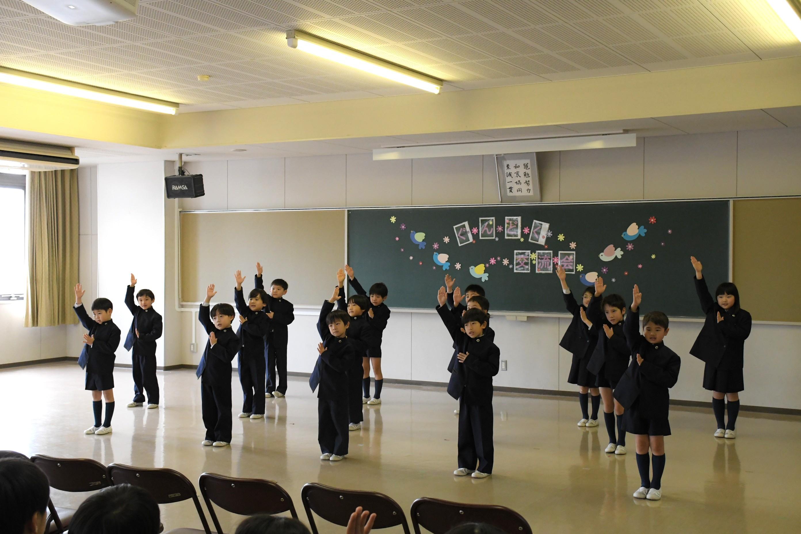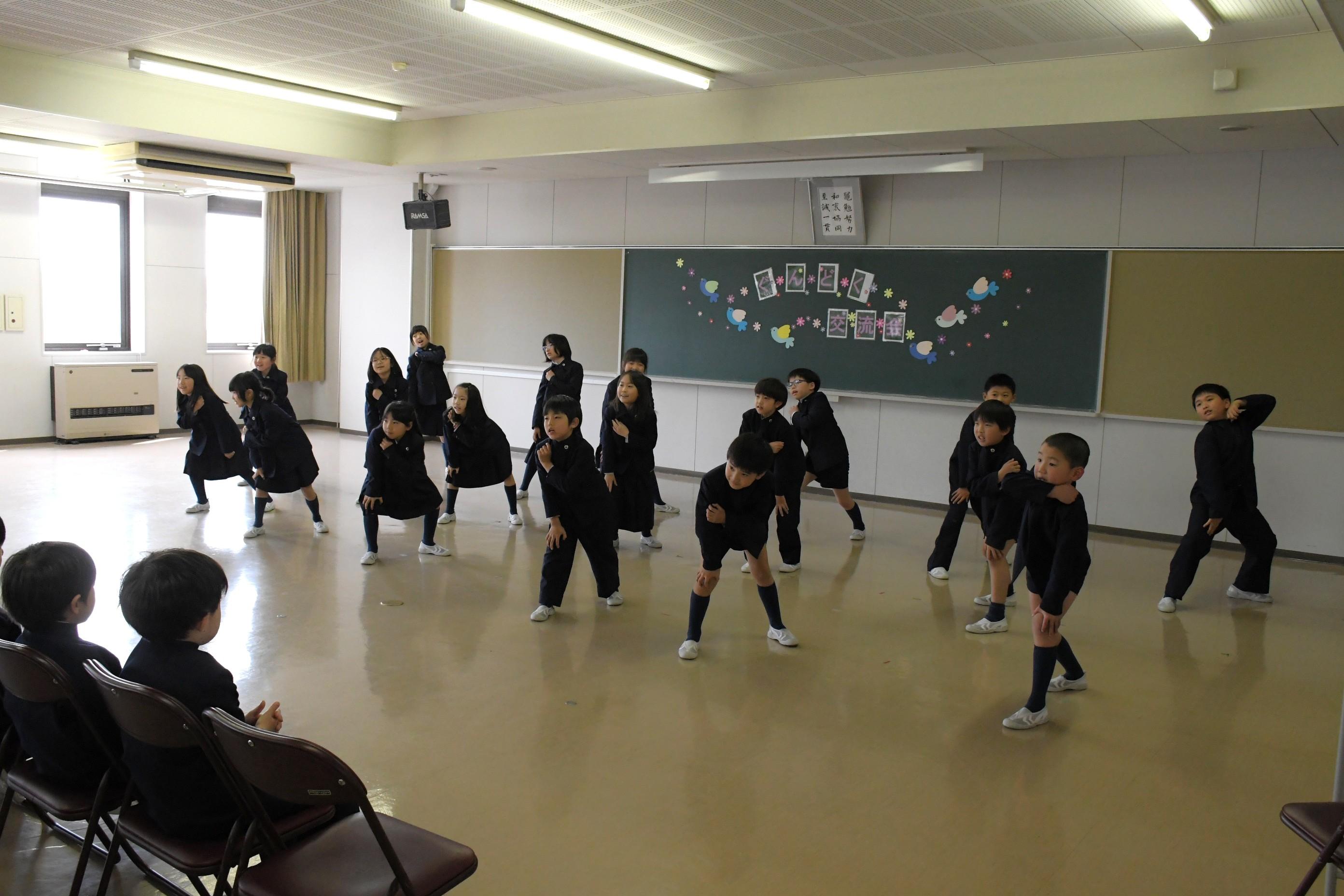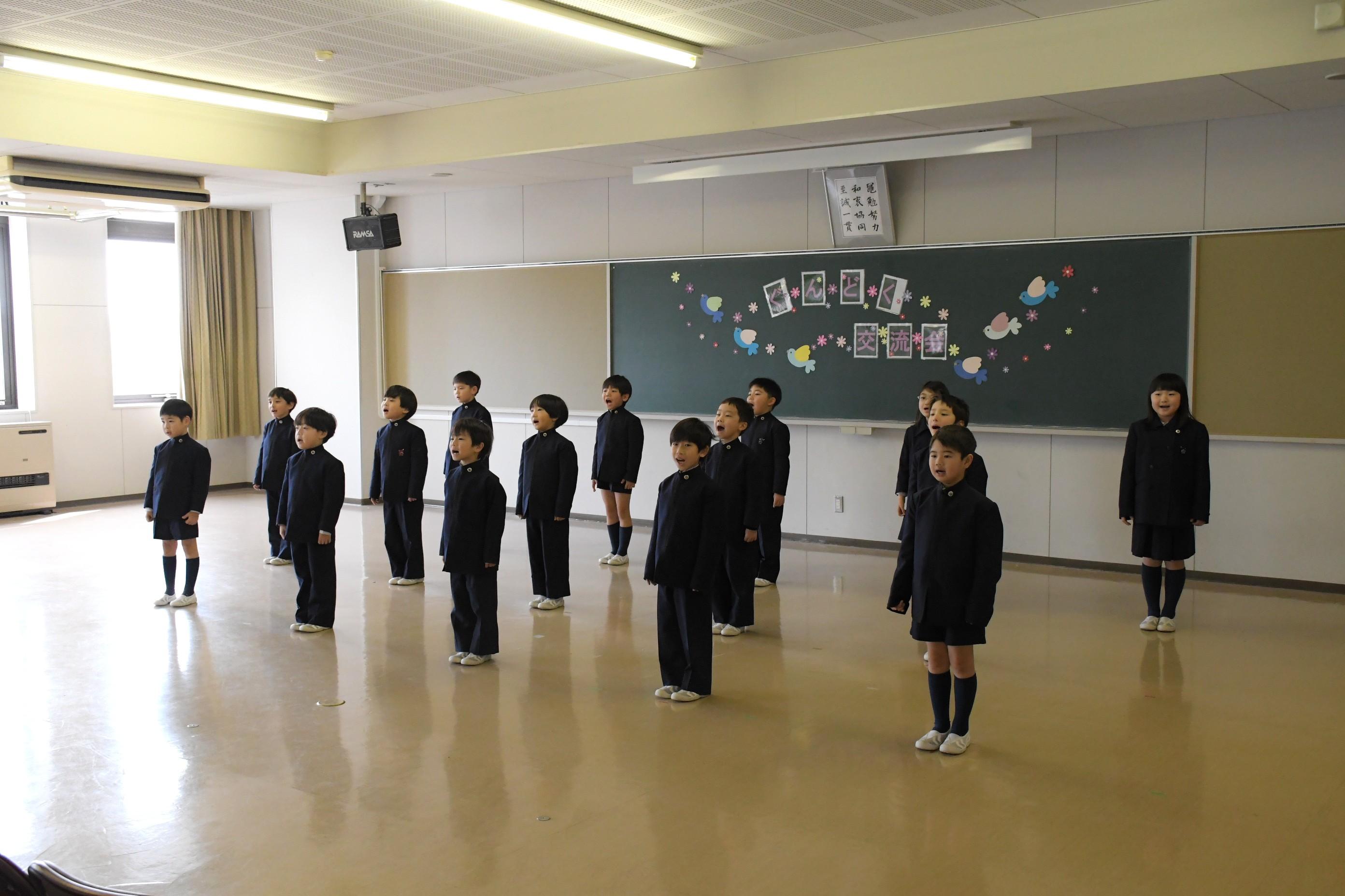 1・2・3・4年生で群読交流会を行いました。各学年のカラーが存分に出た発表で、他学年だけでなく、たくさんの先生や卒業生の拍手を受けました。頑張って練習した成果を見せることができ、子どもたちは、満足げな表情を浮かべていました。