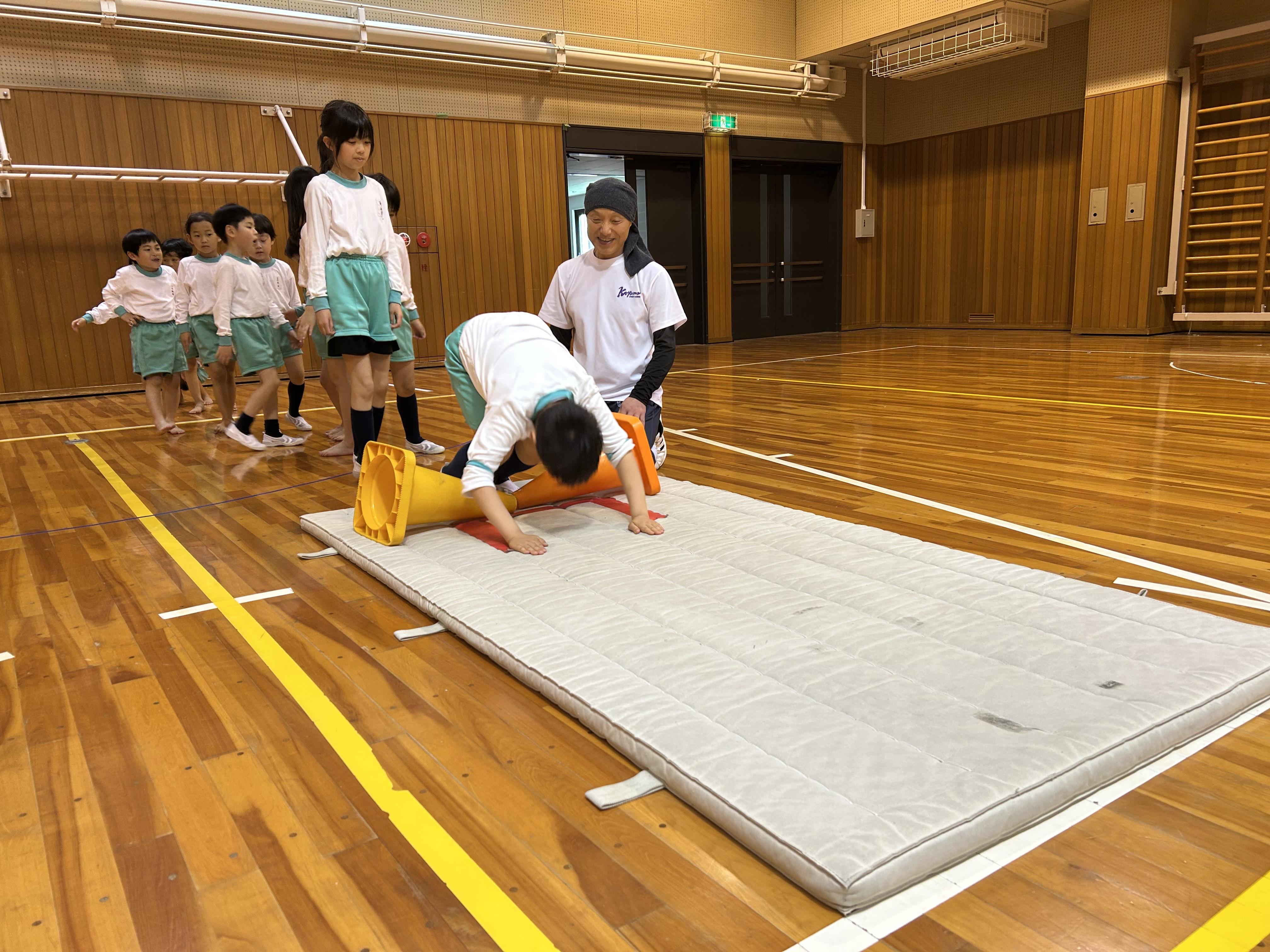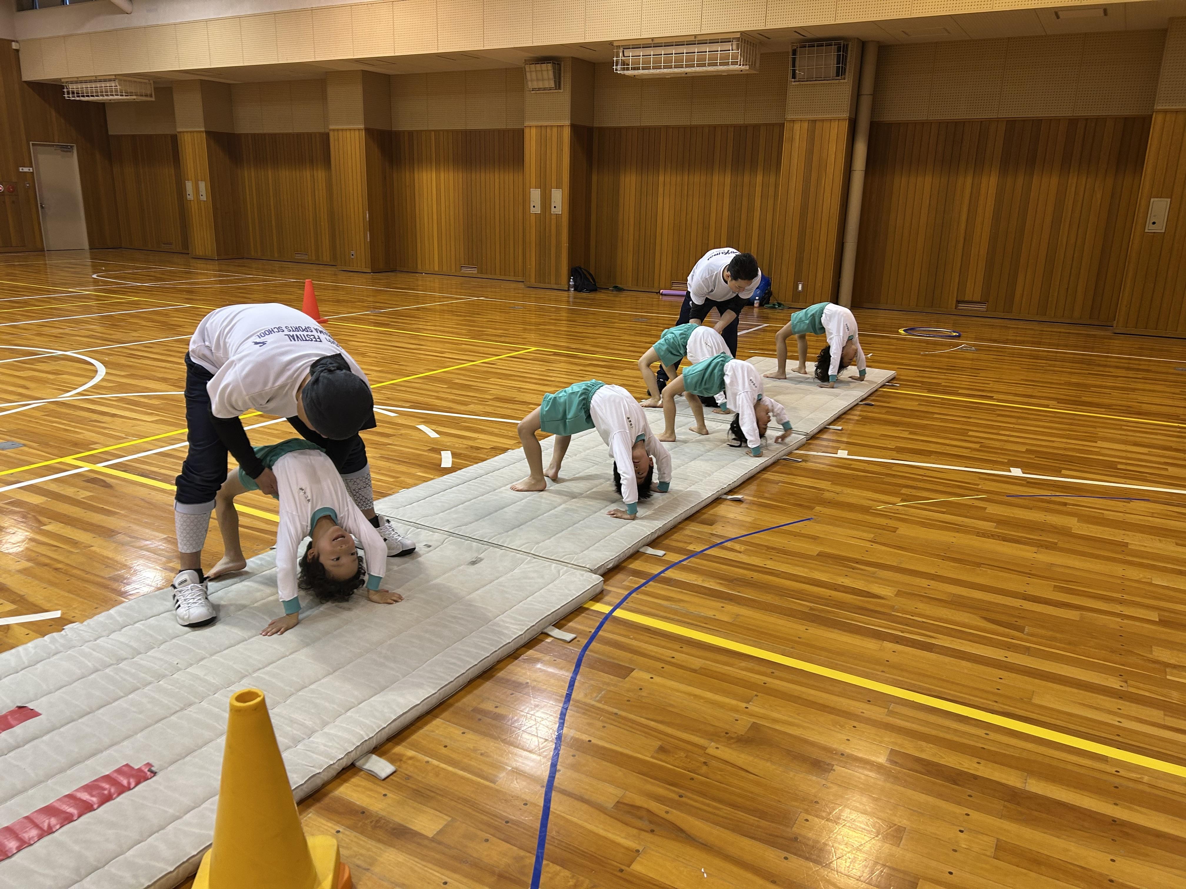 金曜日のアフタースクール、コヤマスポーツの「体操教室」が始まりました。今日はボール運動とマット運動。初めて参加する1年生に、3,4年生が立派なお手本を示していました。