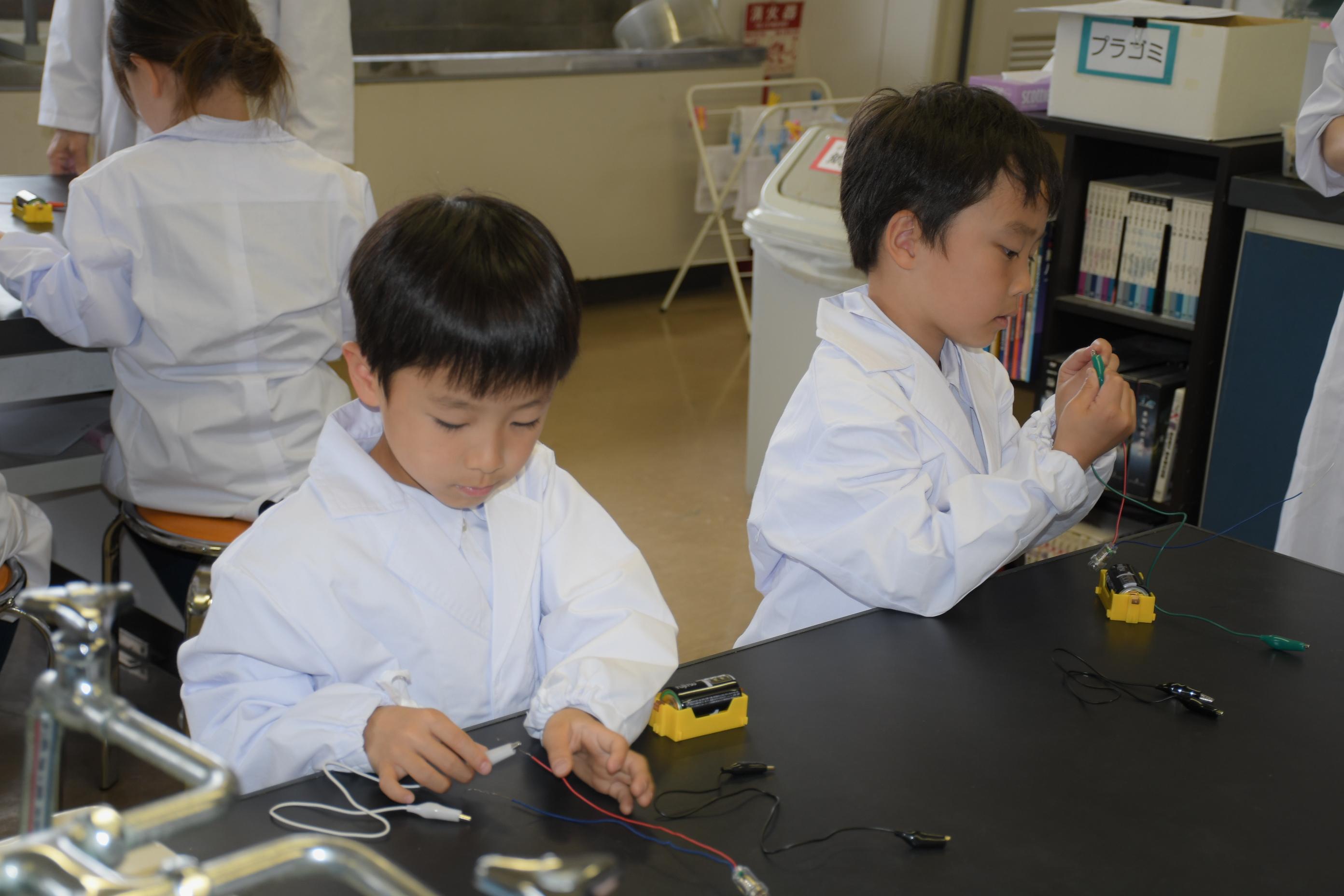 白衣に身を包めば、小さな科学者。毎回違った実験で、科学の不思議を学びます。