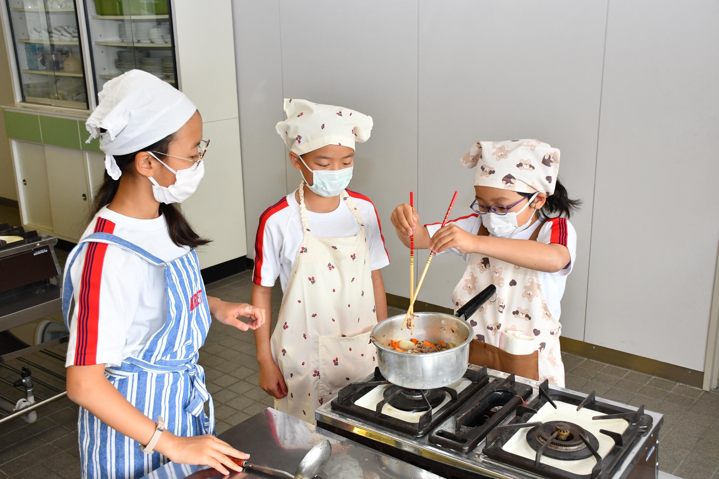 5・6年生は、林間学校での野外炊爨に向けて、ビーフシチュー作りに挑戦しました。普段とは違う環境の中、少し戸惑いながらも、子どもたちは互いに協力し、愛情を込めて調理していました。自分たちで作った熱々のビーフシチューを頬張り、満足そうな笑顔を見せる子どもたちの姿が印象的でした。
