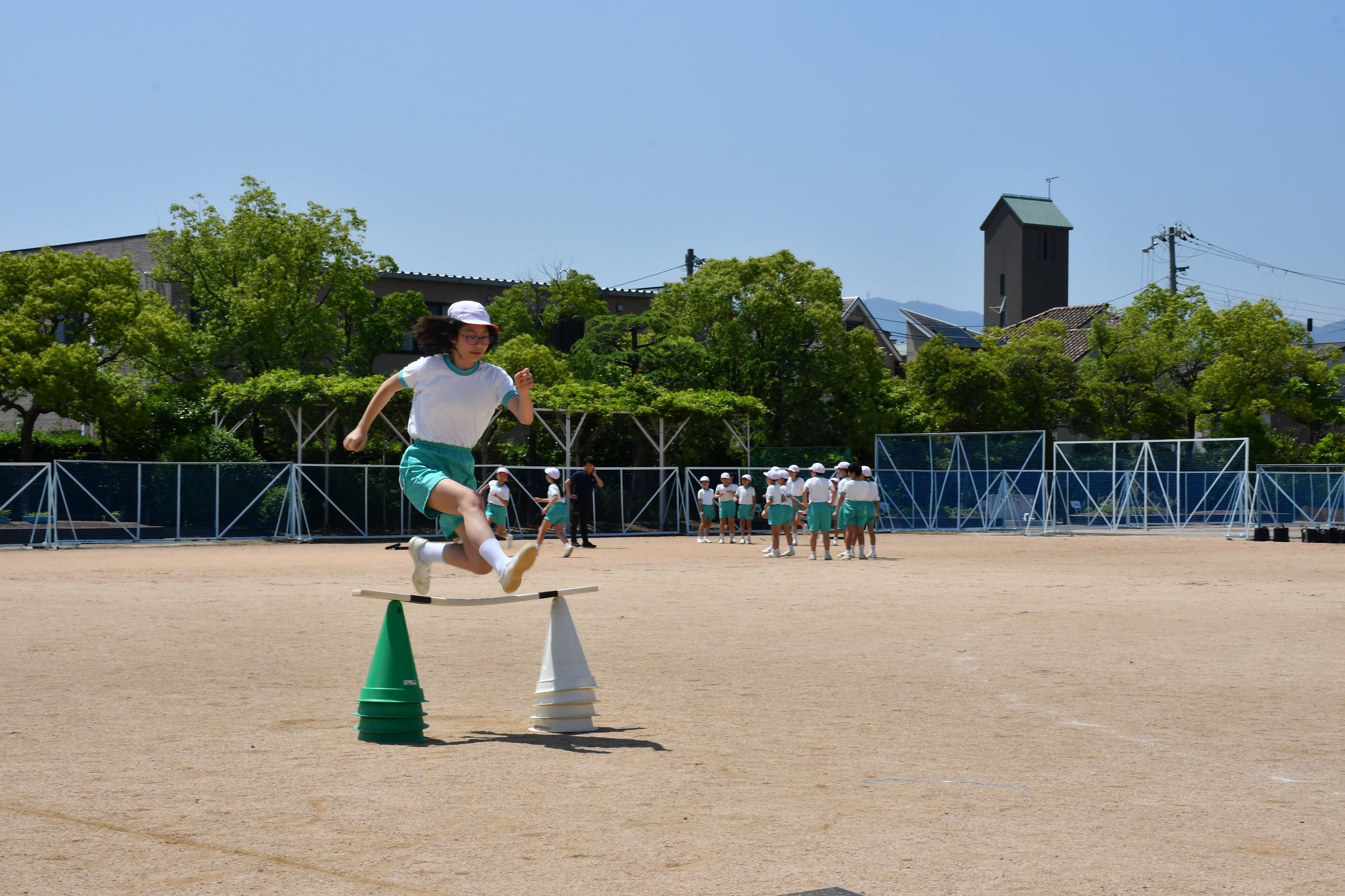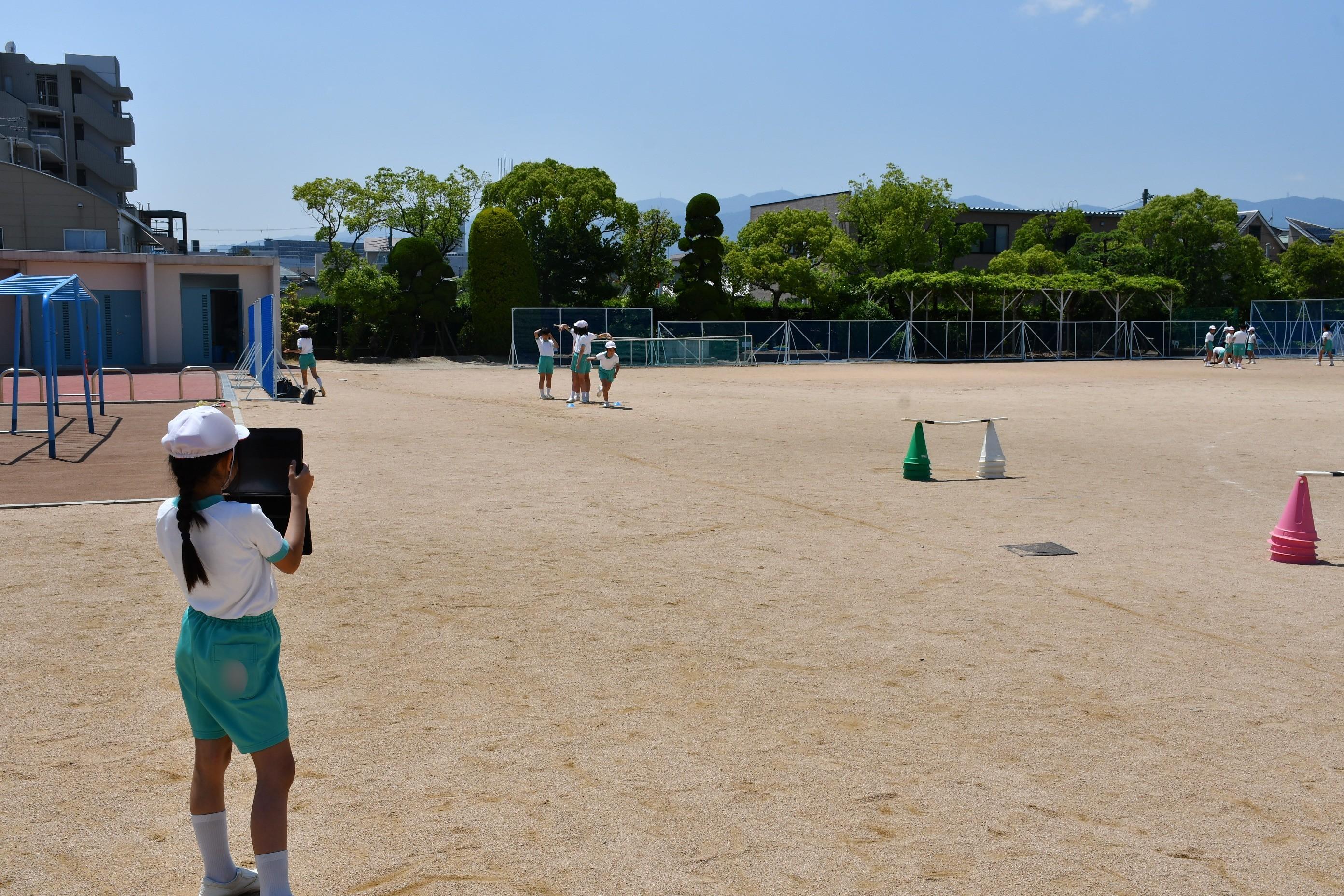 6年生 体育科「ハードル走」 [投稿日:2025年06月05日] 青空の下、6年生は体育科でハードル走をしました。タブレットで交互に撮影し、自らのフォームと級友のフォームを比較。記録を伸ばせるよう話し合いながら練習を行いました。 一覧へ戻る