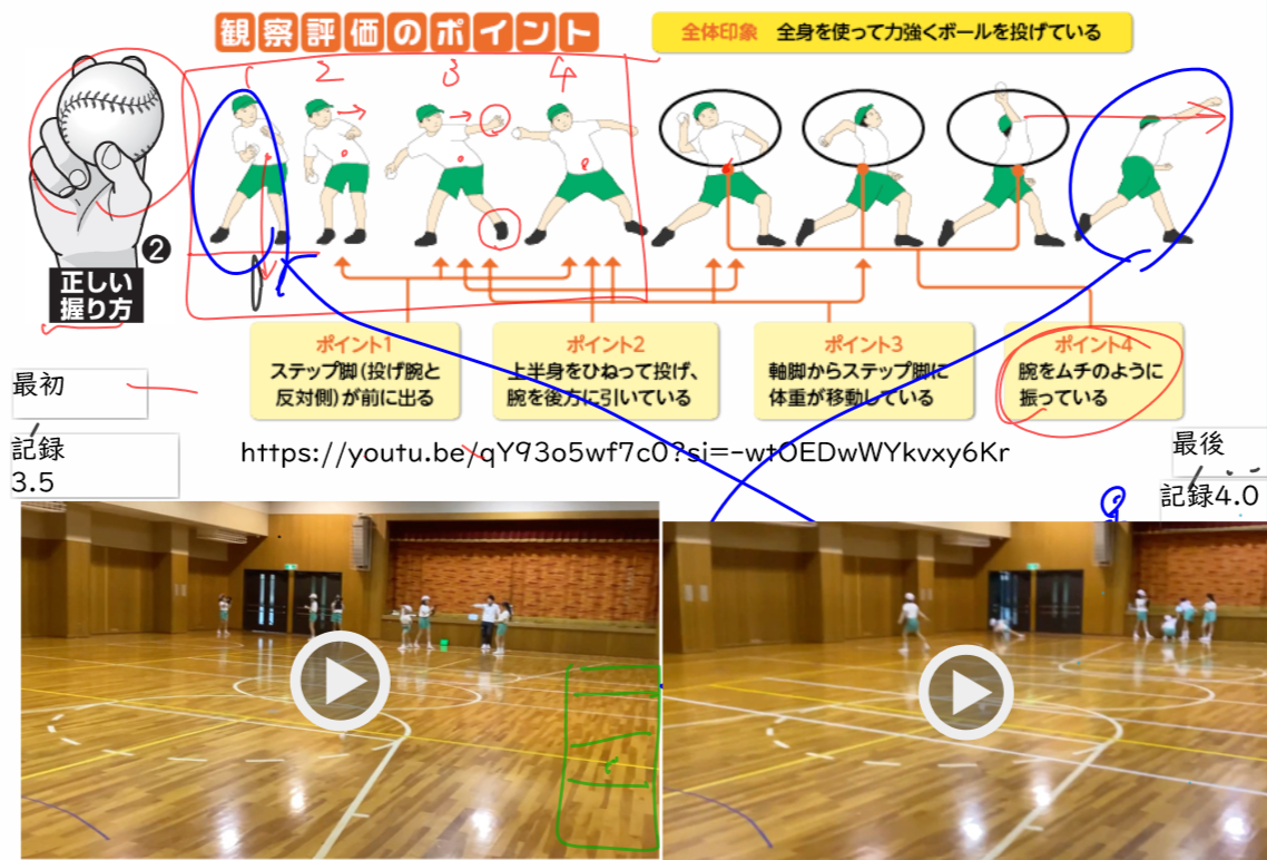 最終的にボールを投げると、ほぼ全員が記録を更新!タブレット活用で自身のフォームを客観視し、運動のコツをつかむ貴重な体験となりました。