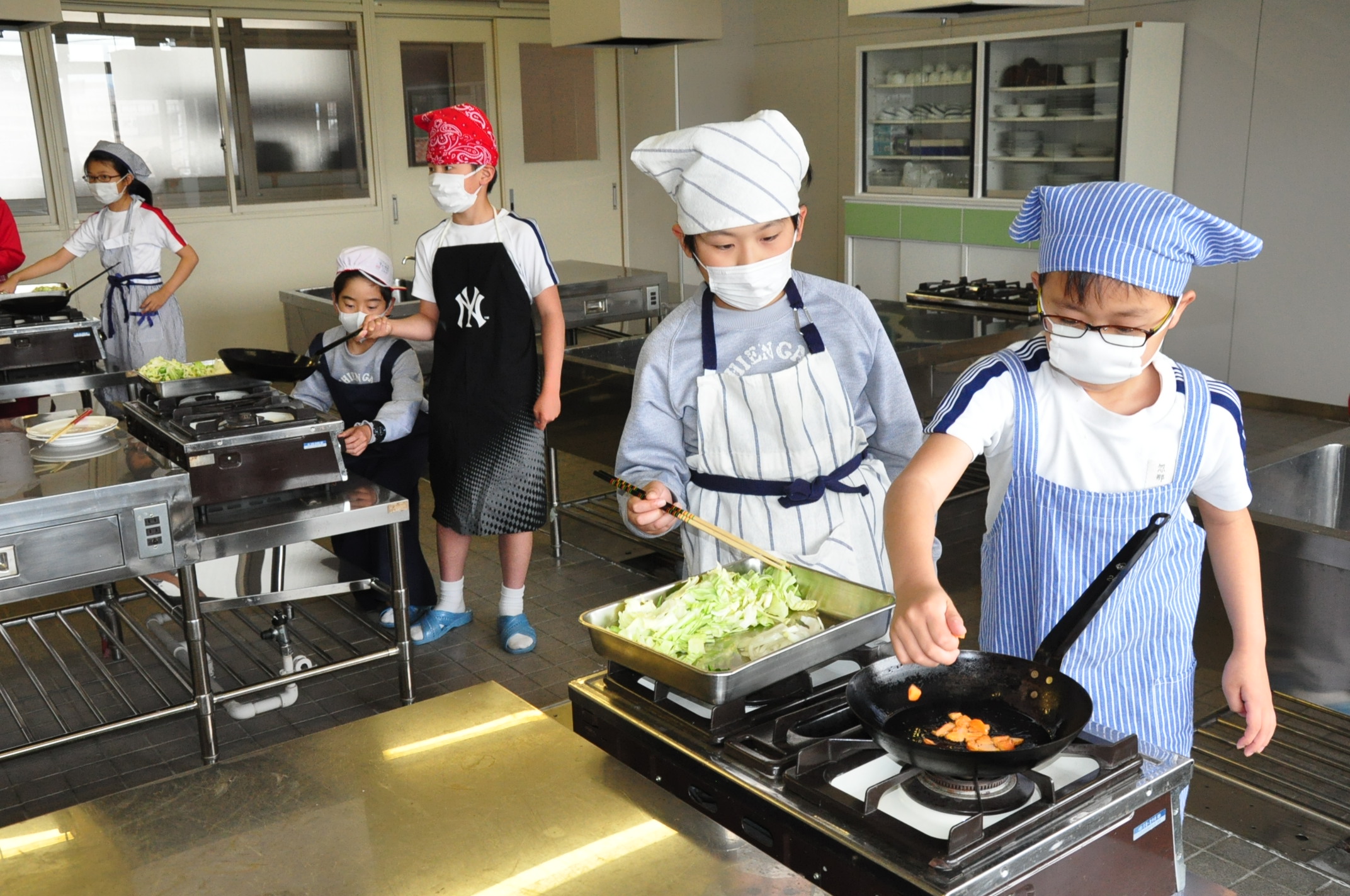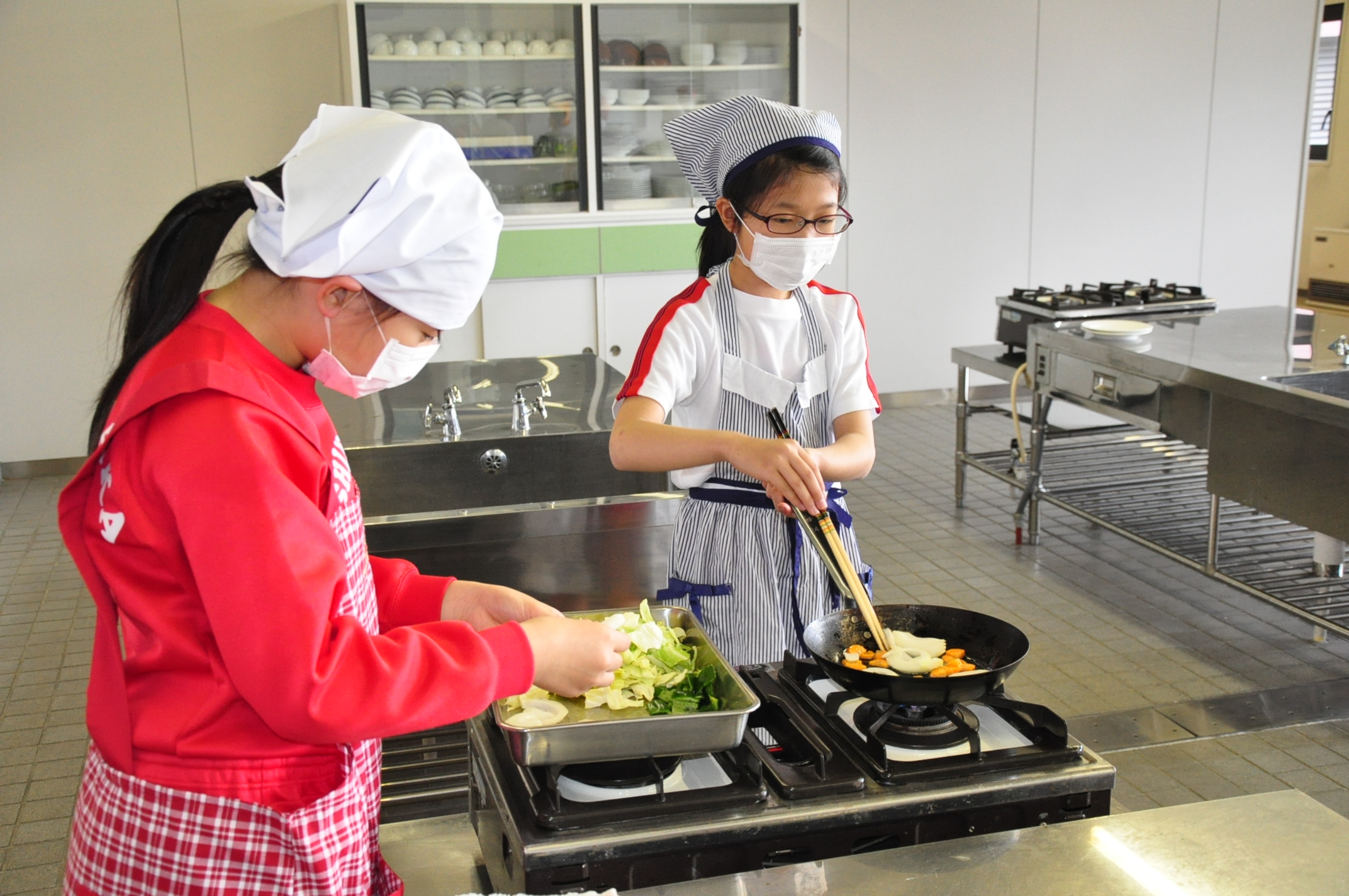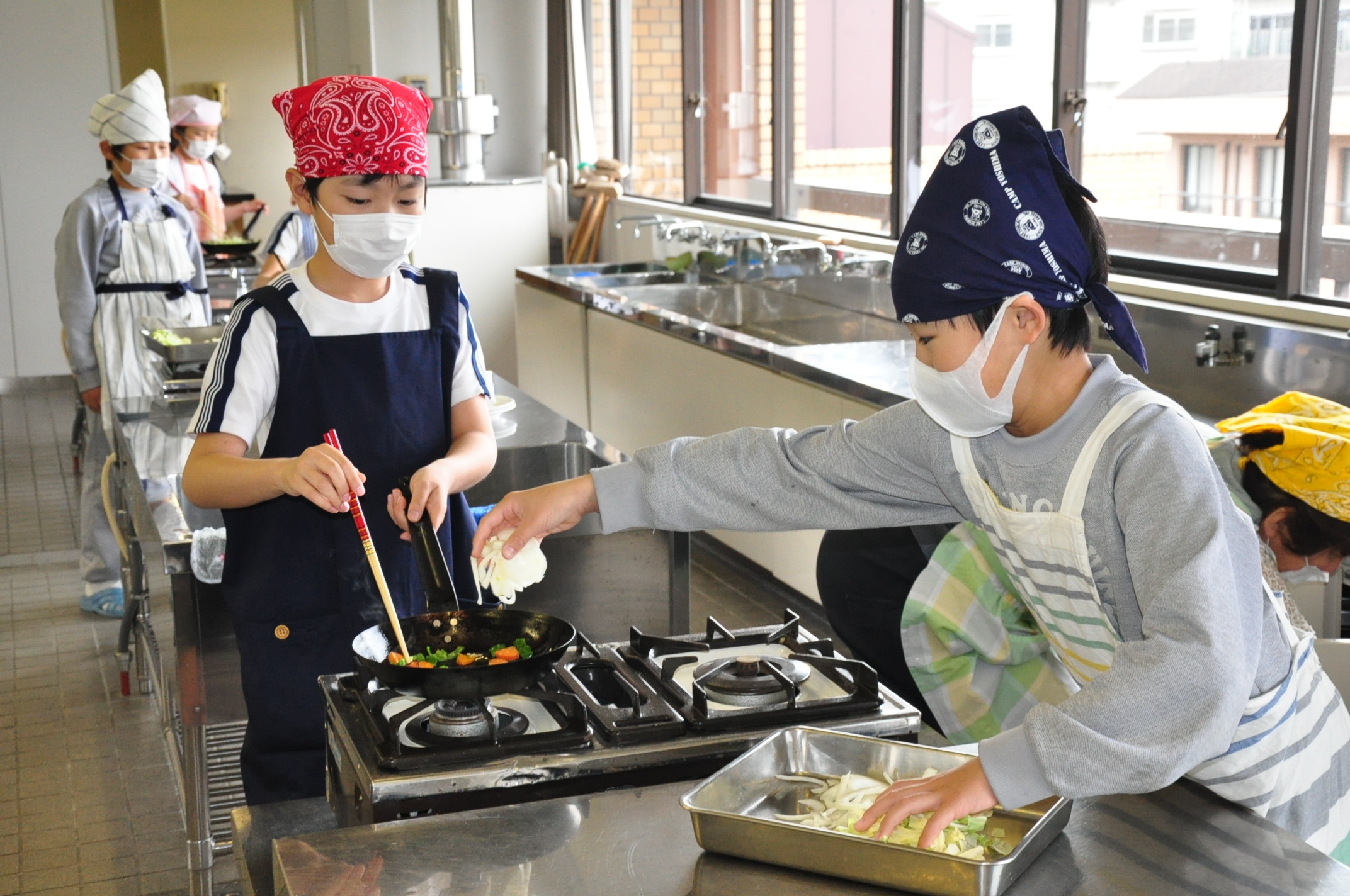 平成30年5月8日(火),5年生が調理実習で野菜炒めを作りました。