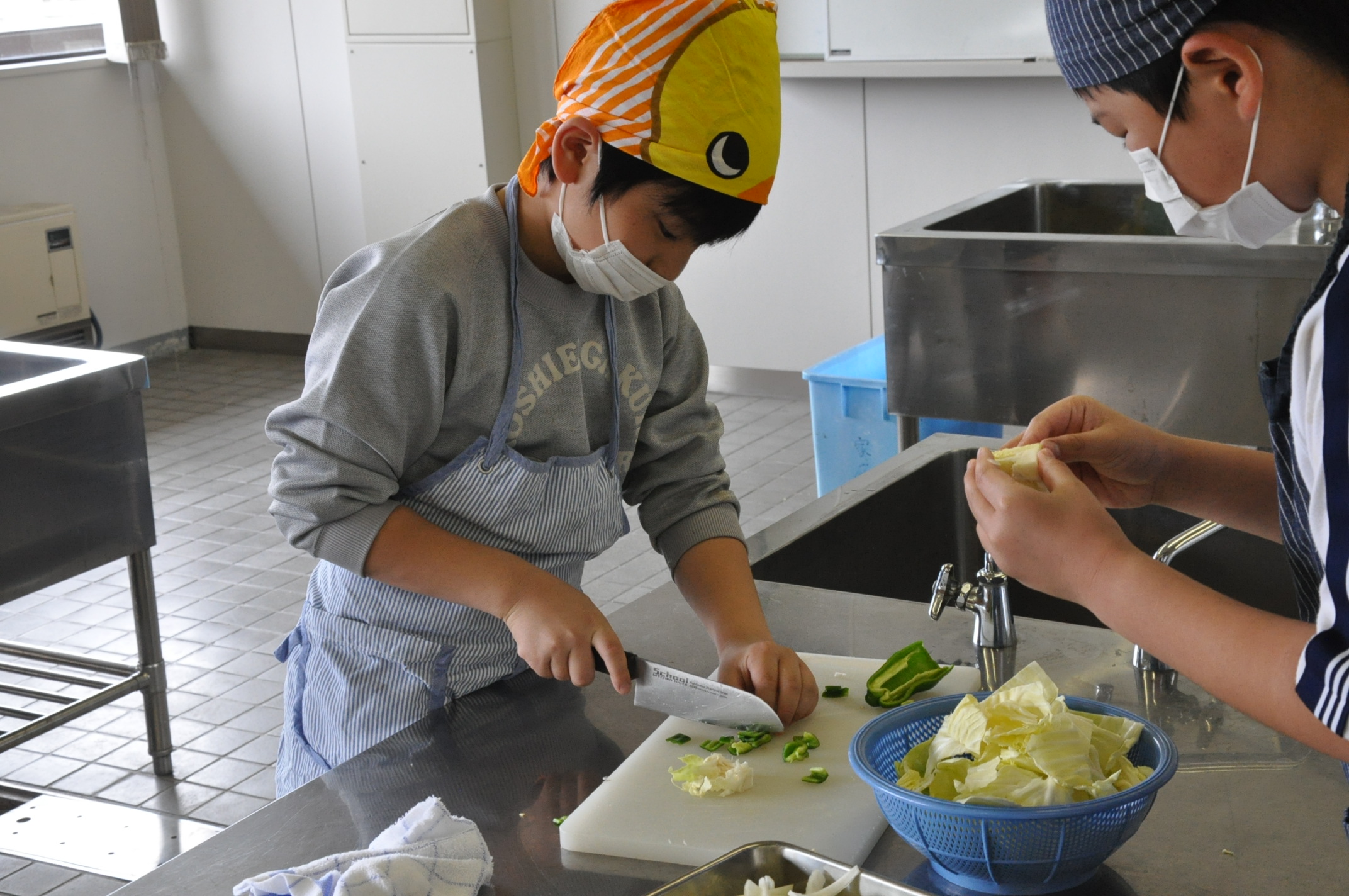 野菜の切り方を教わります