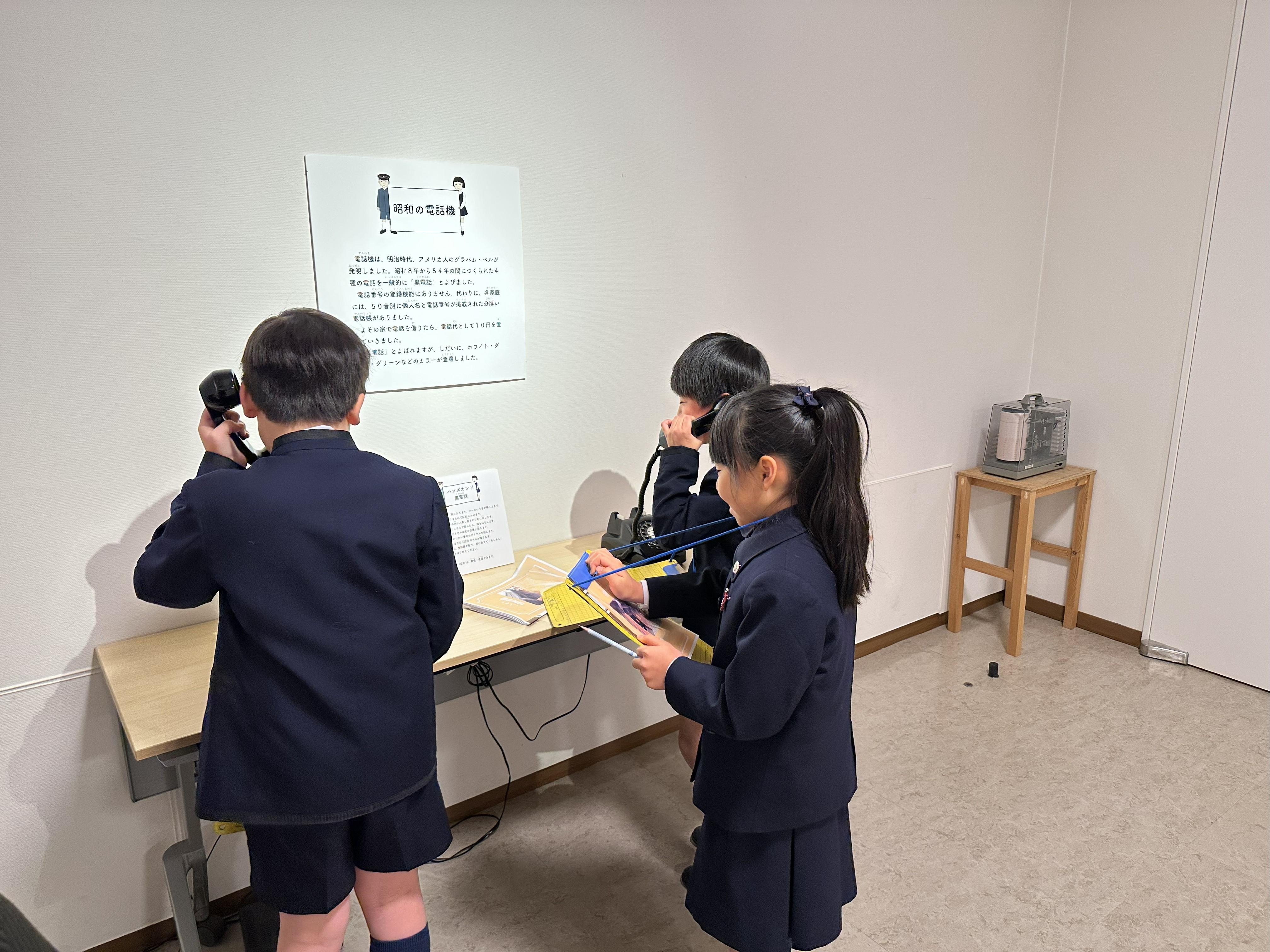 伊丹市にある「市立伊丹ミュージアム」へ校外学習に出かけました。当時実際に使われていた道具を見たり、使い方や今はどのような道具に発展したのかを施設の方に聞いたりと一人ひとりが主体的に学んでいました。また、黒電話や十六むさし(江戸時代のボードゲーム)を体験することができ、貴重な時間となりました。