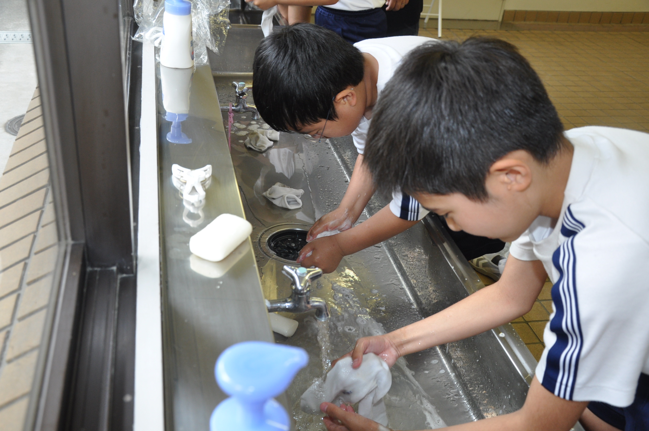 自分の手でゴシゴシ洗いをします。