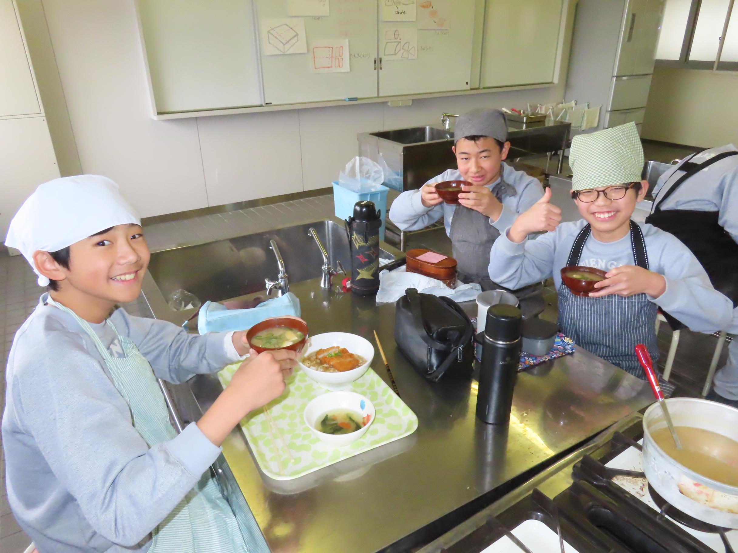 家庭科「調理実習(味噌汁)」