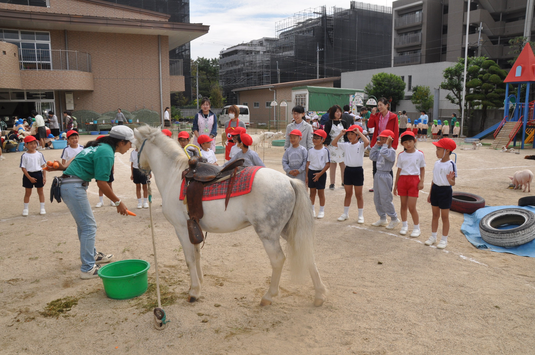 1年・2年 ふれあい動物村 [投稿日:2018年10月15日] 平成30年10月15日(月),1年生と2年生がふれあい動物村に参加しました。 学院幼稚園の園庭で,園児たちと一緒にさまざまな動物たちと楽しいひとときを過ごしました。 一覧へ戻る