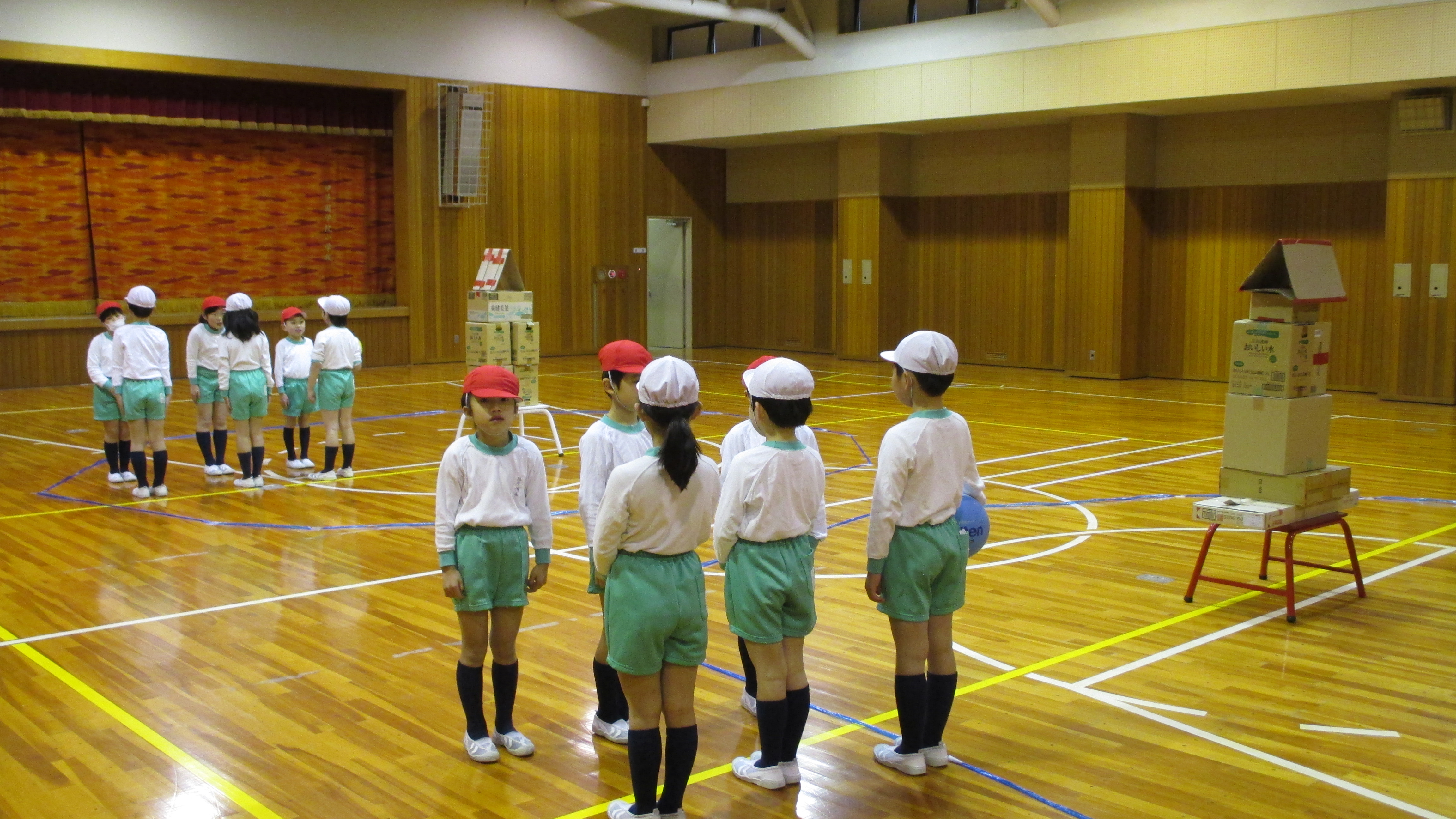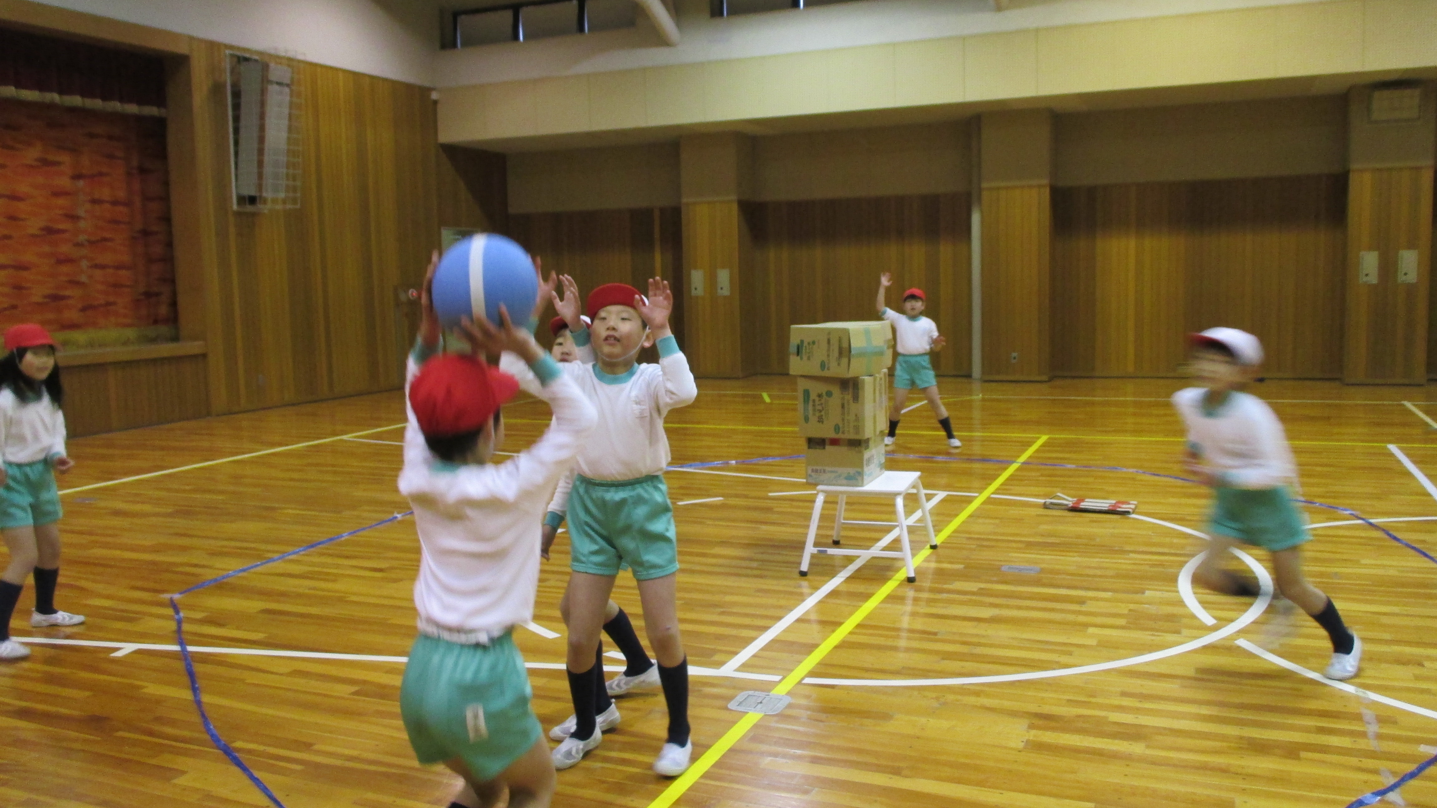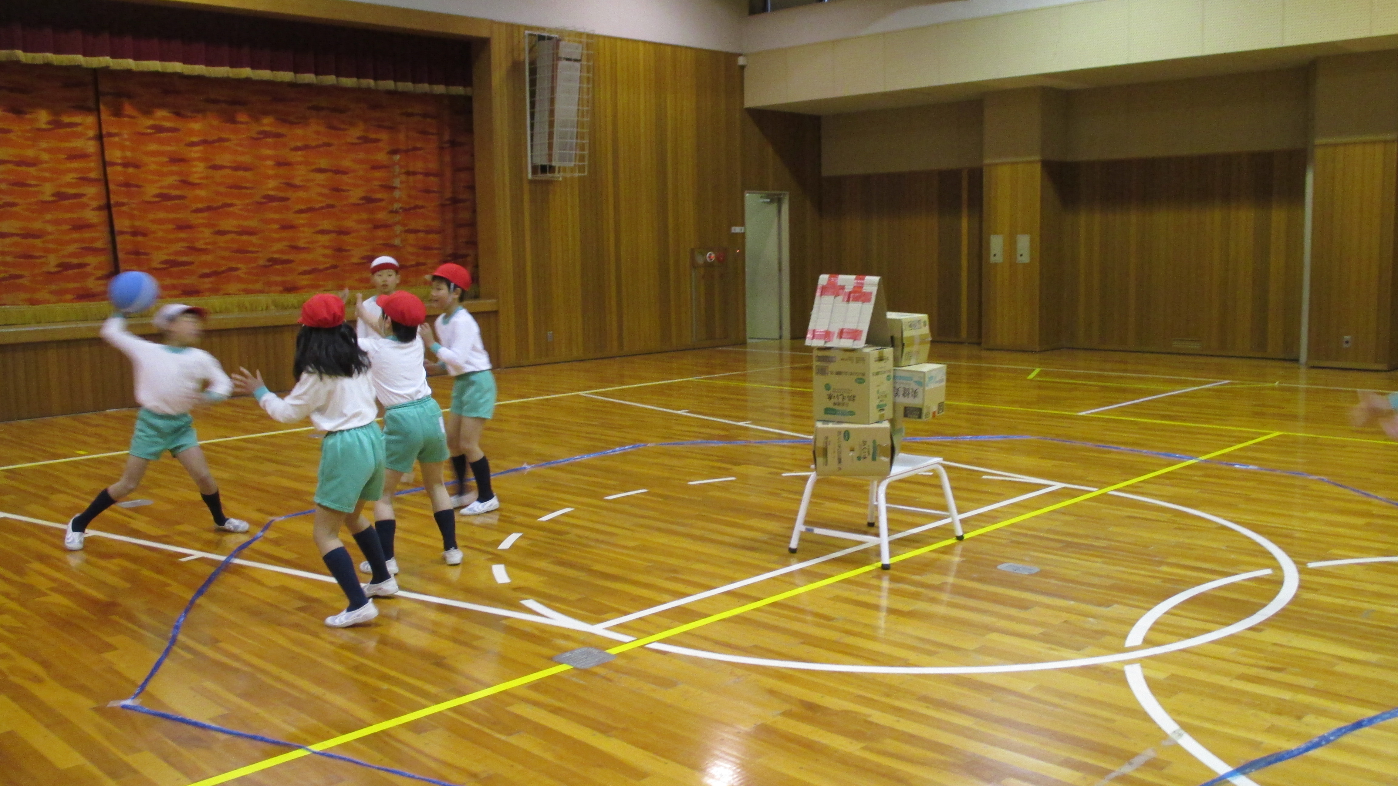 2年生では,体育の時間にボールを使って「的当てシュートゲーム」を行いました。