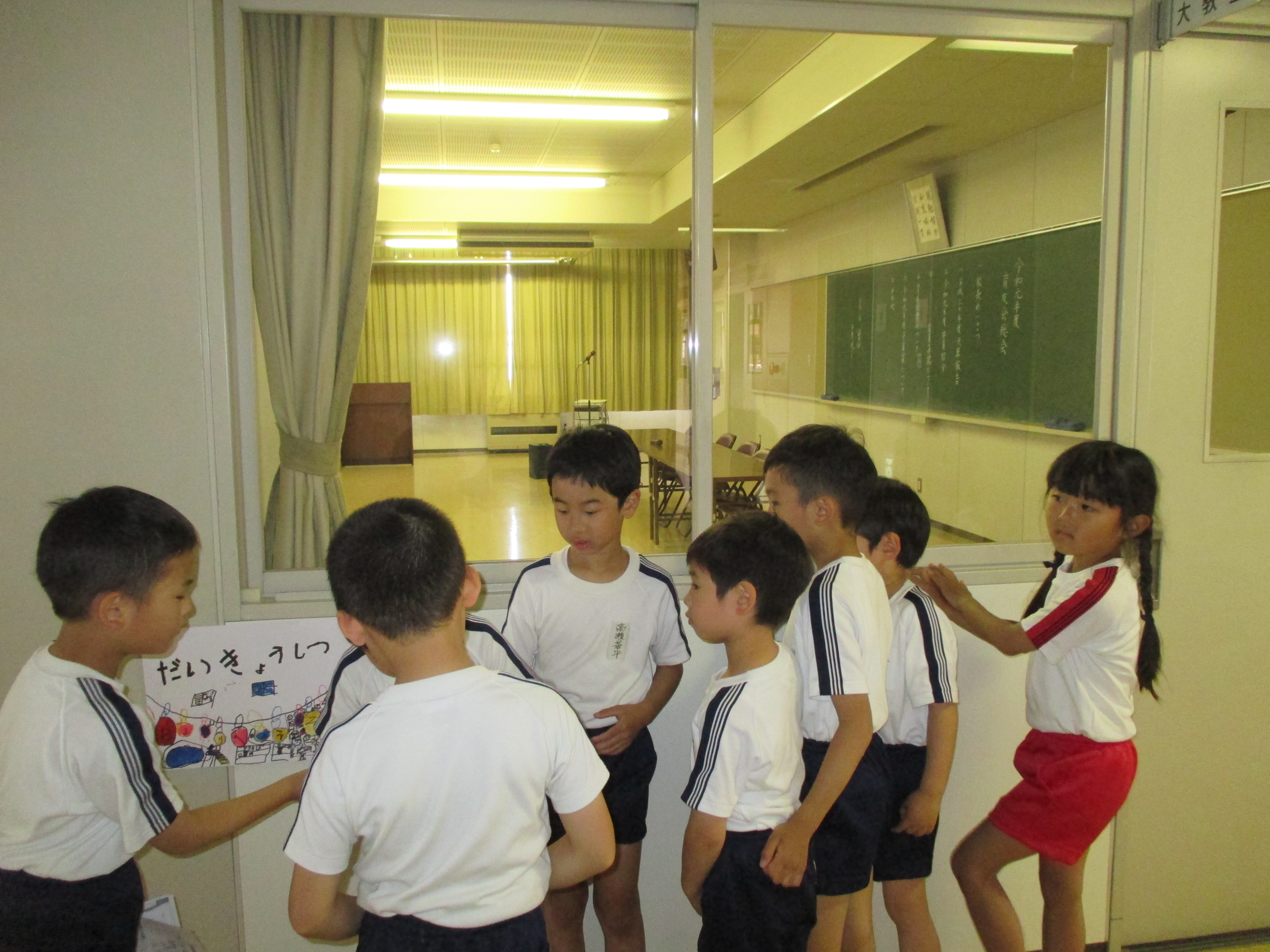 1年生に学校を案内するために、この日まで、クラス全体やグループで話し合いをしてきました。その他にも、校長先生にインタビューをしたり、教室を紹介する看板やクイズを考えてきました。