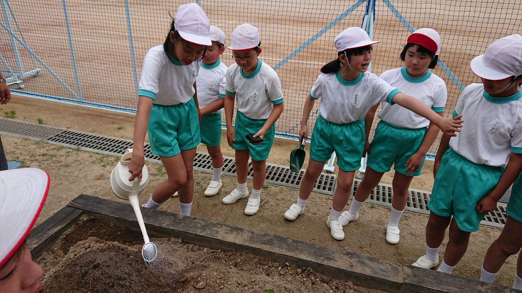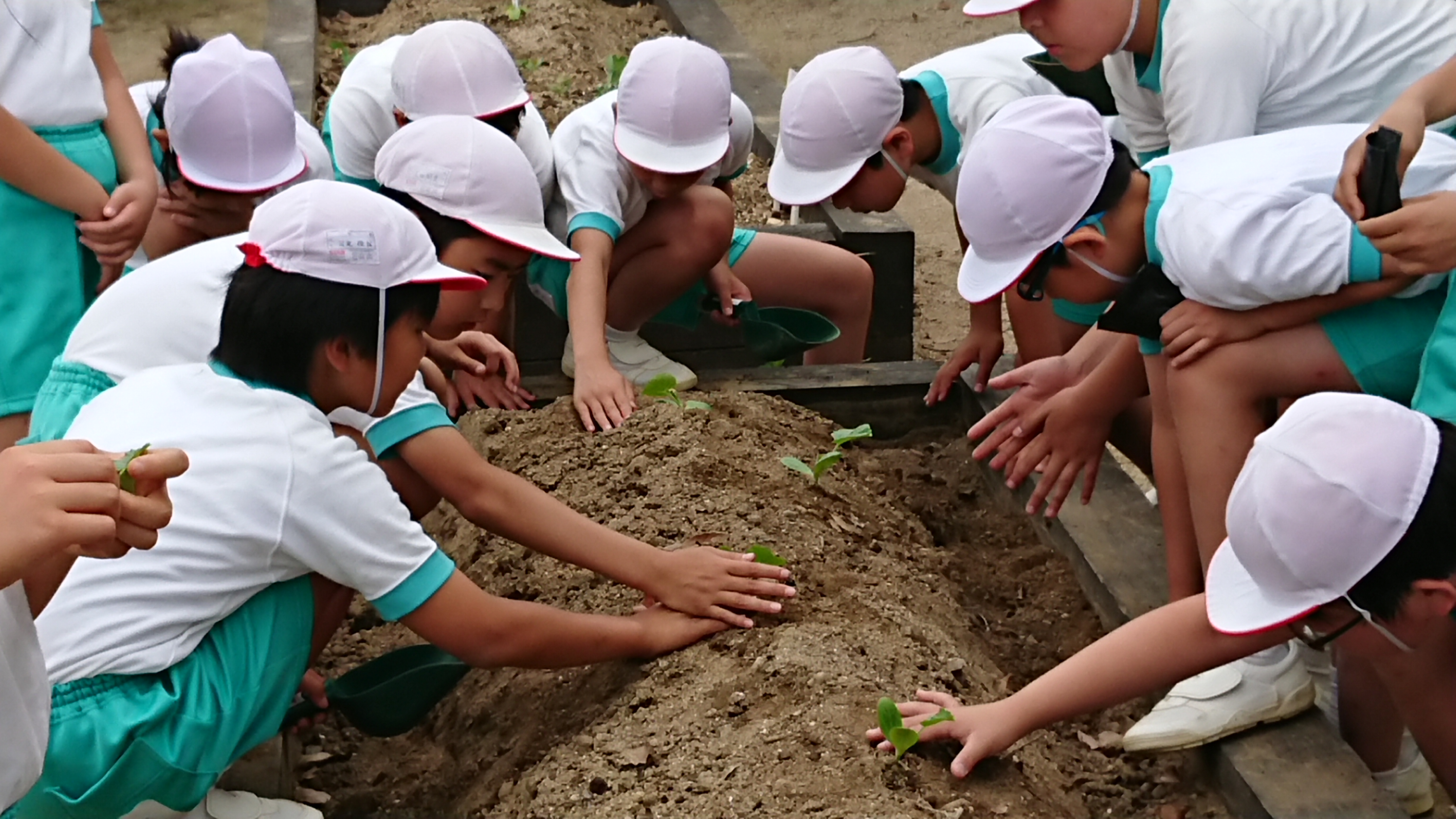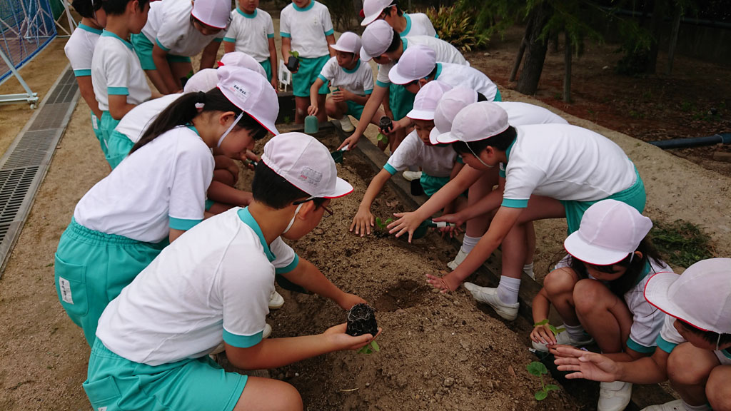 5年生 理科「 カボチャの植え替え」 [投稿日:2019年06月14日] 令和元年6月14日(金),理科の時間に5年生が,おもちゃカボチャの苗を学級園に植え替えました。 秋に実るのが楽しみです。 一覧へ戻る