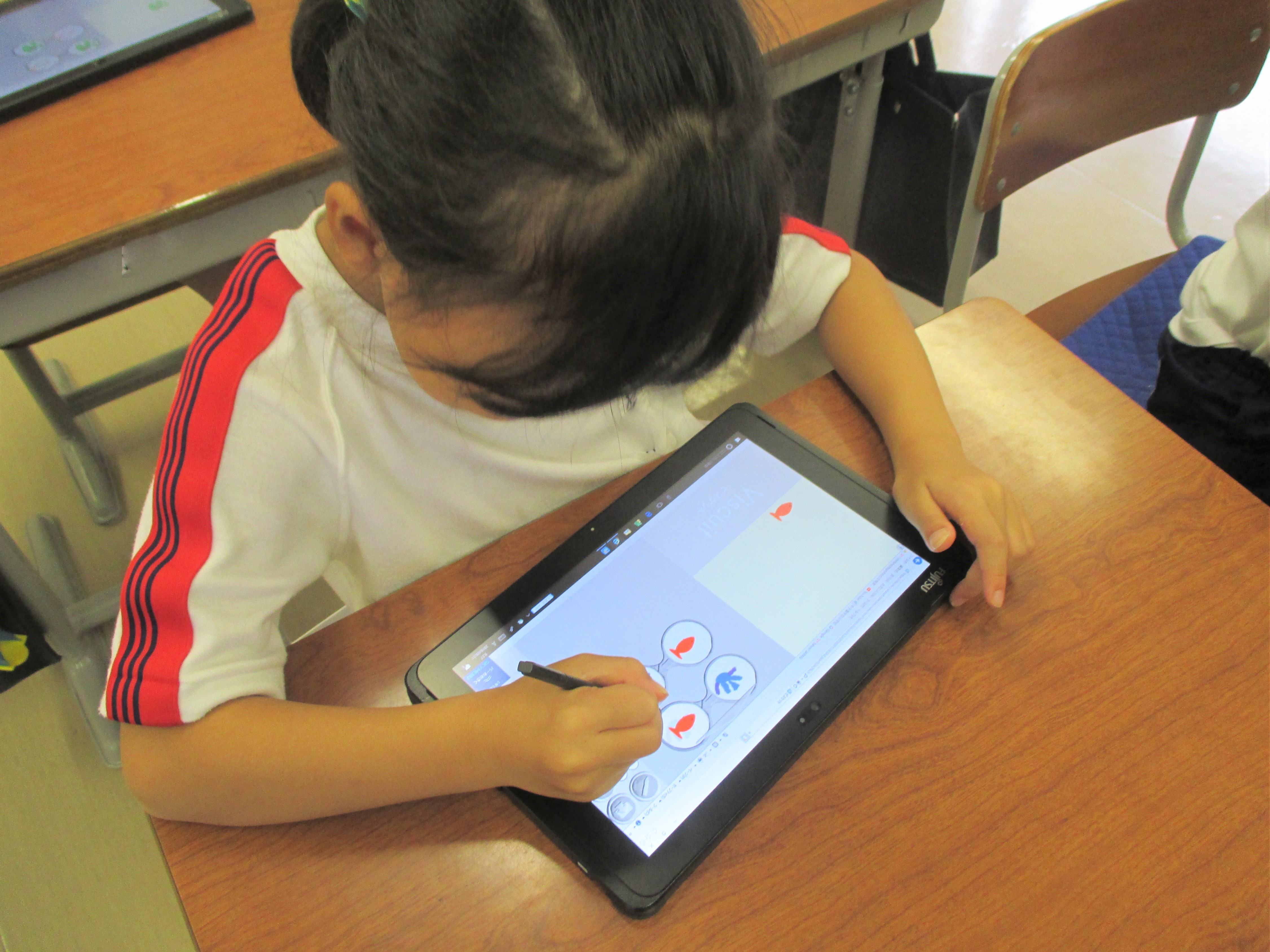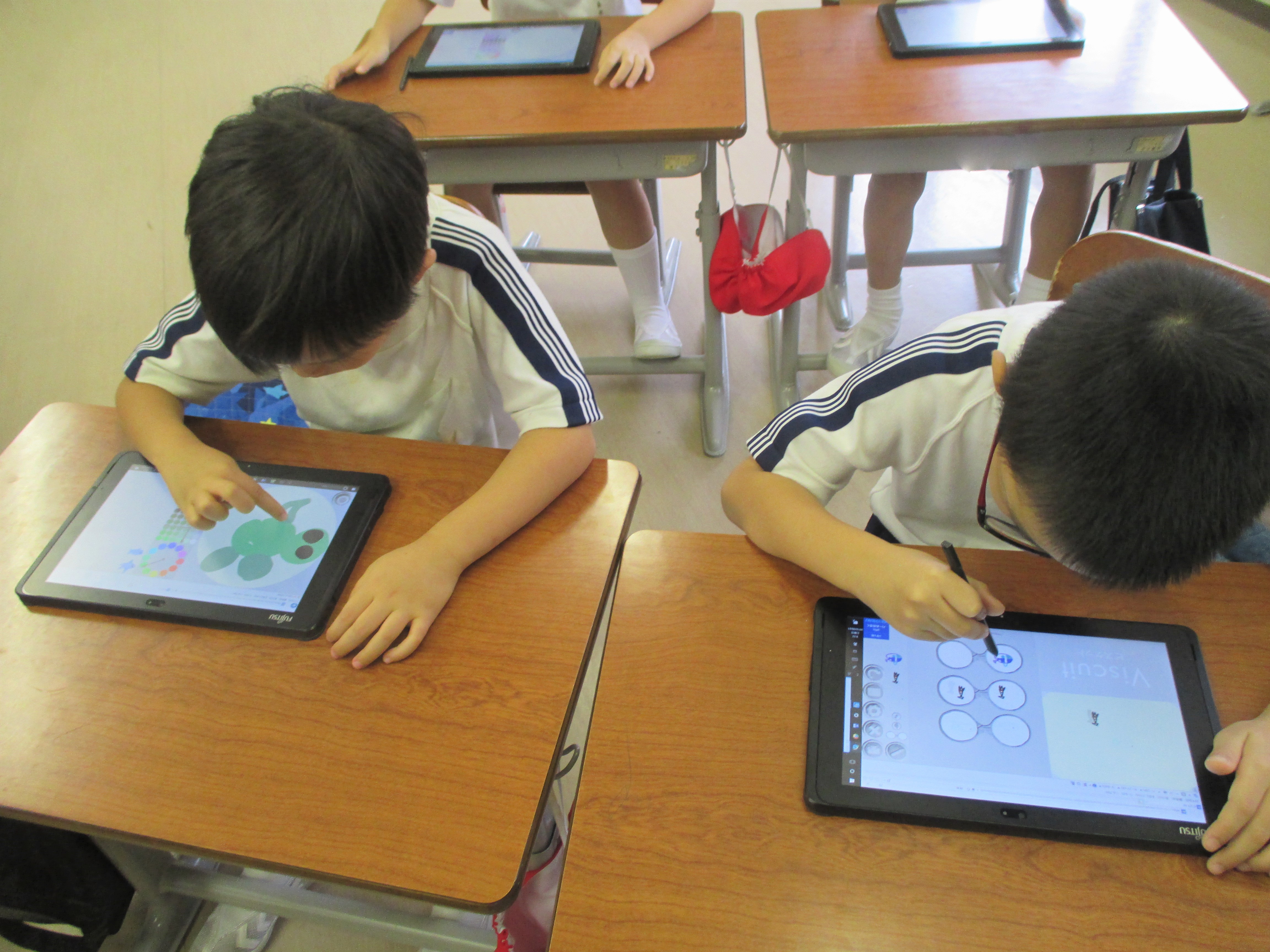 1年生では、タブレットを使用してプログラミングの学習を行いました。