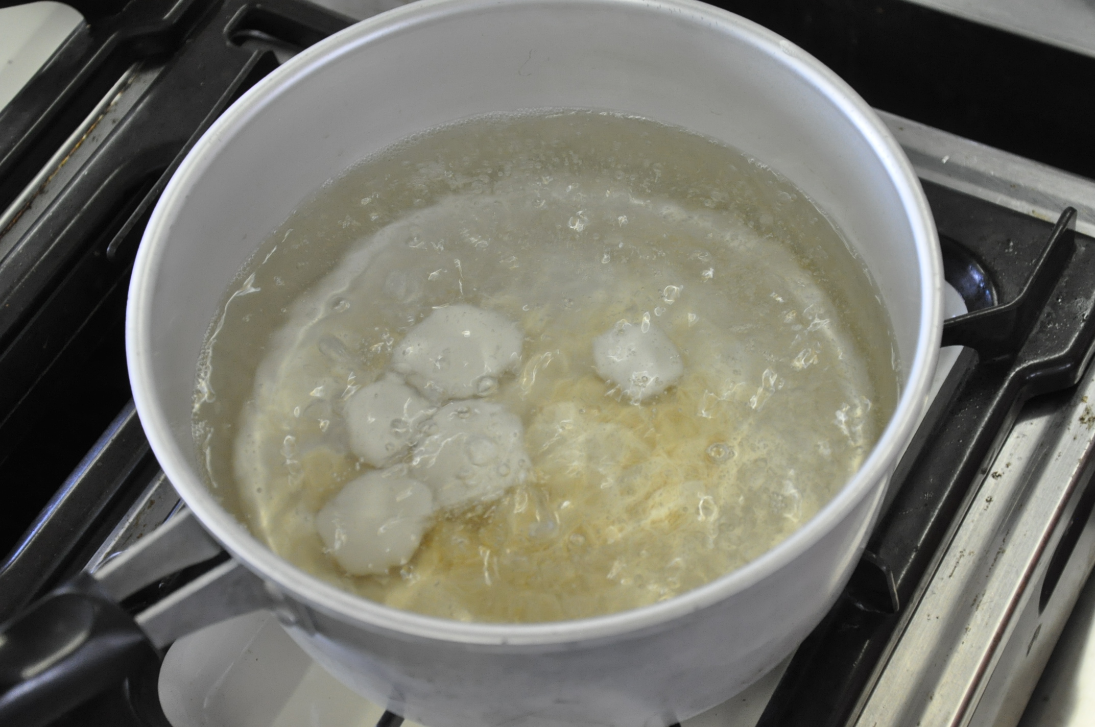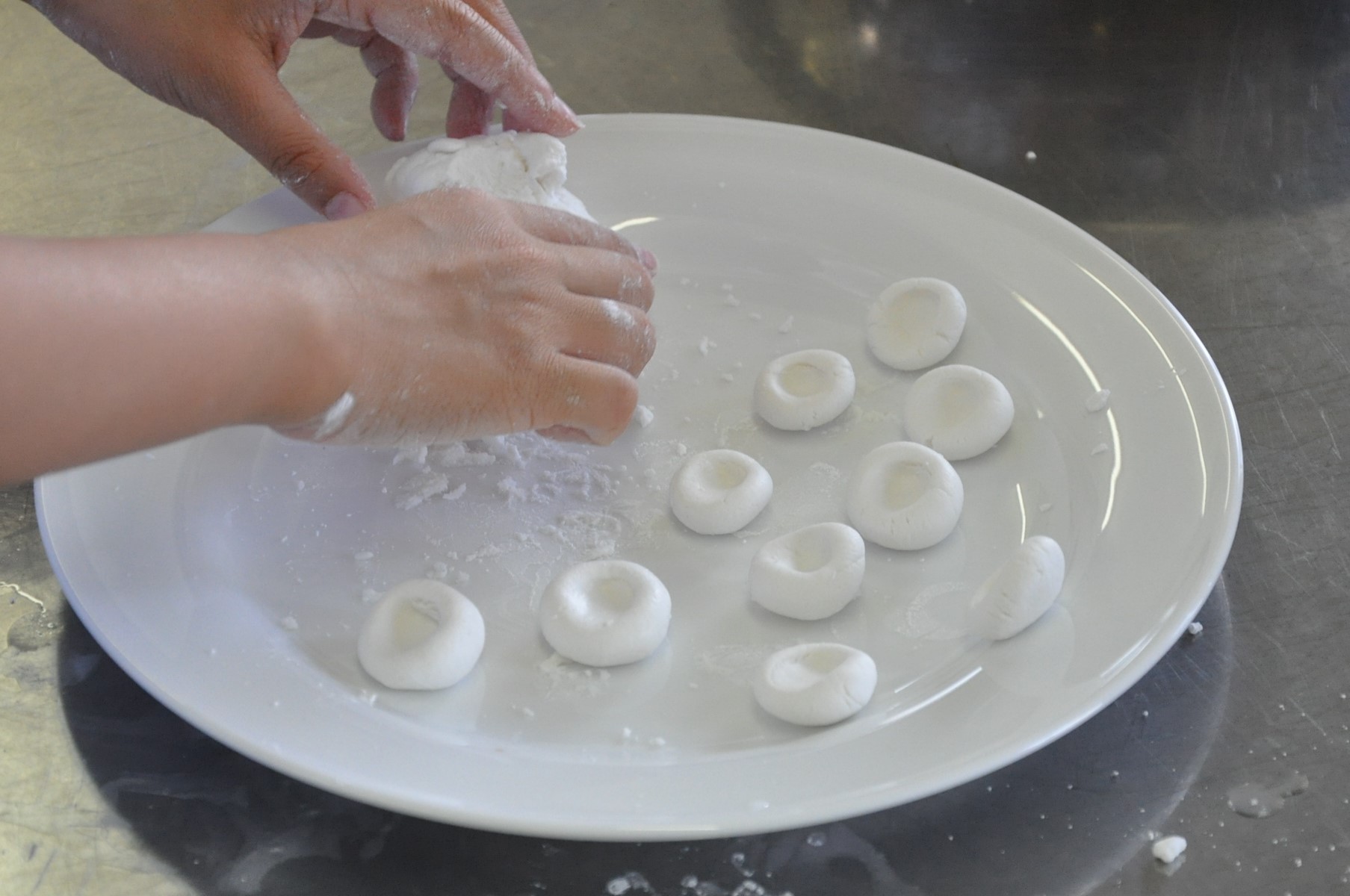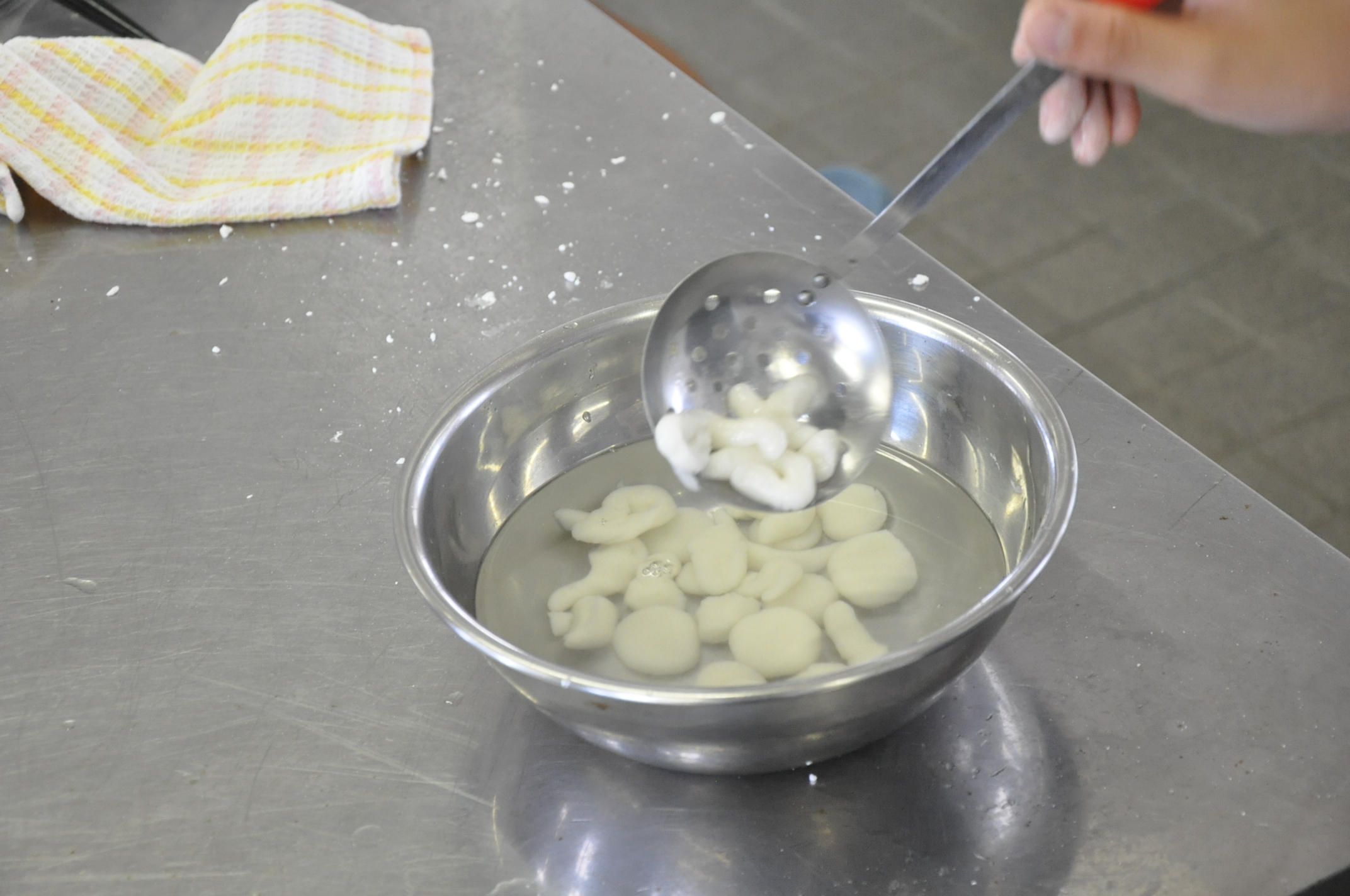 耳たぶほどのかたさになったら、一口大の団子にします。