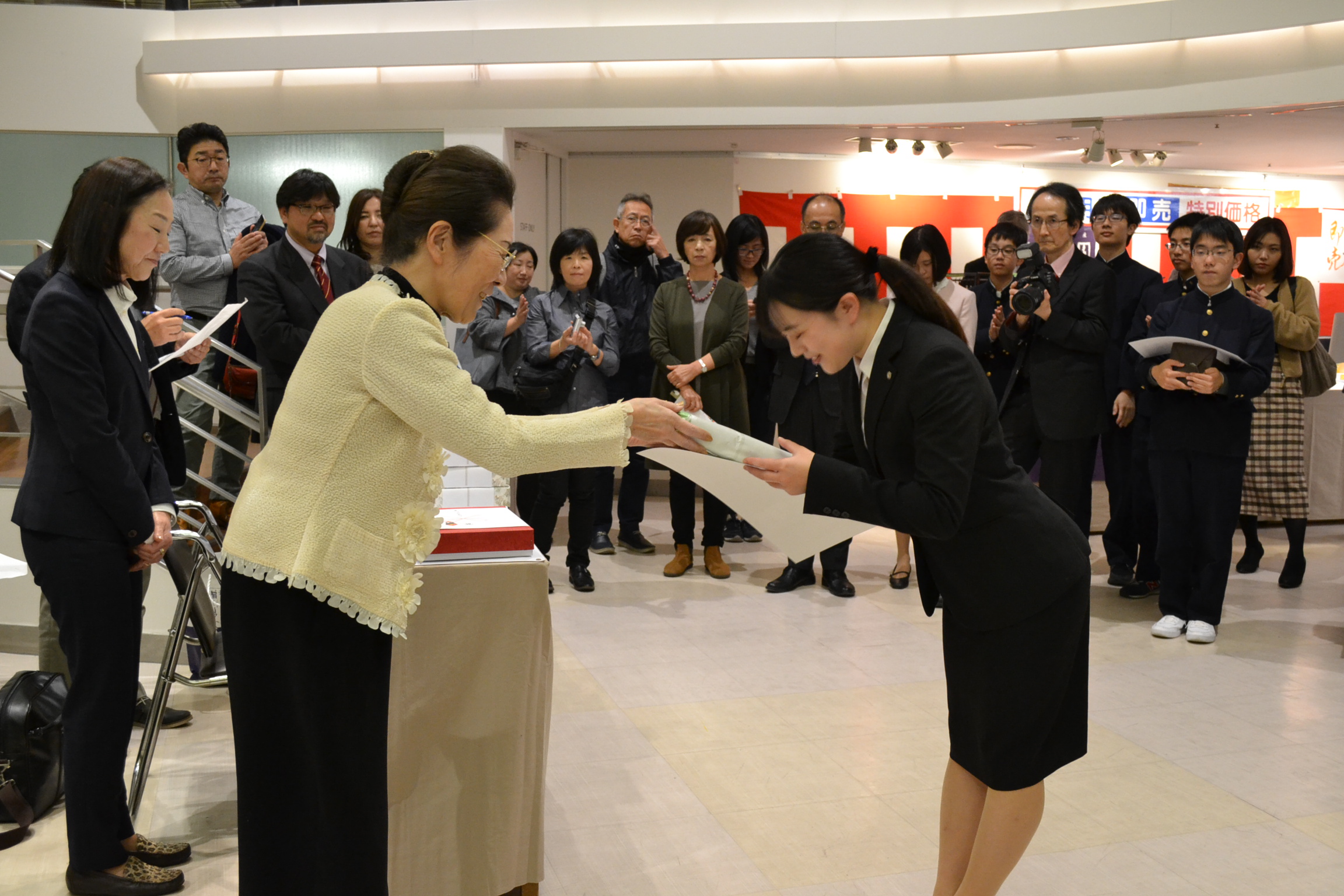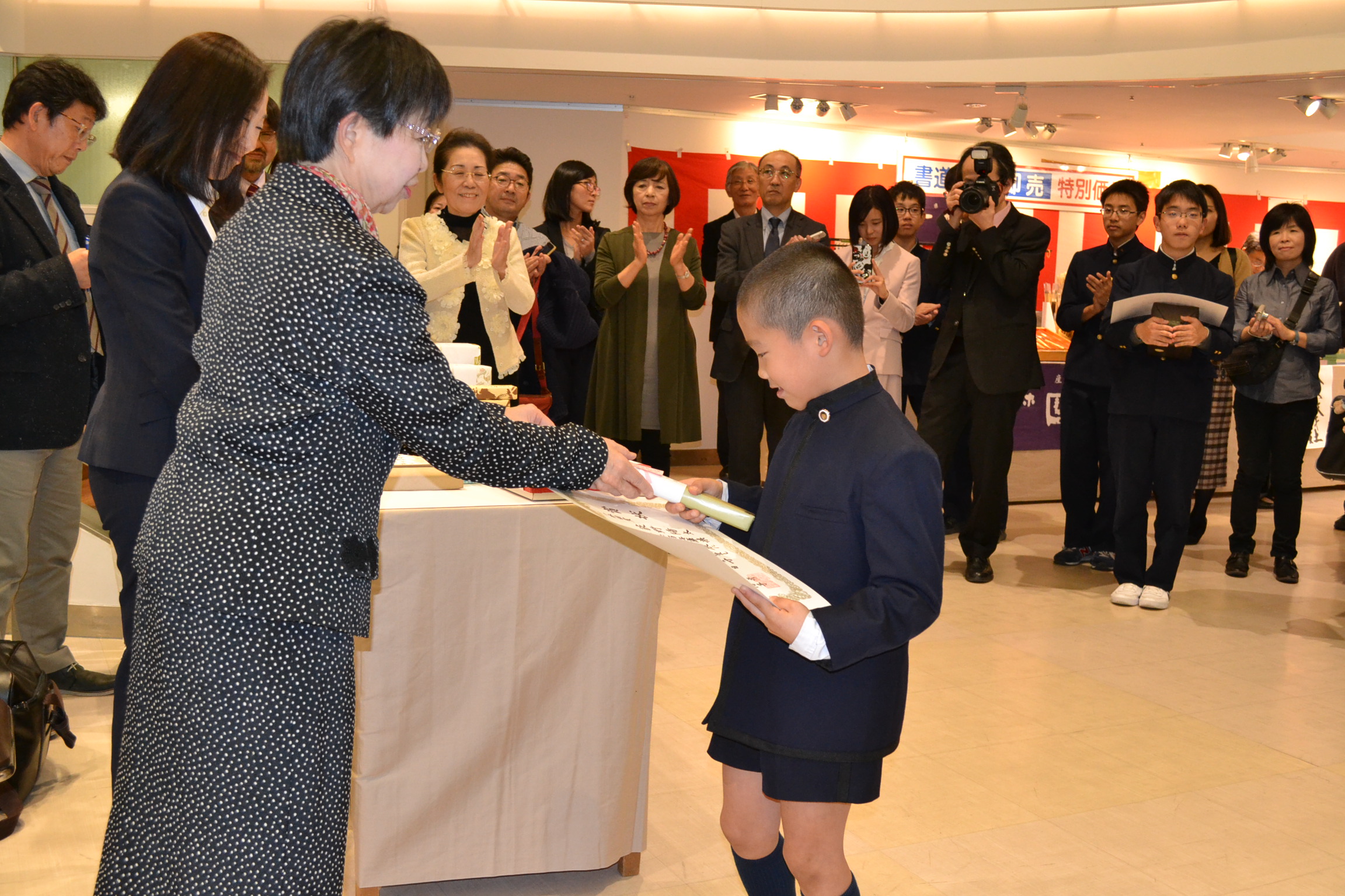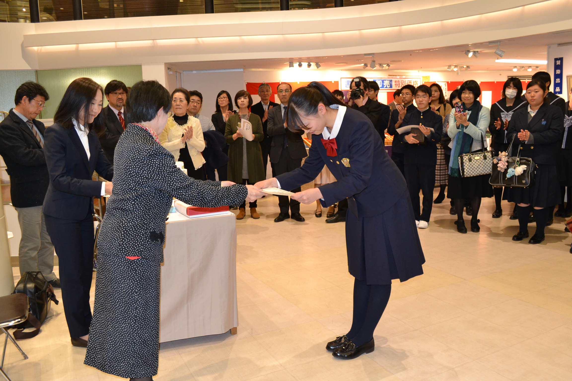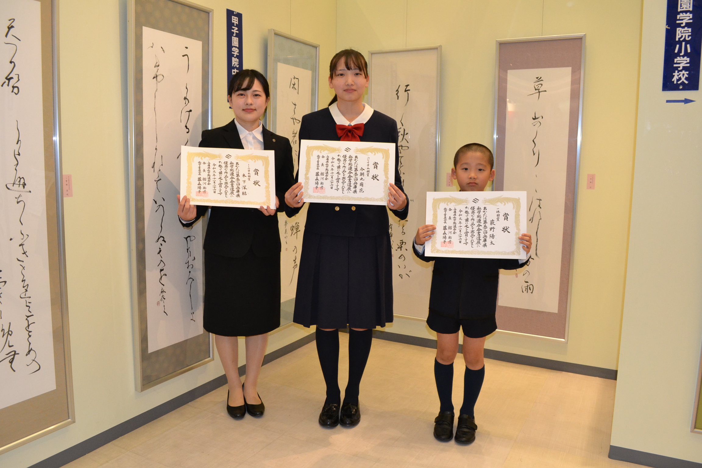 第52回兵庫県私学総連合会「私学の書展」表彰式 [投稿日:2019年11月26日] 兵庫県私学総連合会主催の「第52回私学の書展」の表彰式が、神戸のさんちかホールで行われました。本学院から、小学校2年生の児童、高校2年生の生徒、短大2回生の学生が、特別賞を受賞しました。 一覧へ戻る