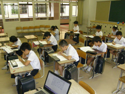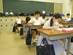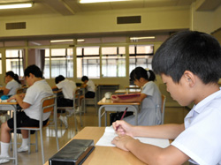 午前中に,希望する子どもたちが自主的に参加して,夏休み中学習に取り組んでいます。