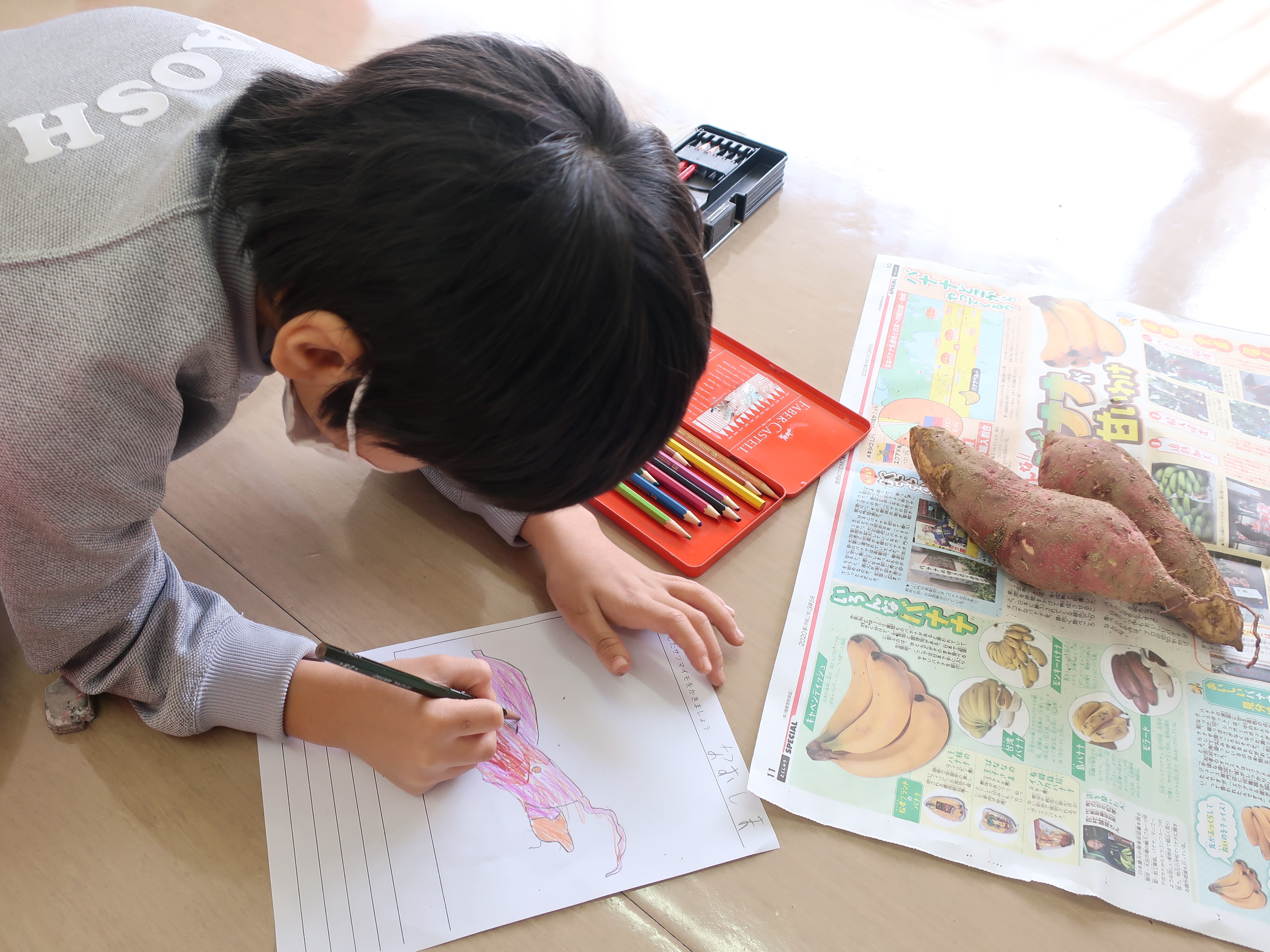 教室に戻ってから、お芋の観察もしました。