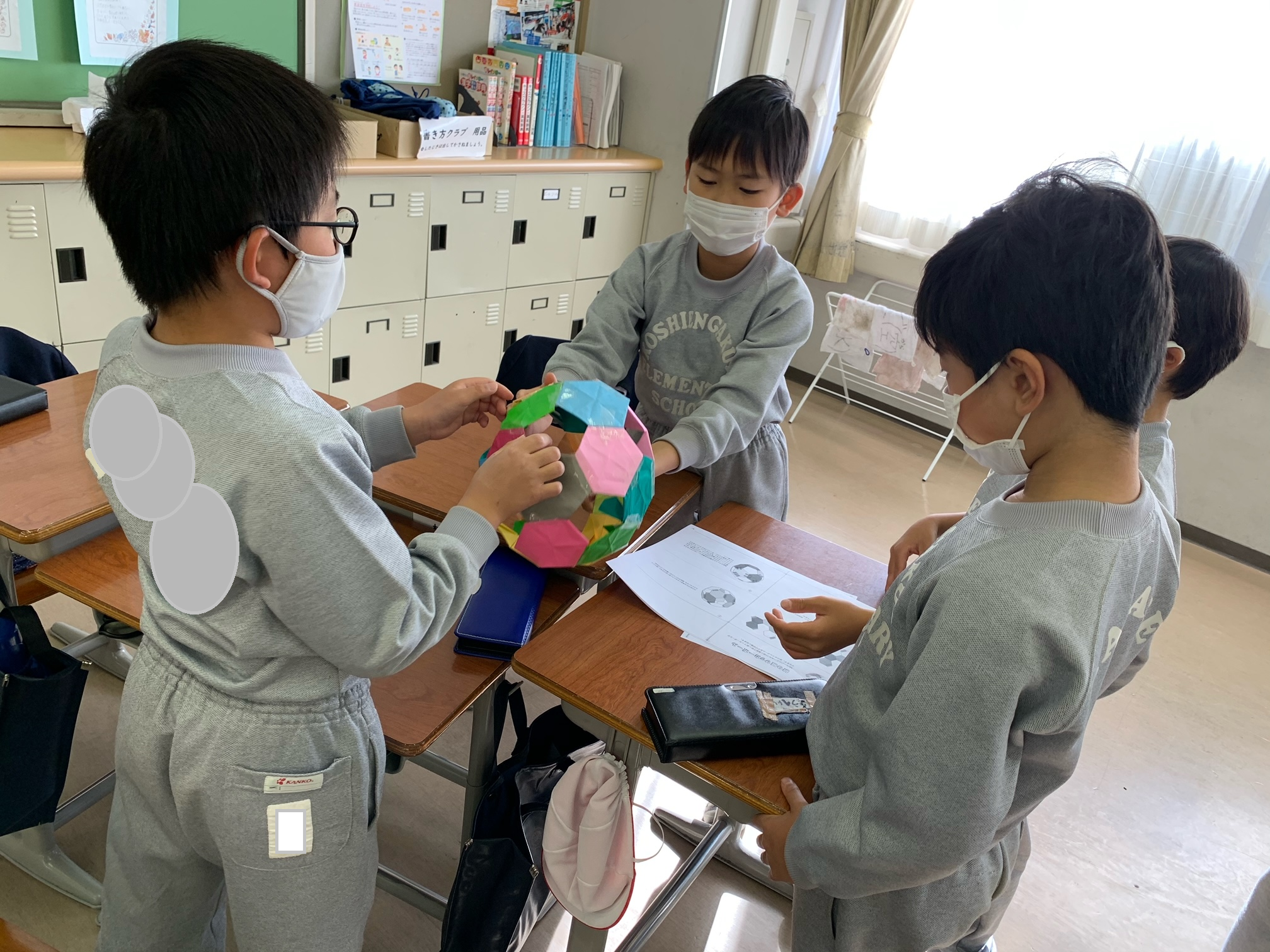 算数の時間を使って、少し発展的な立体図形に親しむ活動をしました。