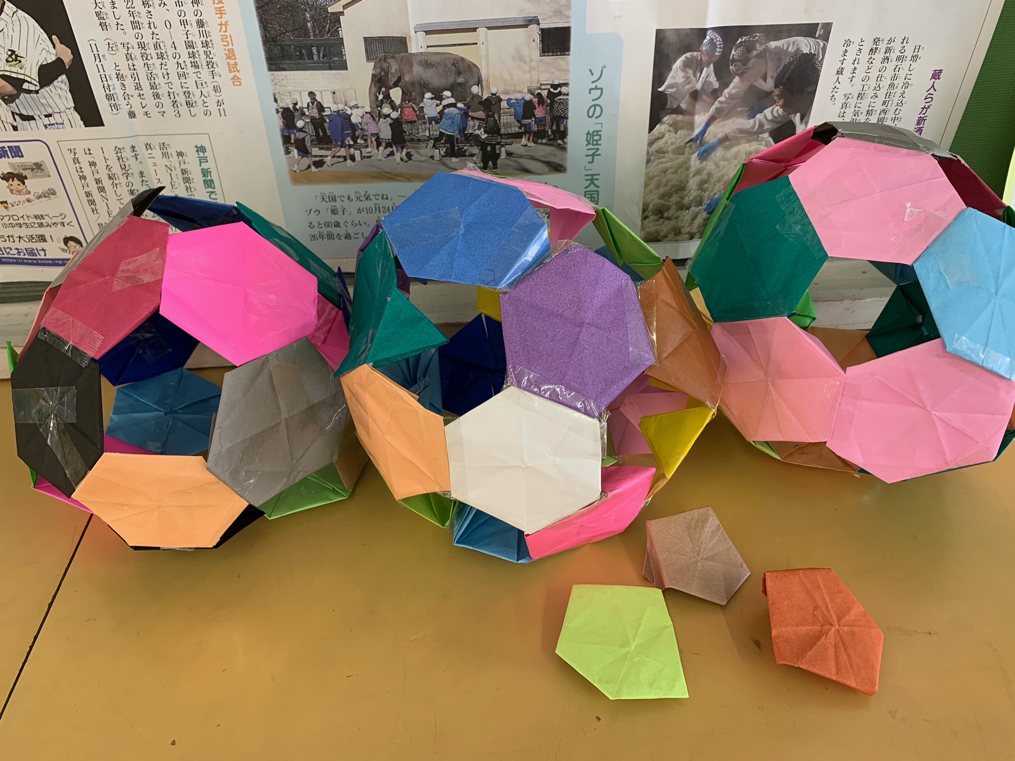 班のみんなで協力して、サッカーボールの形が出来上がったときには感動していました。
