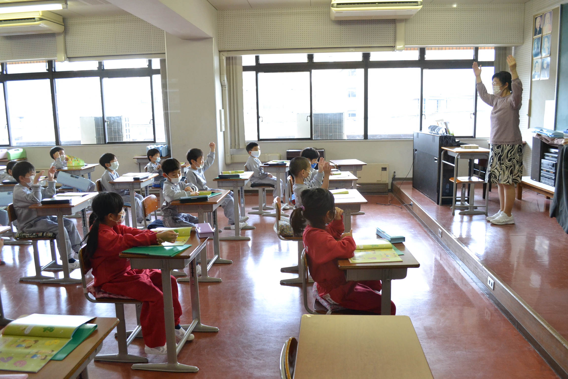 教室からは明るい声が聞こえ、みんな新しい友達と仲良く楽しく勉強や遊びをしています。