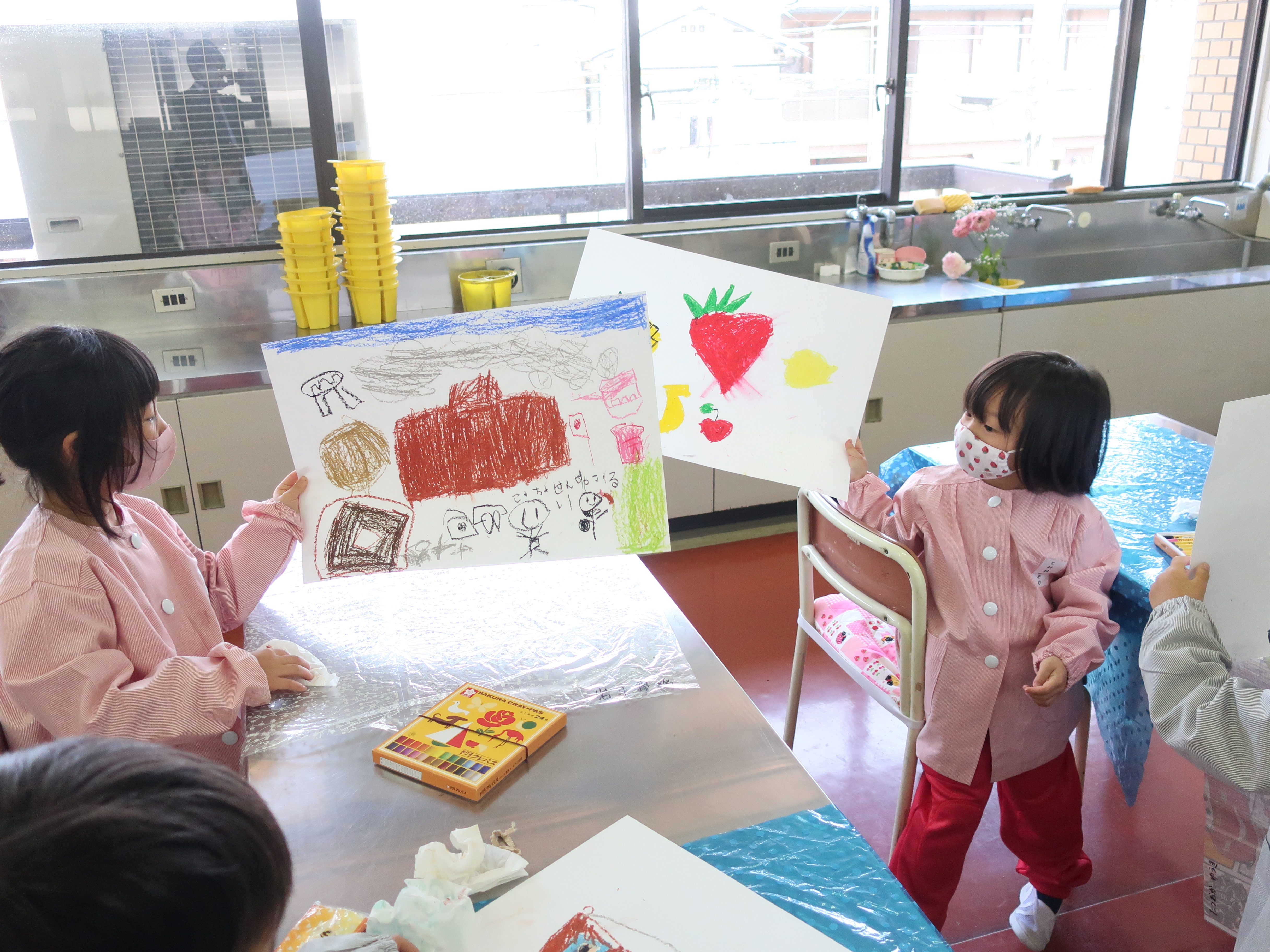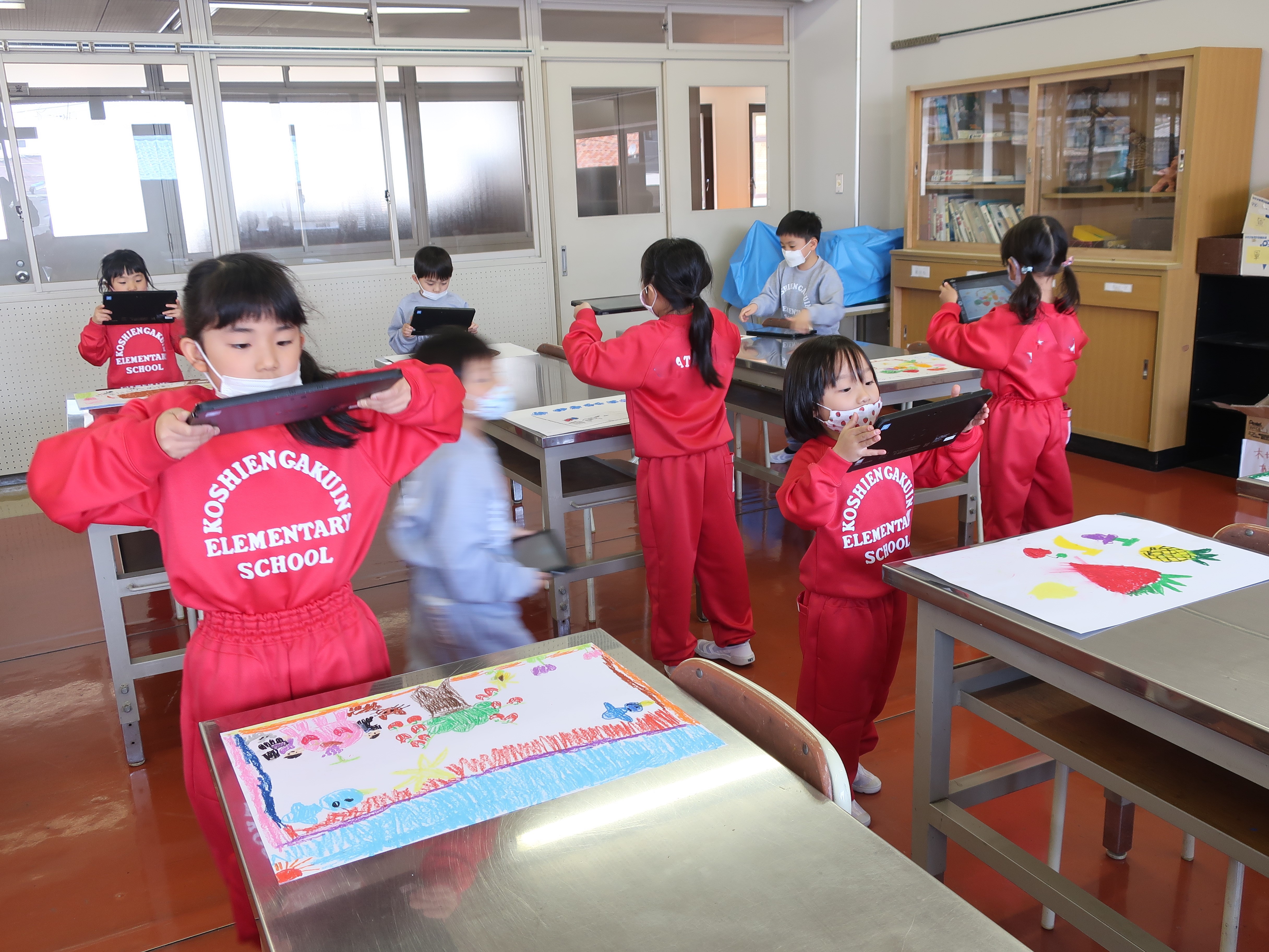 基本操作を学んだ後、図工の授業で描いた絵をタブレットで撮りました。