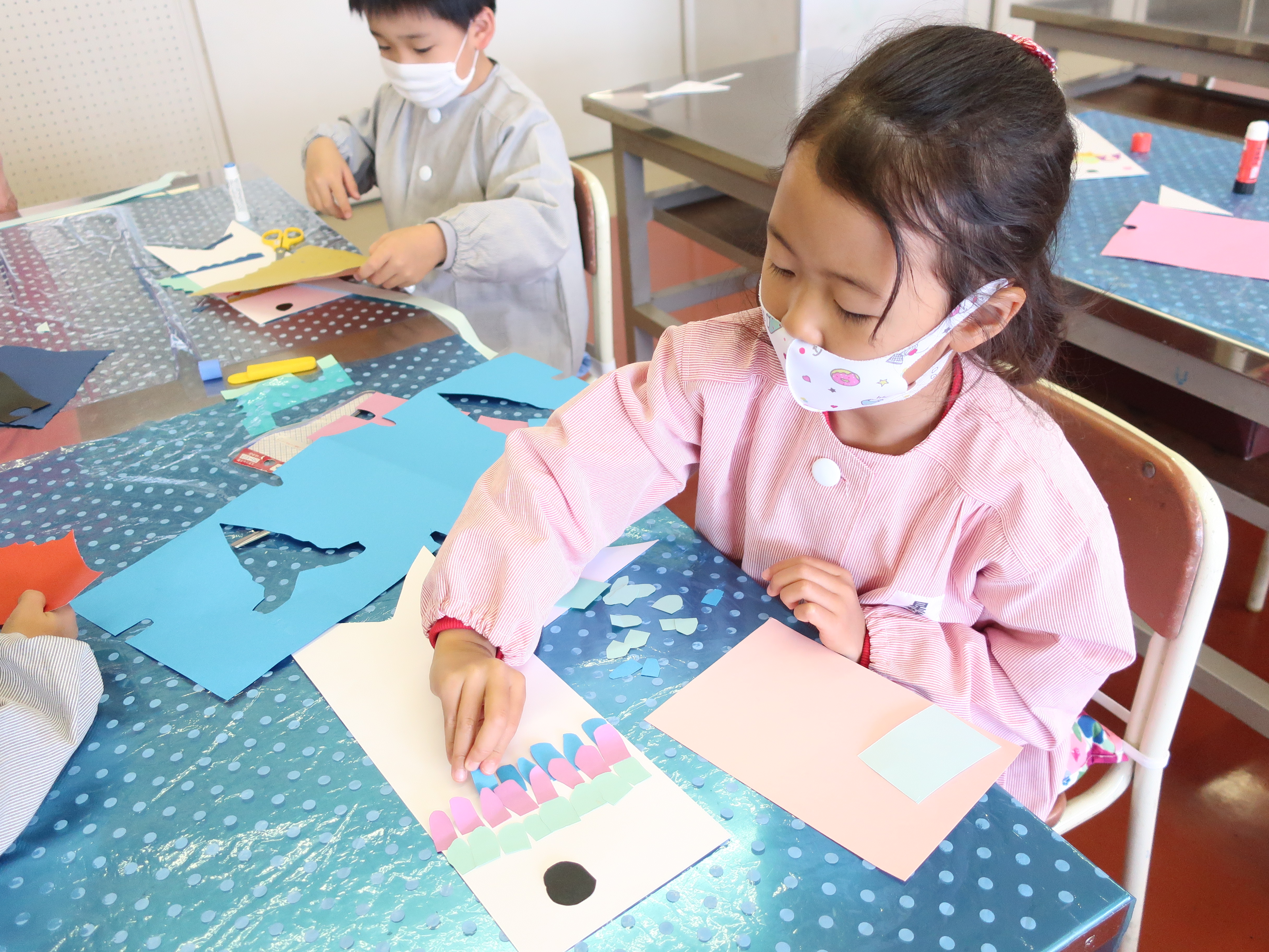 こいのぼり作りでは、みんな鱗の形や貼り方を工夫し、どの作品も個性的で趣向を凝らした作品になりました。
