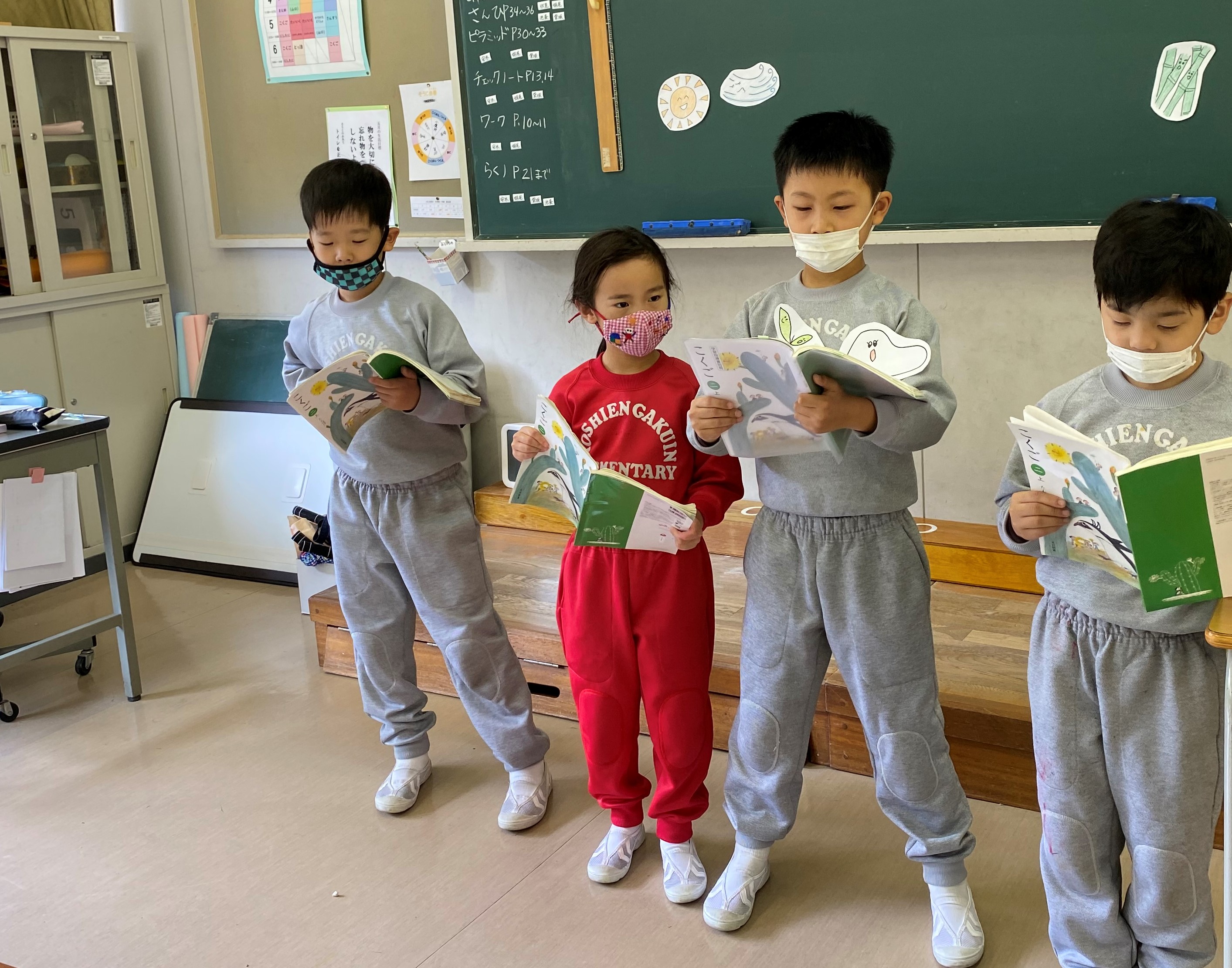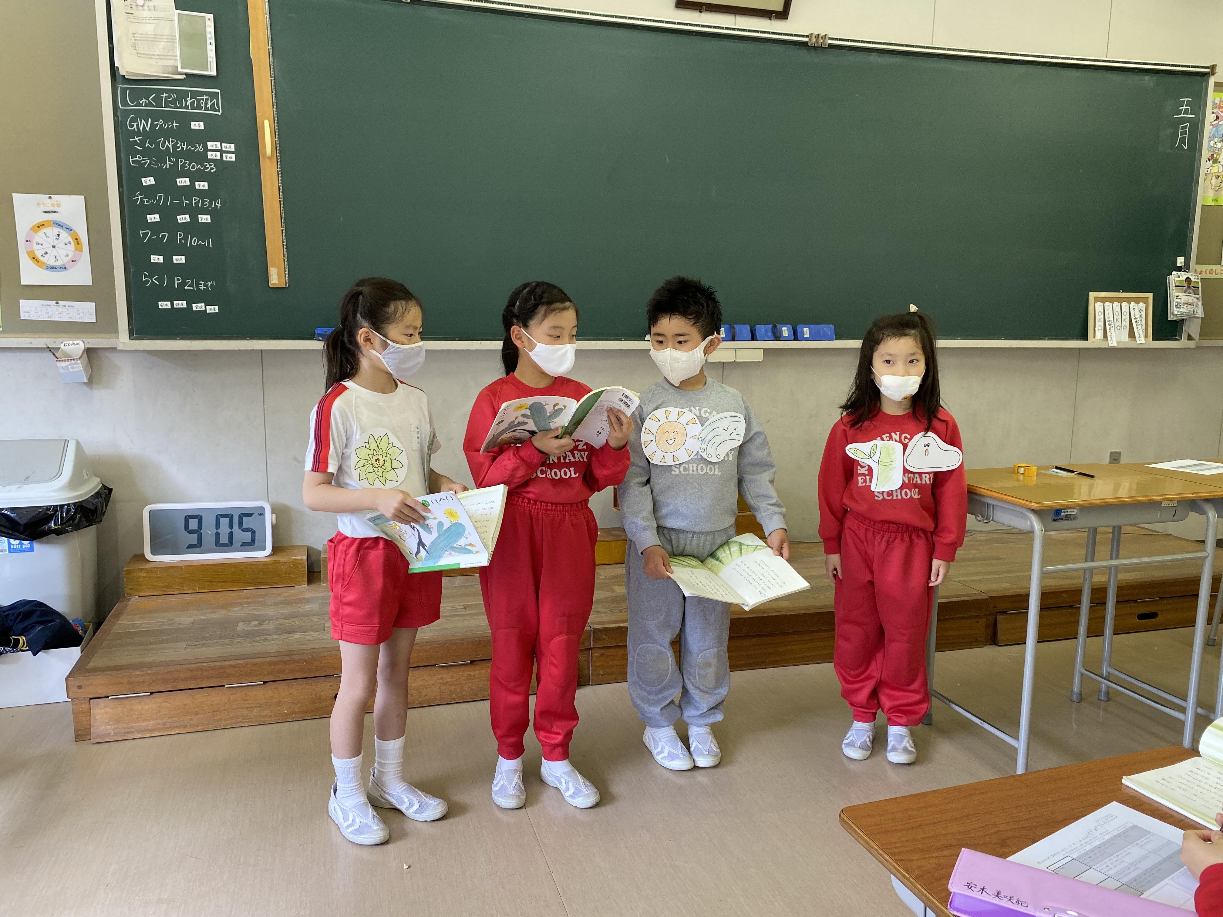 国語科では、4月から練習をがんばっていた「ふきのとう」の音読発表会をしました。自分の役になり切って上手に読めていました。