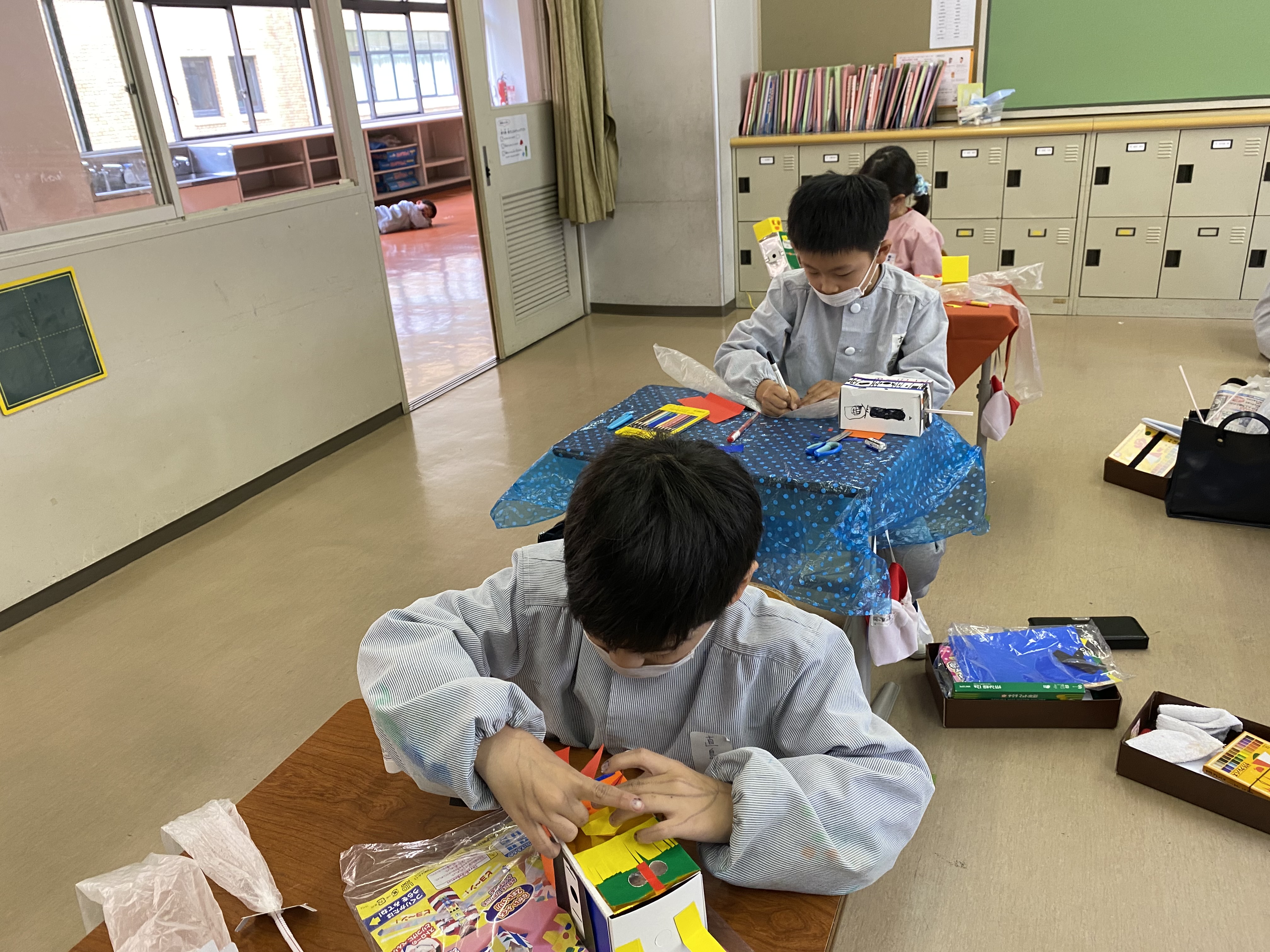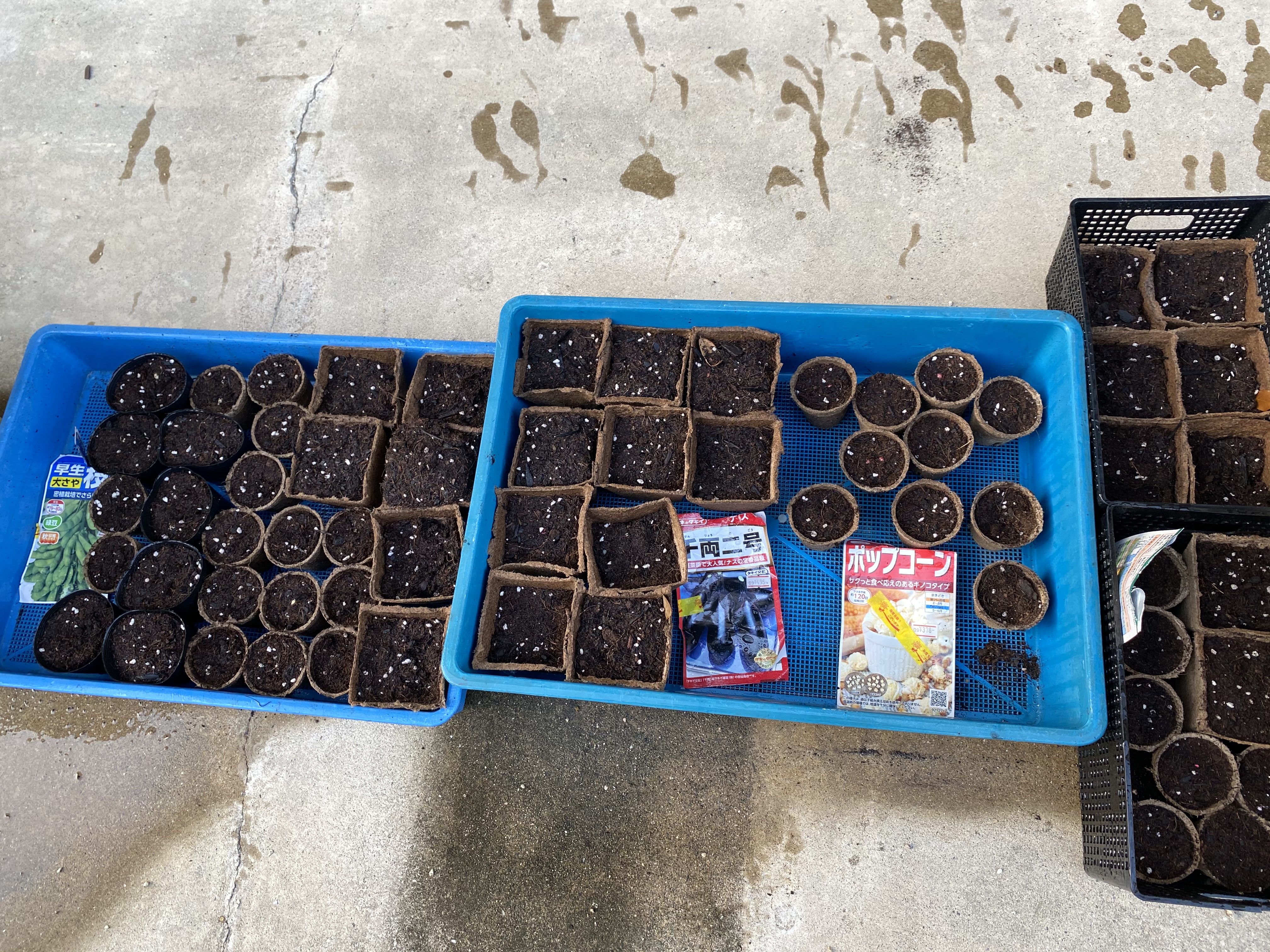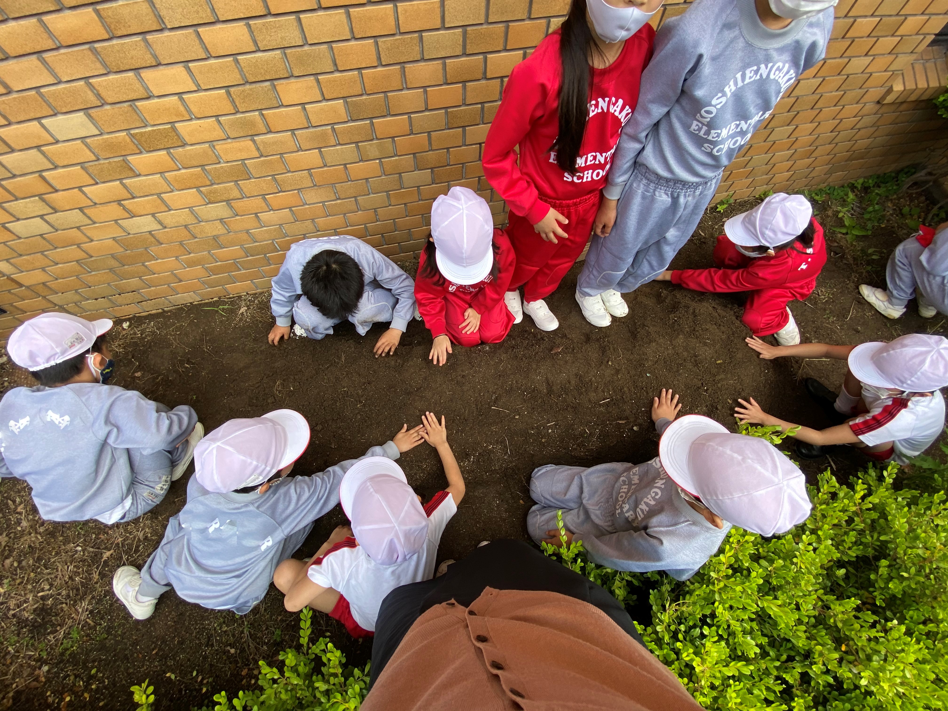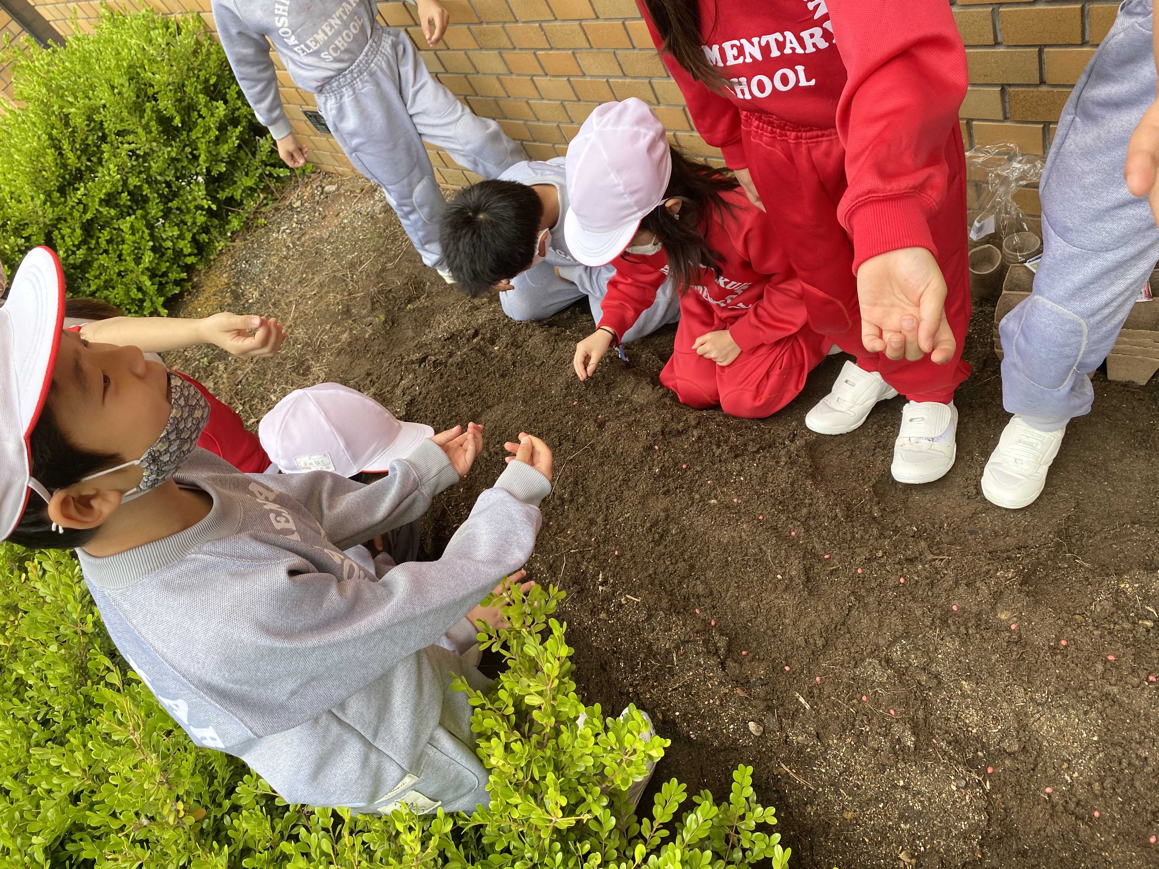 生活科では、野菜の種まきをしました。きゅうり、なす、えだまめ、ポップコーンの4種類を植えました。これからみんなでお世話をしておいしい野菜を育てます。
