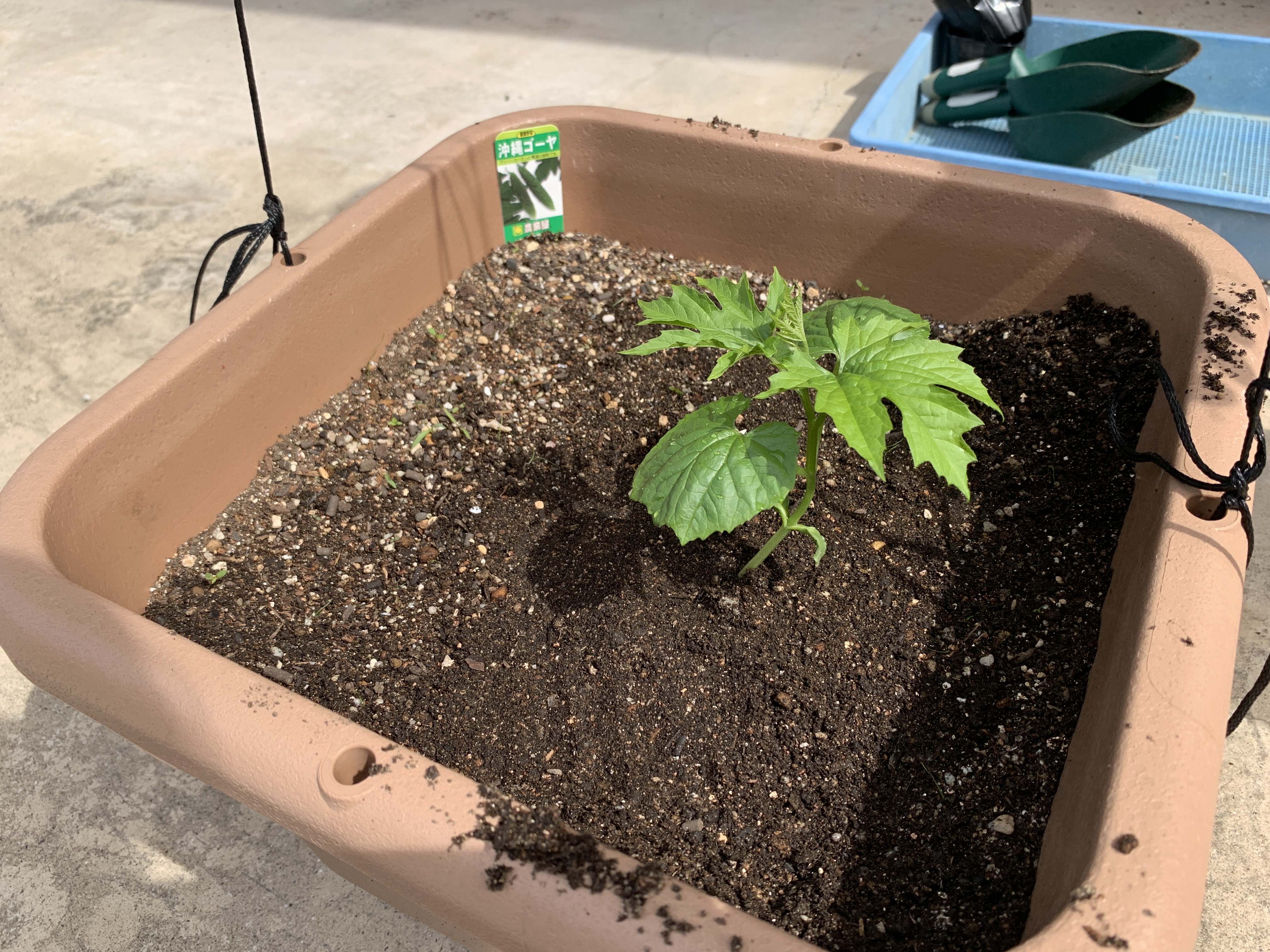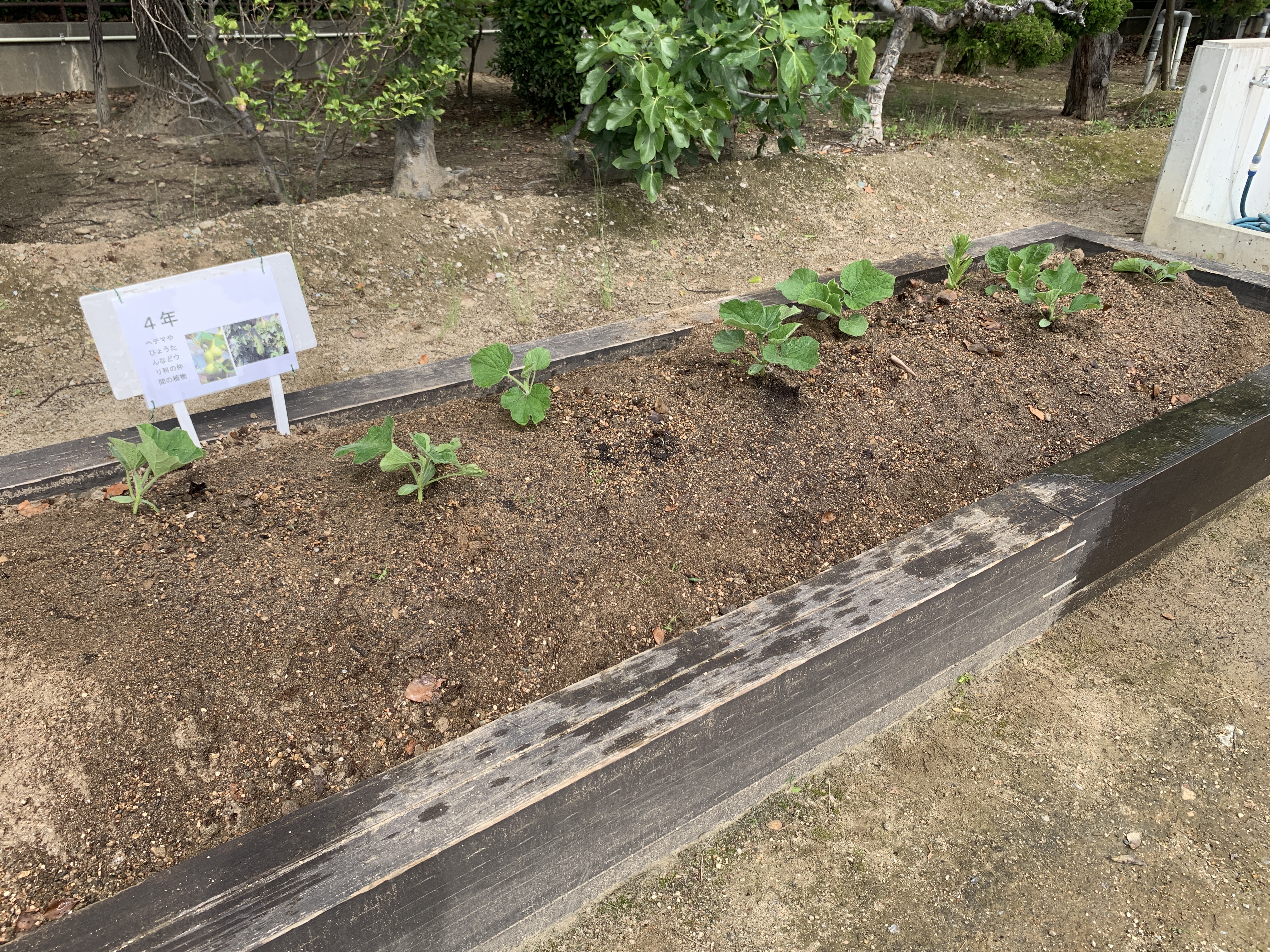 ひょうたん・へちま・ゴーヤの苗の植え付けをしました。