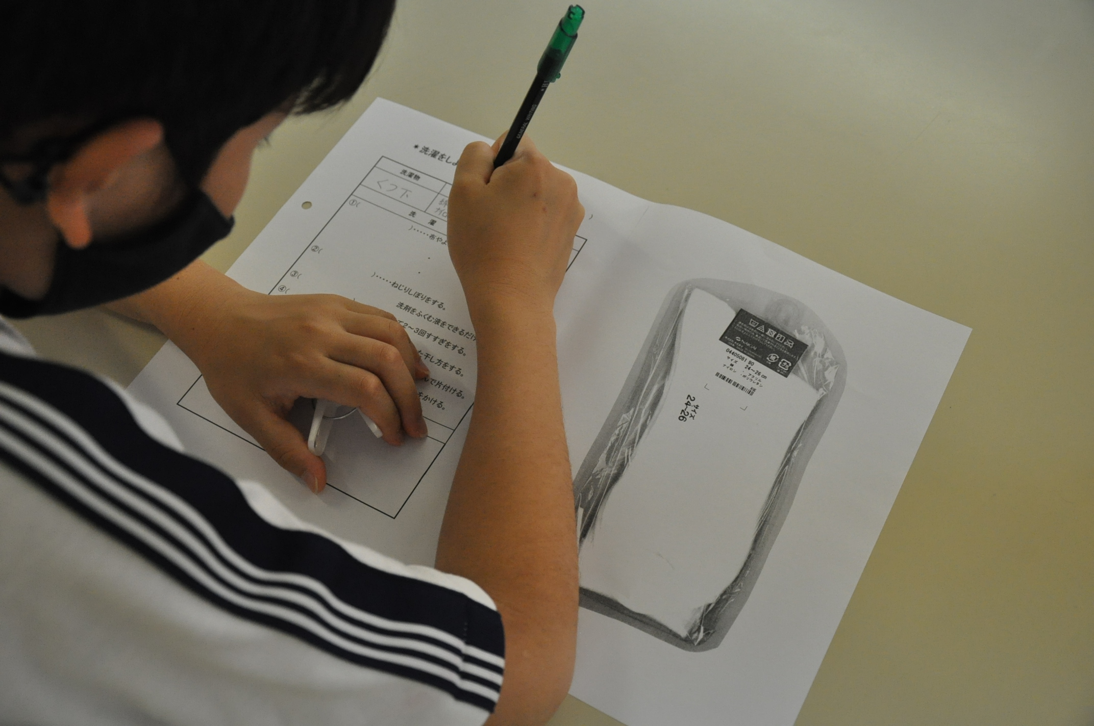 家庭科の授業で洗濯について学びました。