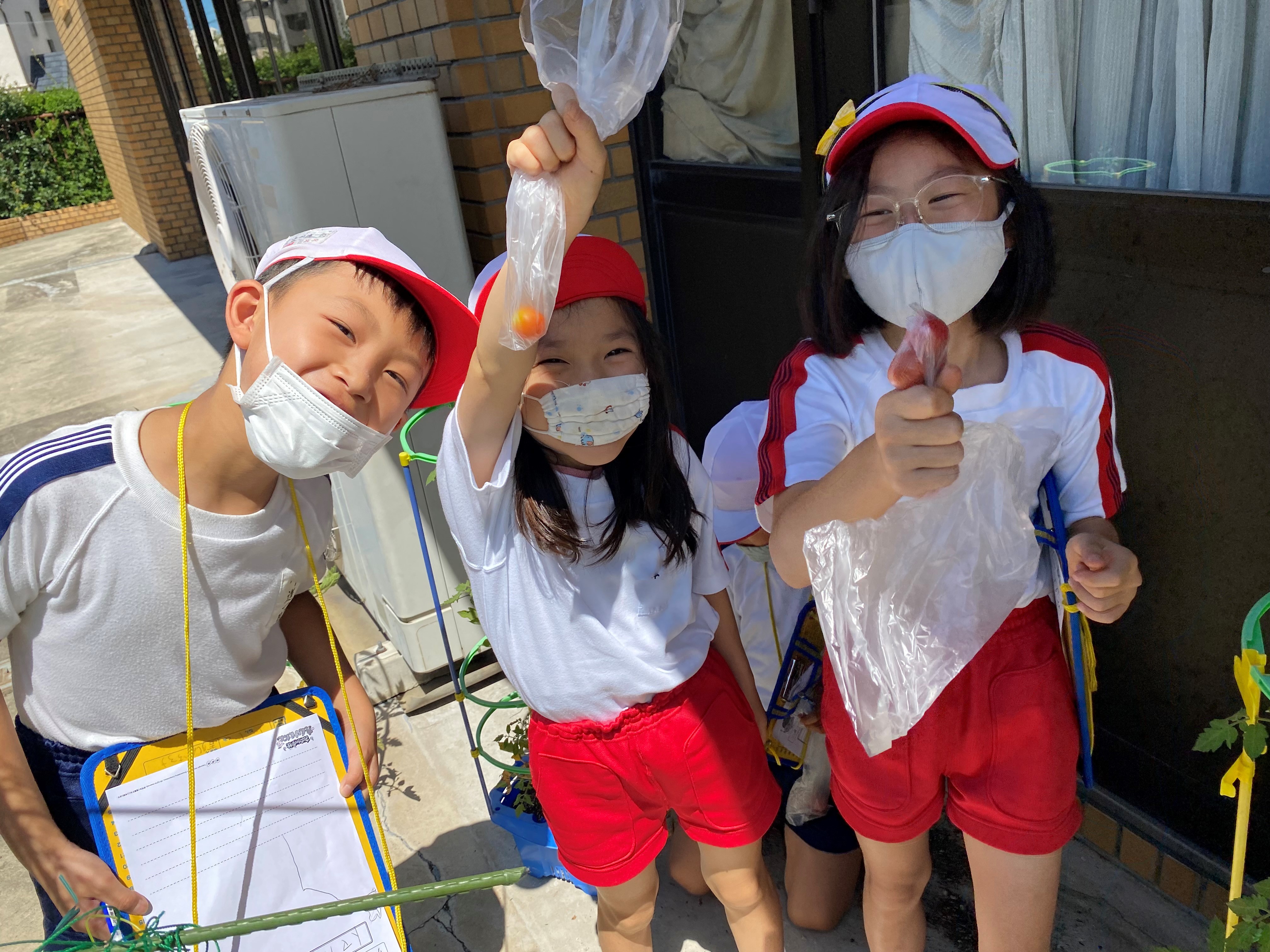 2年生 生活科「ミニトマトの収穫」 [投稿日:2021年07月20日] 生活科で育てたミニトマトが、収穫の時期を迎えました。子どもたちが愛情いっぱいに育てたトマトは、とっても甘くておいしかったようです。ナスやキュウリ、枝豆も収穫目前です。 一覧へ戻る