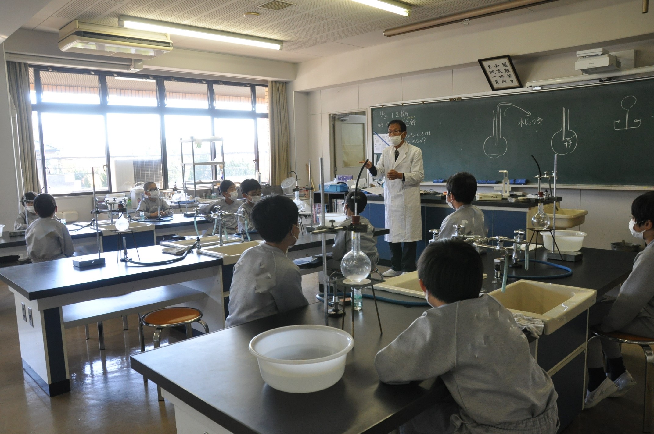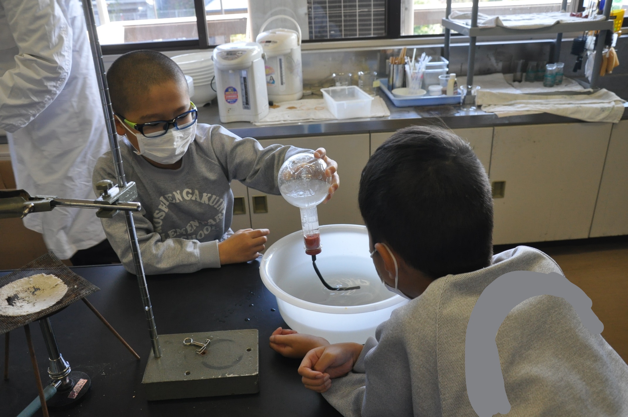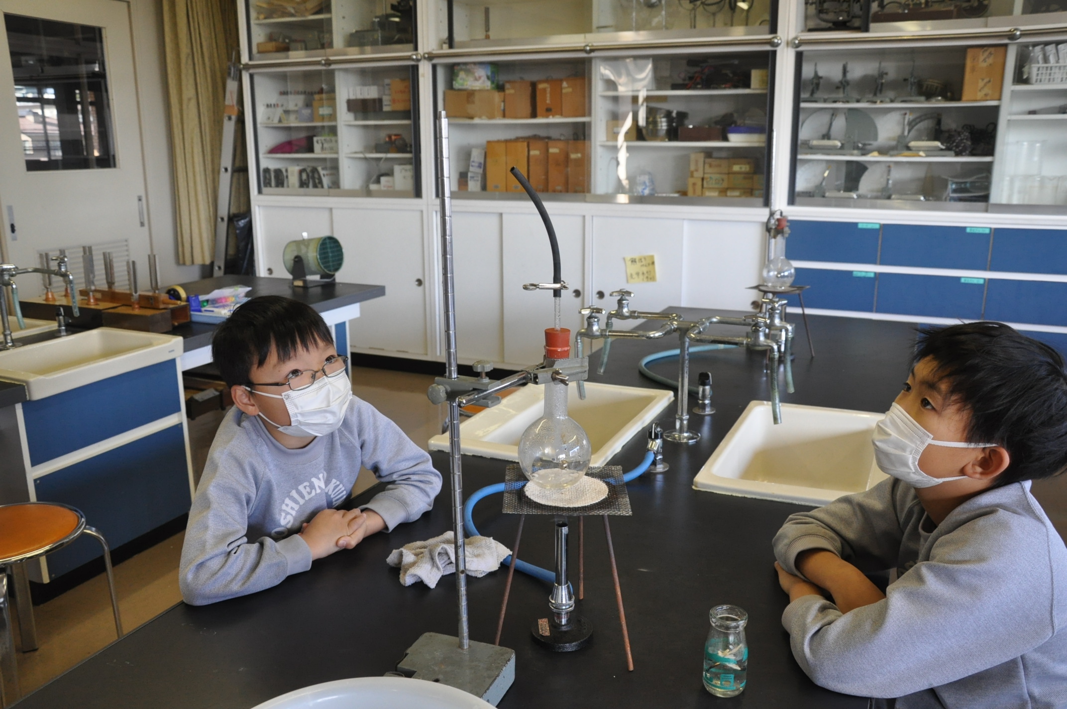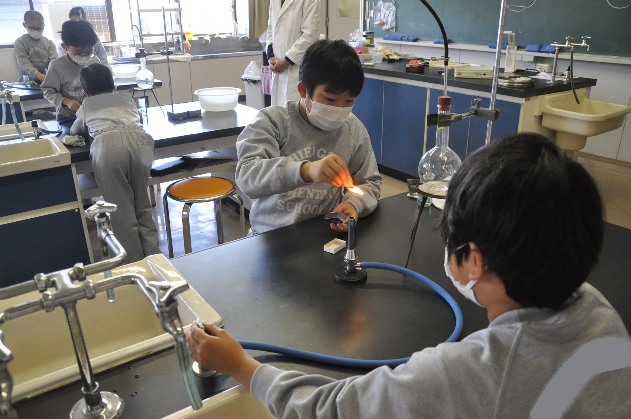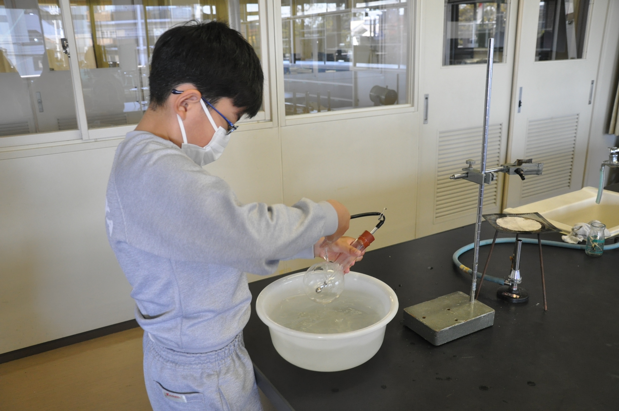 今までにマッチで火をつける練習もしてきたので、フラスコの中を真空状態にする作業も手際よく行えました。
