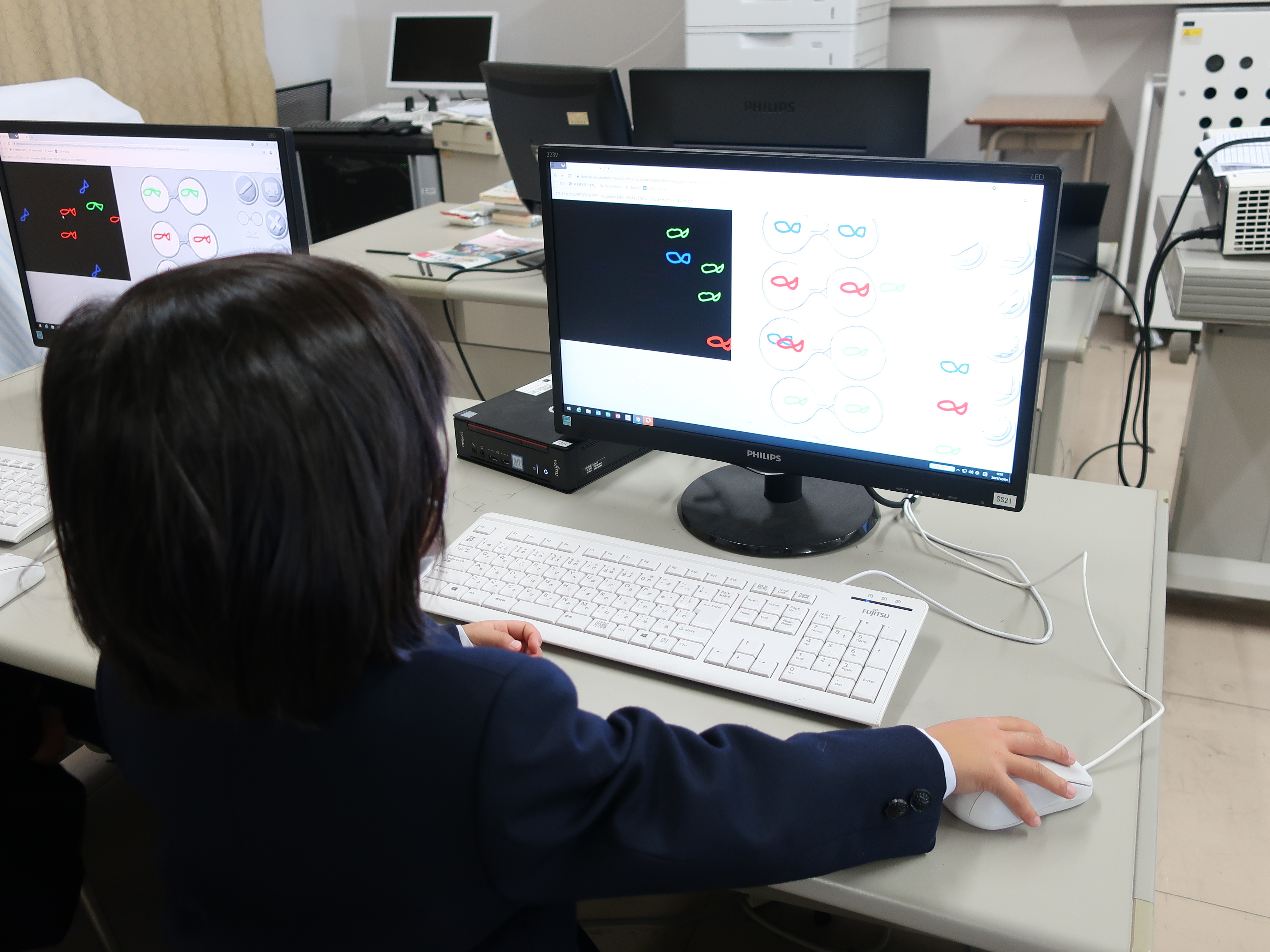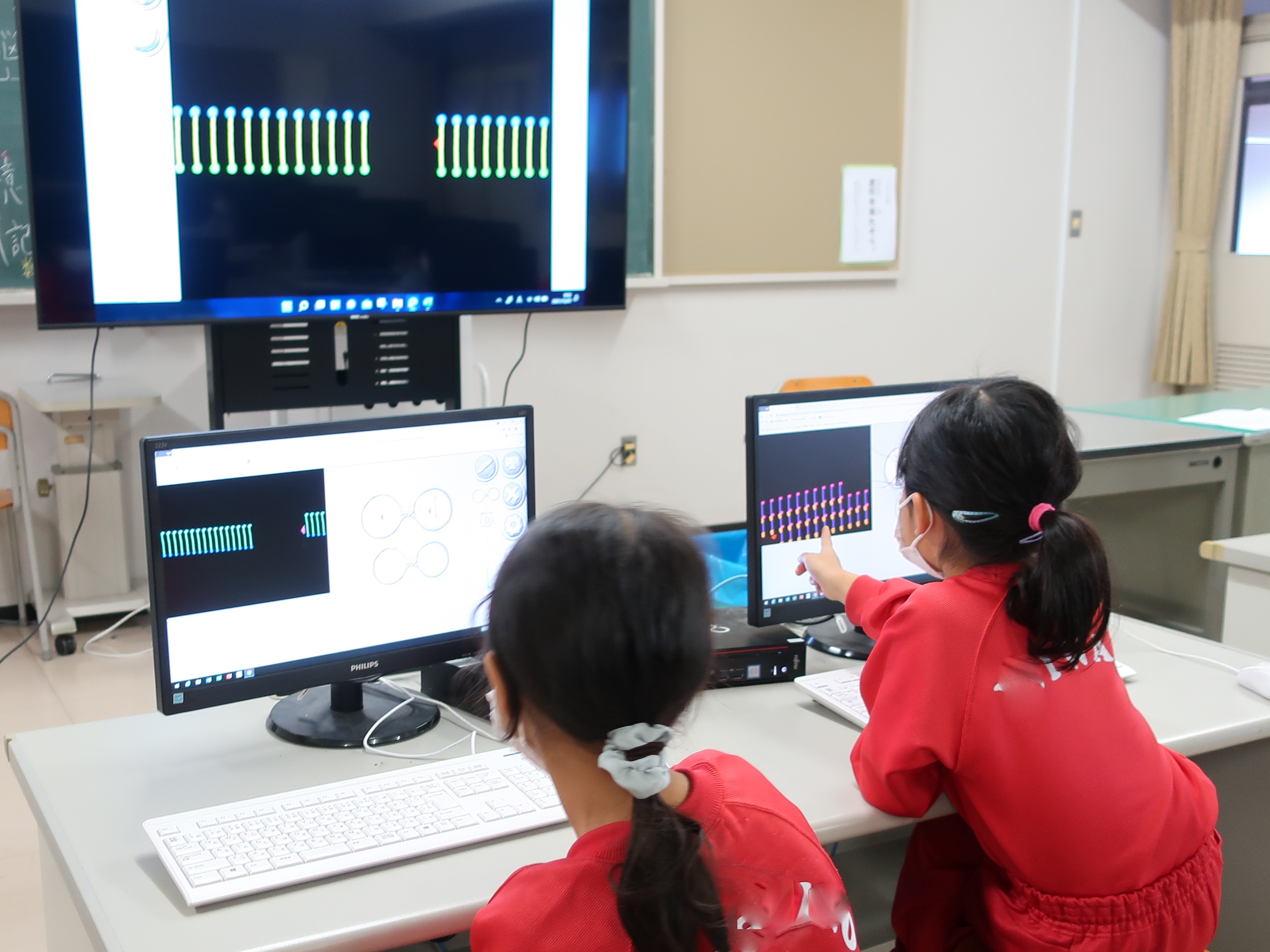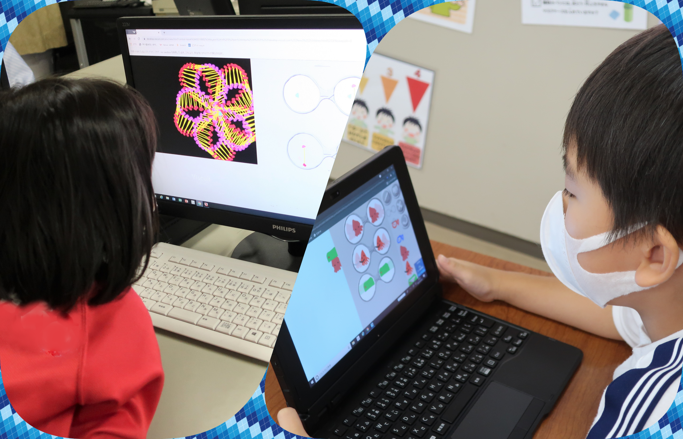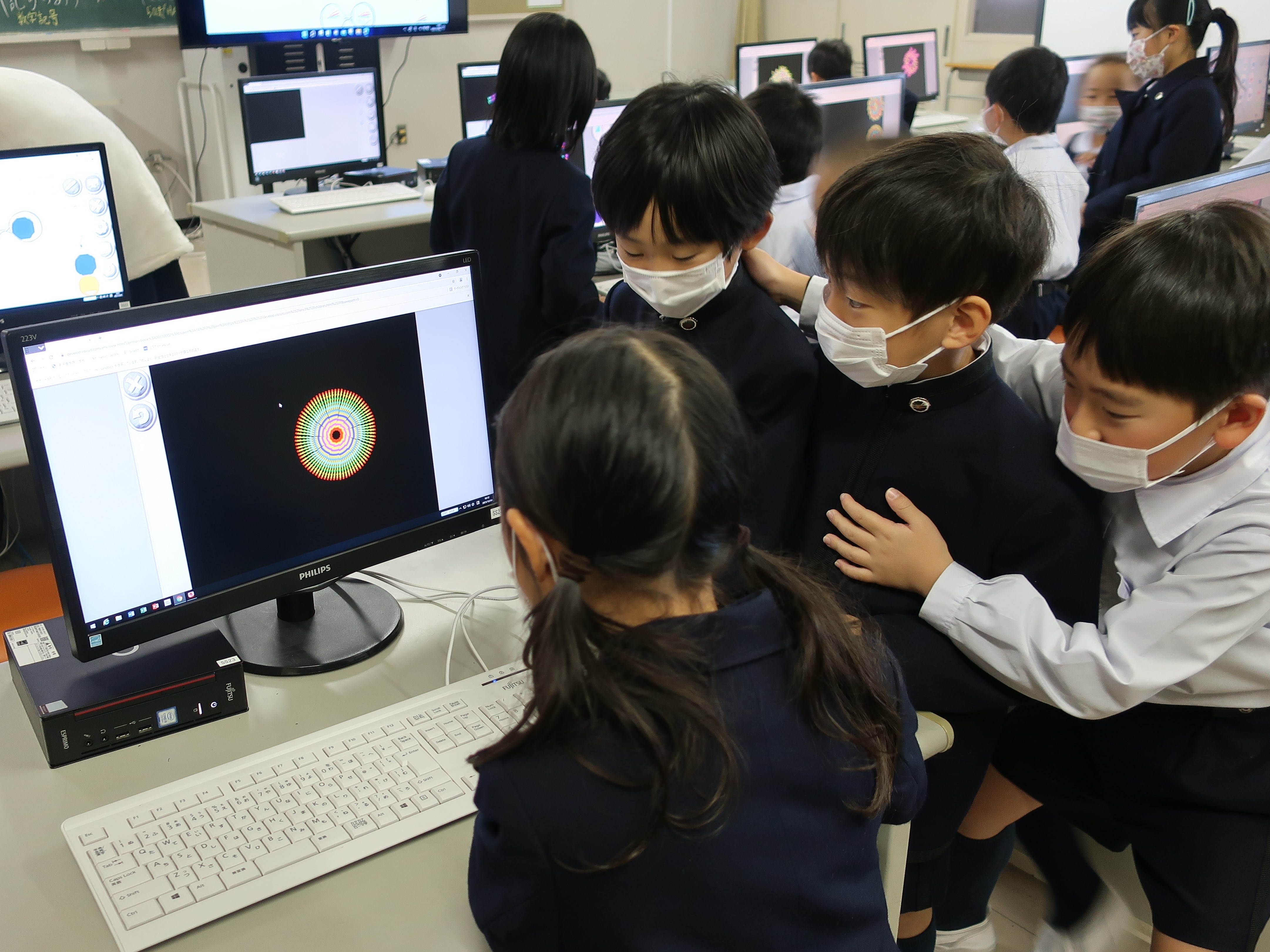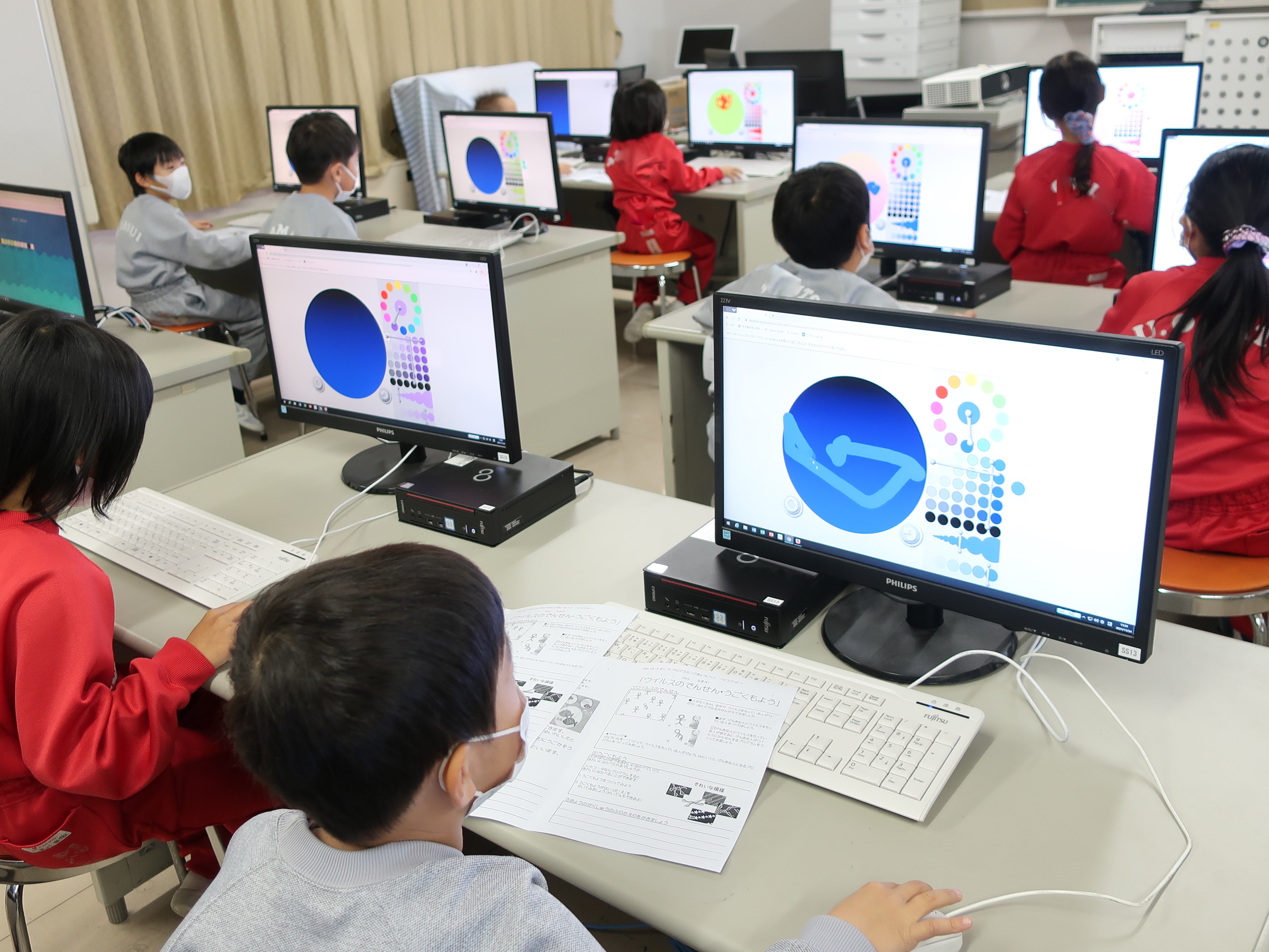 1年生では、タブレットやパソコンを使用してプログラミングの学習を行いました。