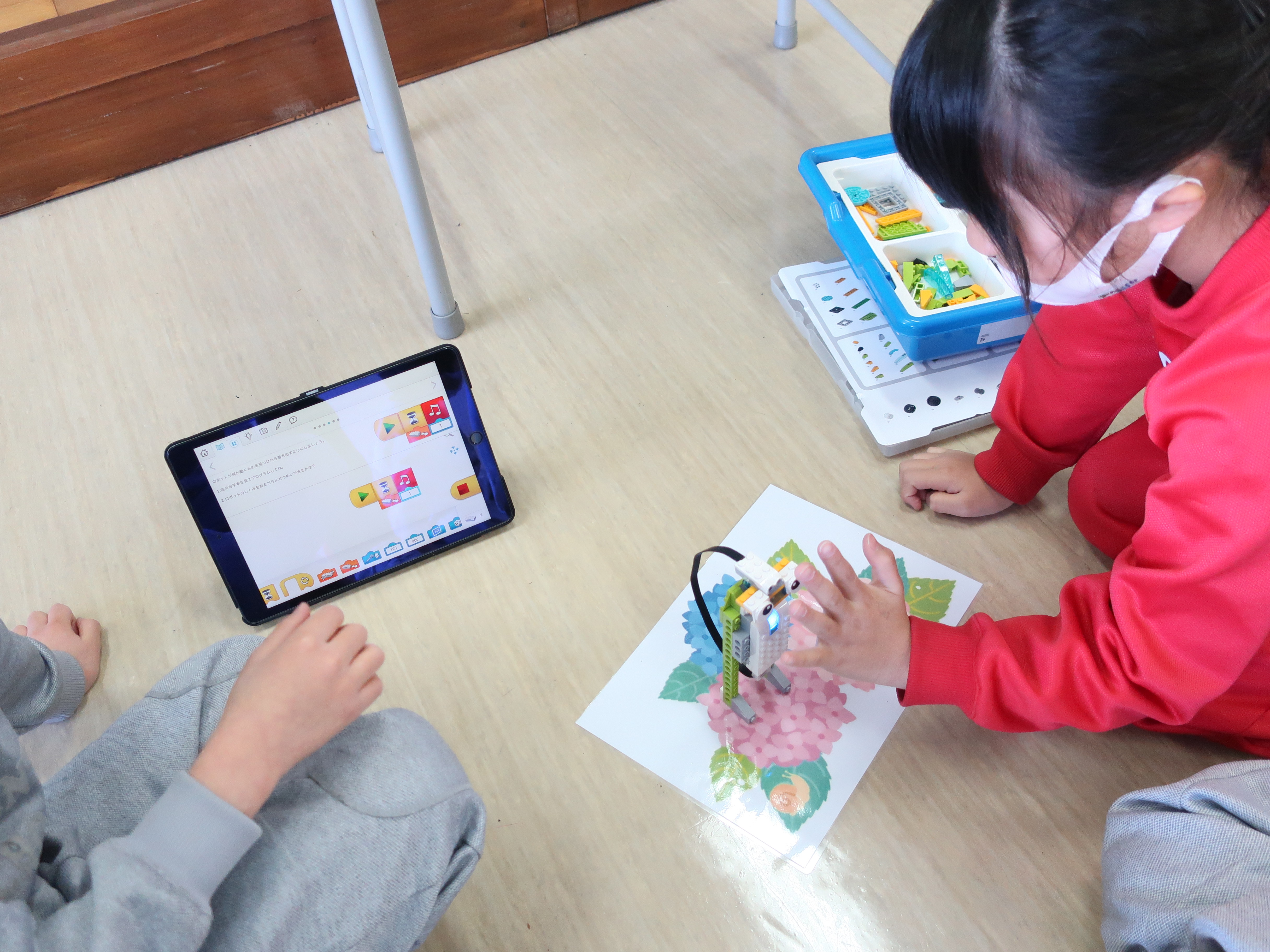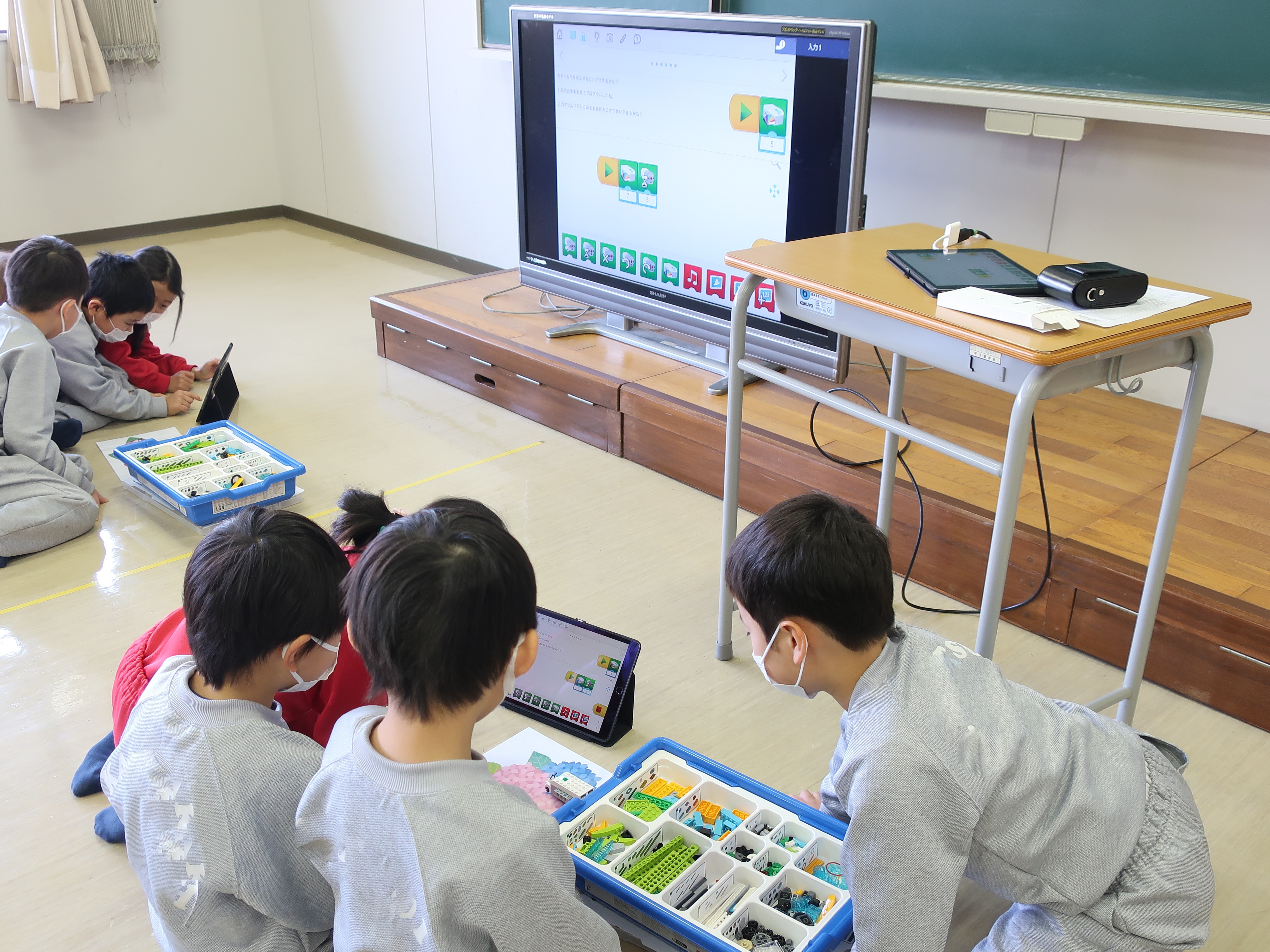1年生では、プログラミングの学習をレゴブロックを使用して行いました。