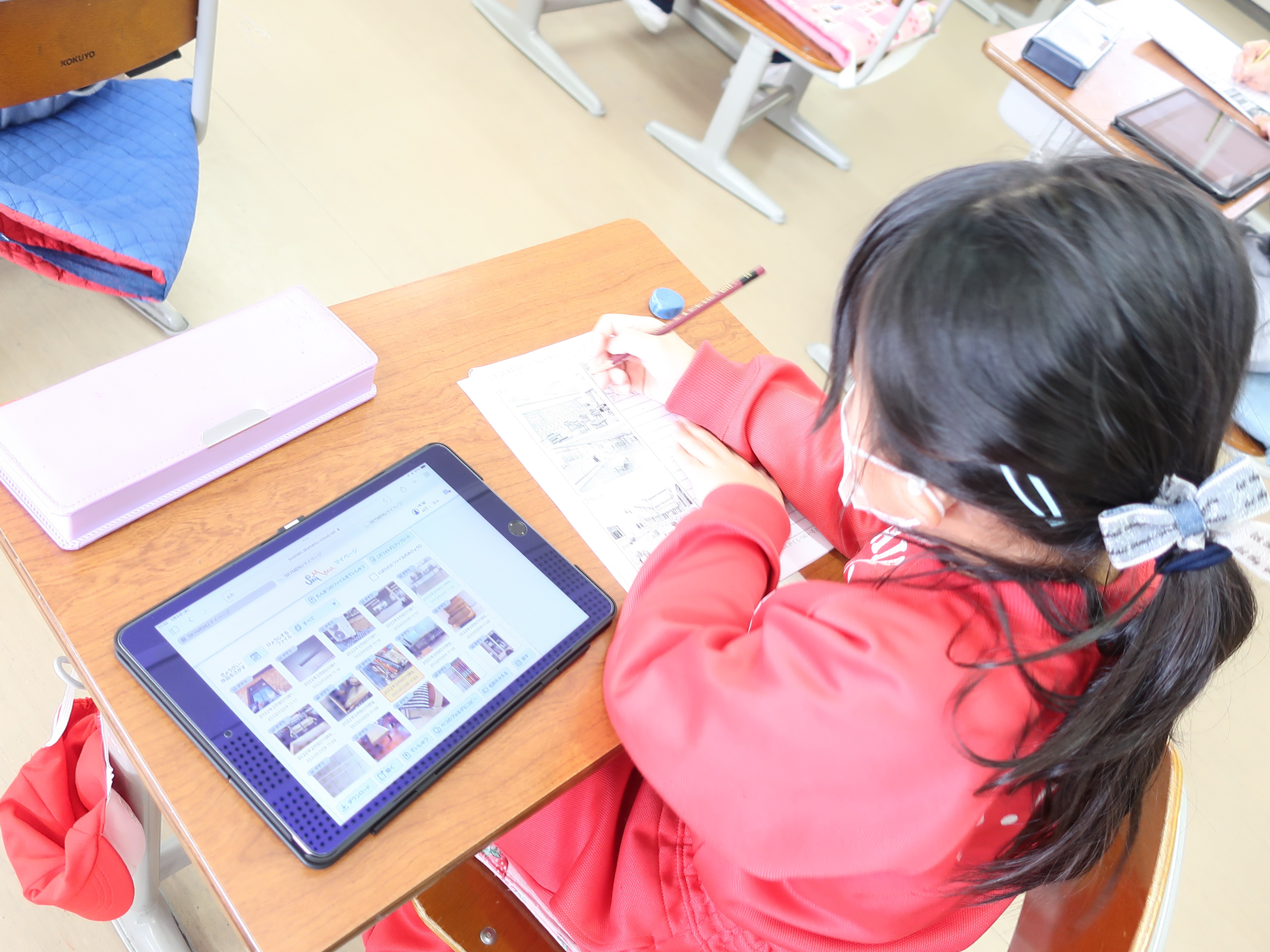 撮影した写真を見ながら紙にまとめる