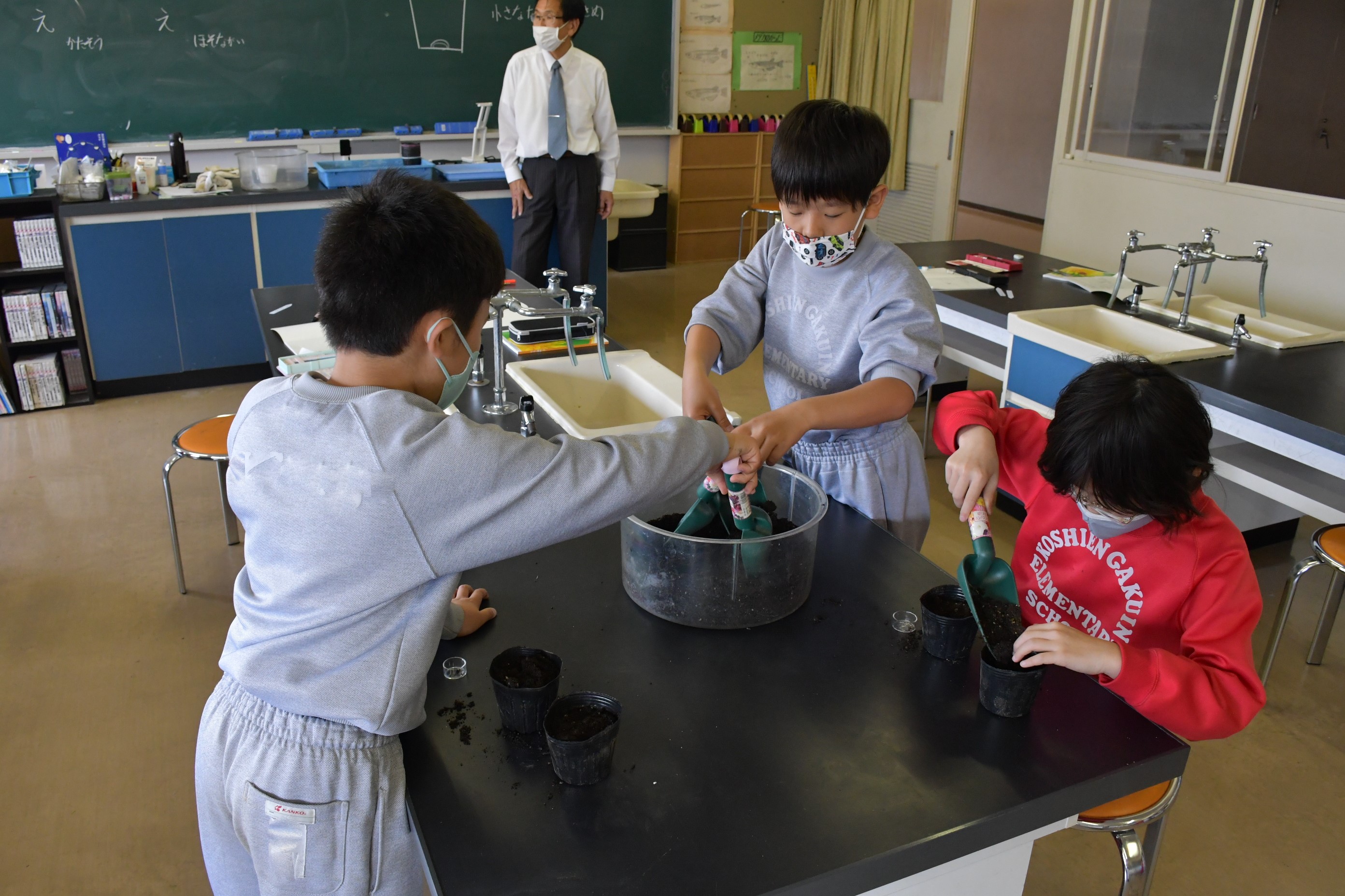 3年生 理科 「たねをまこう」 [投稿日:2022年04月14日] マリーゴールドとホウセンカの種の観察を行いました。定規で種の長さを測ったり、においを嗅いだりと自分で考えて興味をもって活動に取り組みました。その後に種の植え付けを行いました。クラス全員でお世話をしていきます。 一覧へ戻る