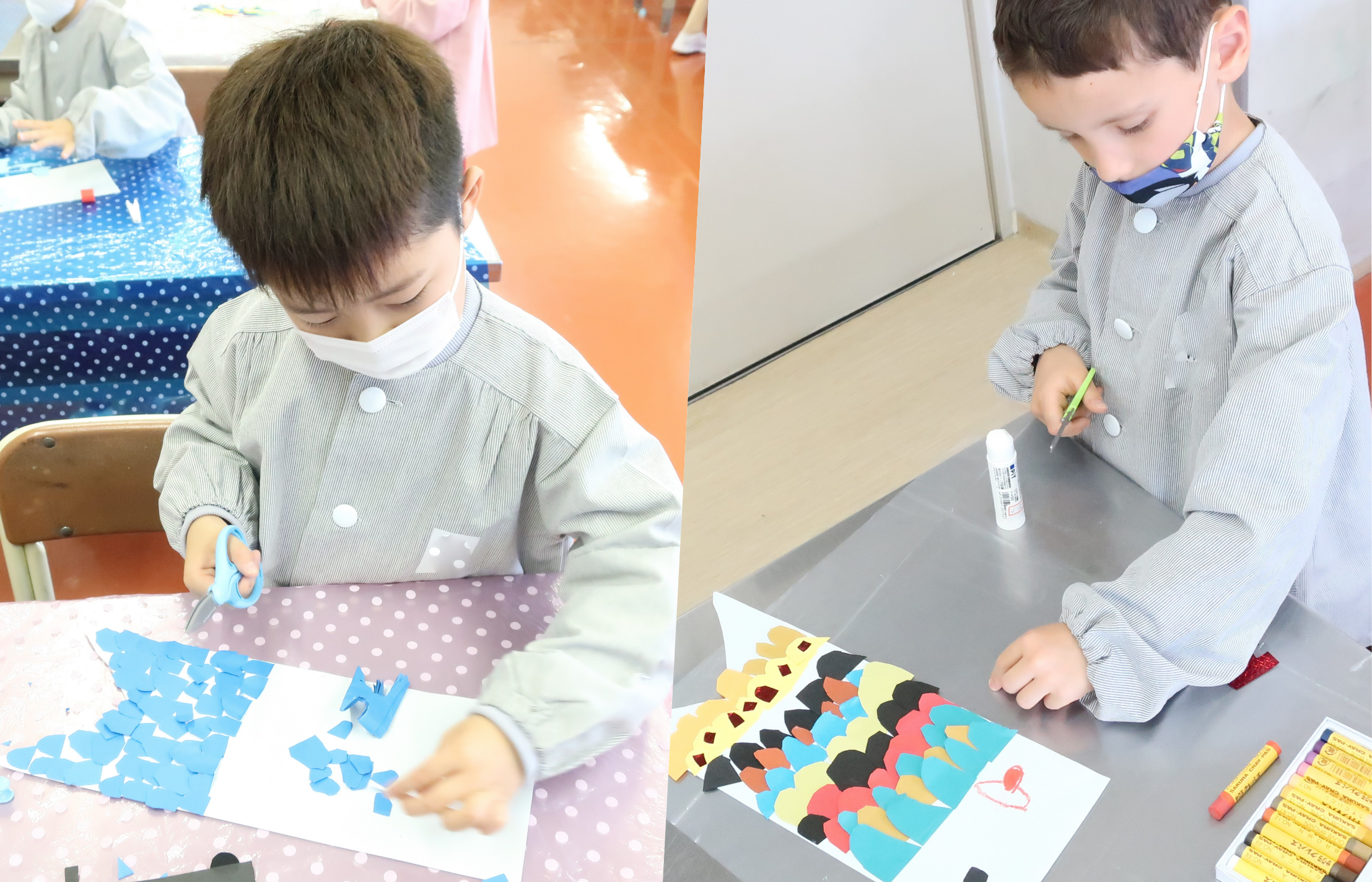 こいのぼり作りでは、みんな鱗の形や貼り方を工夫し、どの作品も個性的で趣向を凝らした作品になりました。