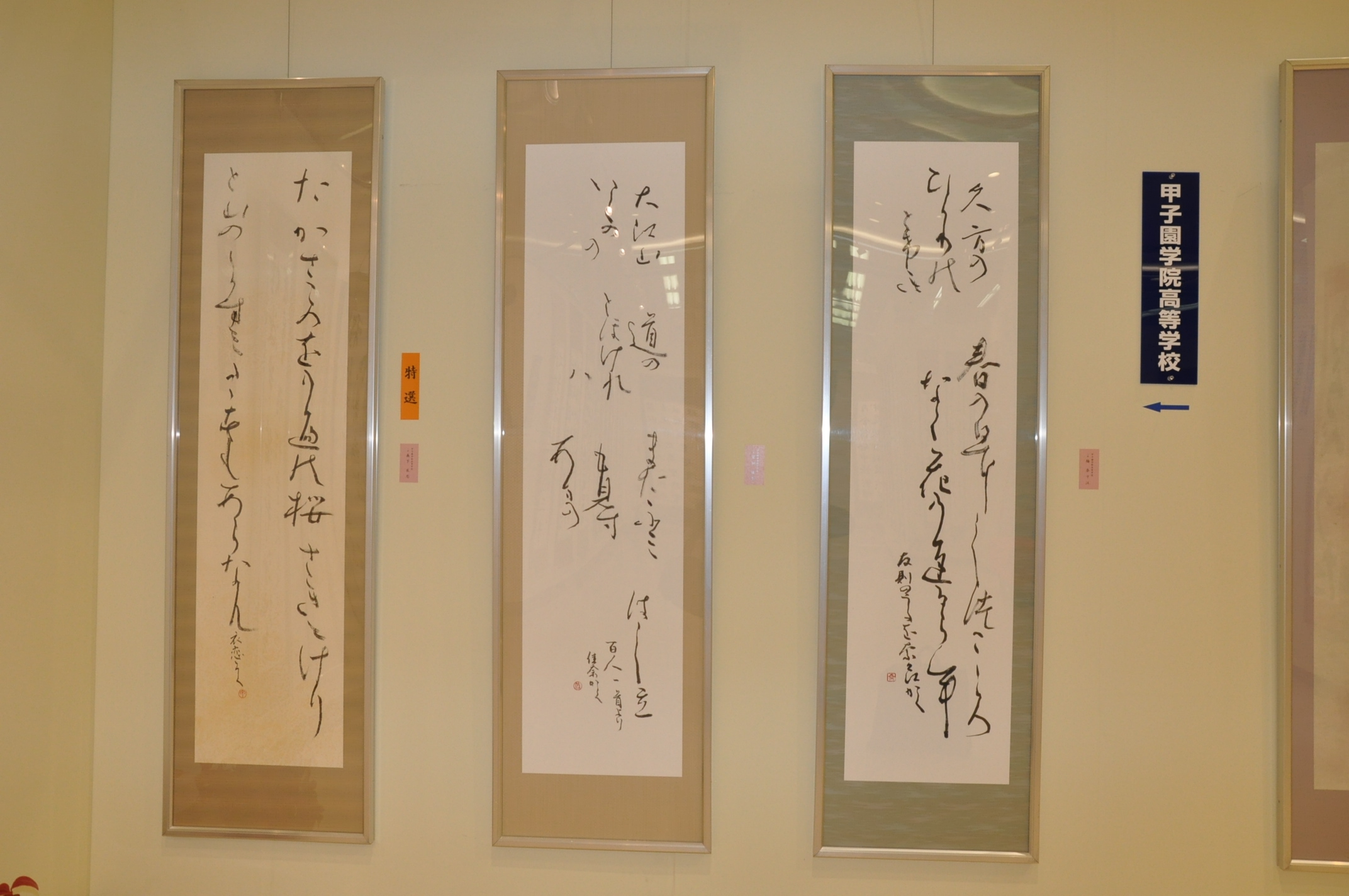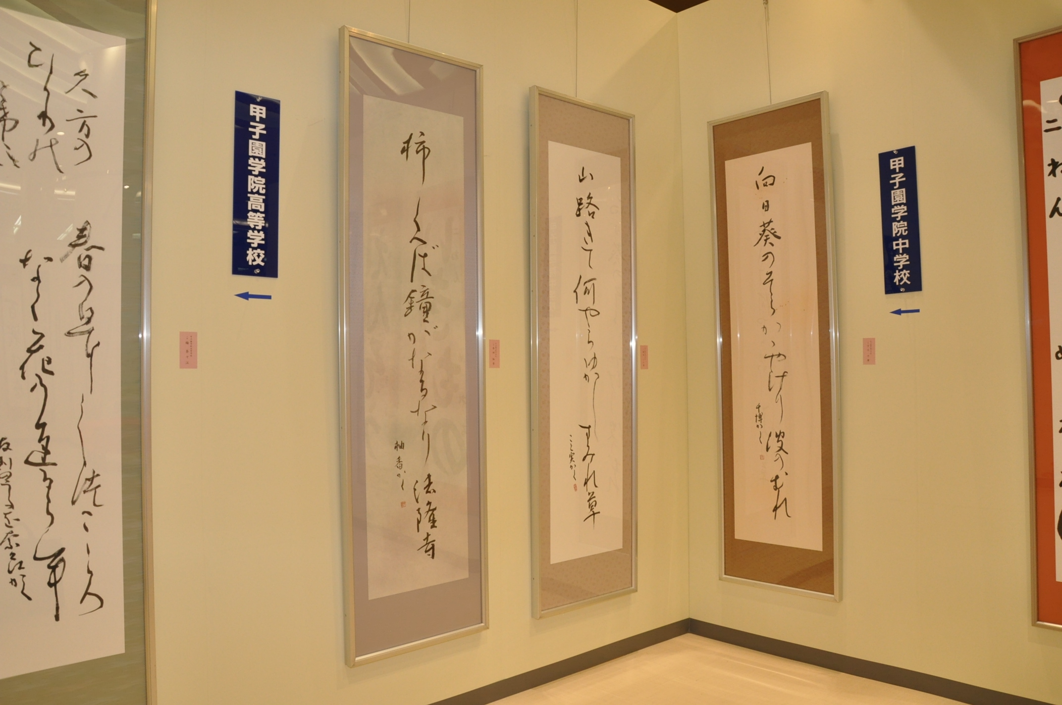 平成29年11月16日(木)~21日(火)まで,「私学の書展」が神戸三宮のさんちかホールで開催されています。本校からは2年生3名が出品し,うち1名が特選(一休園賞)を受賞しました。また,本学院からは他にも高校生1名が特選(墨運賞)をそれぞれ受賞しました。