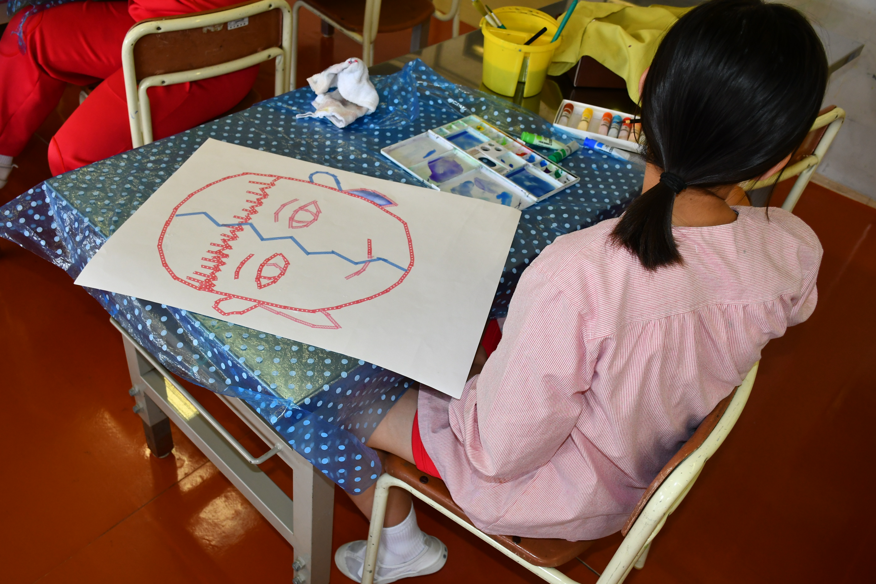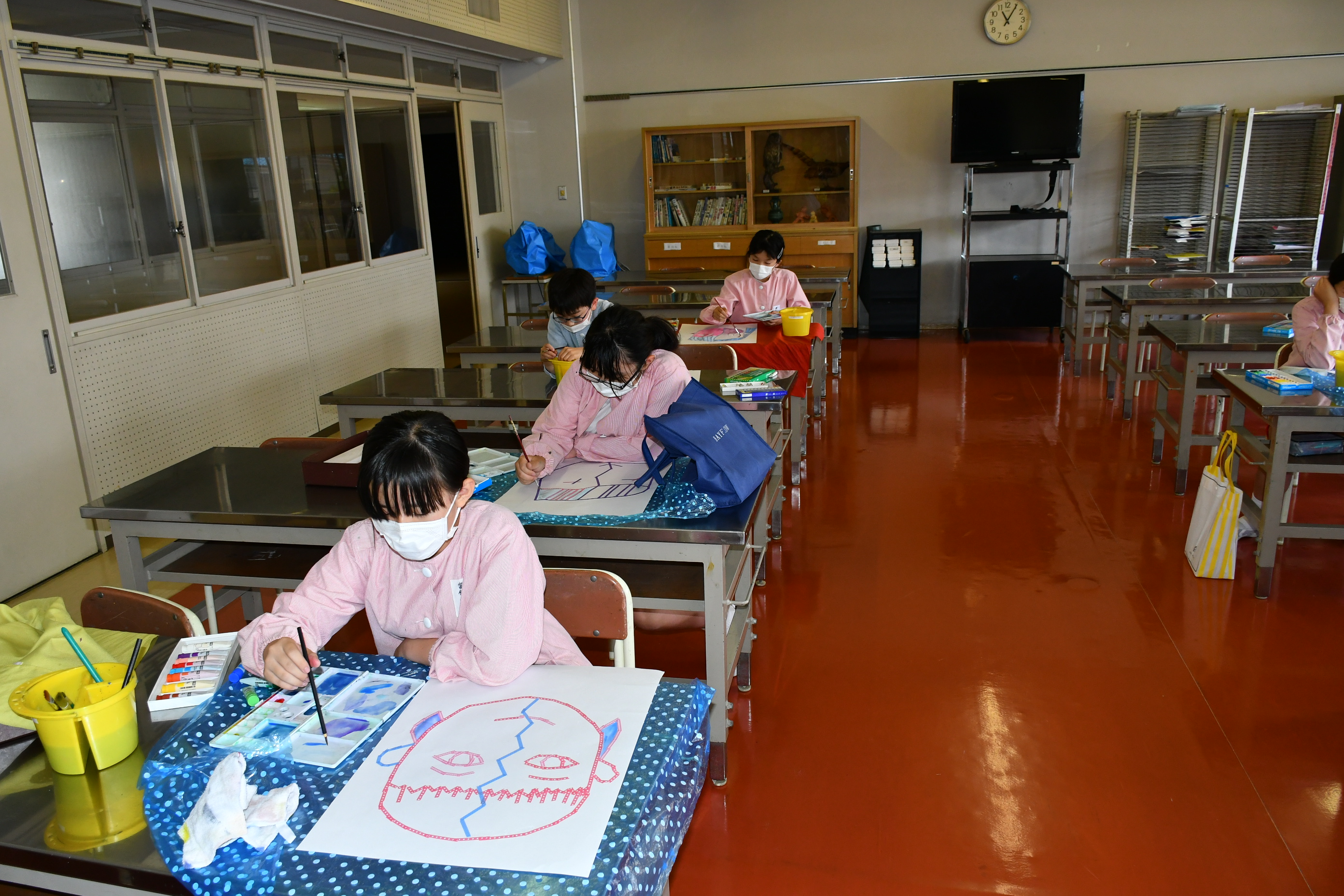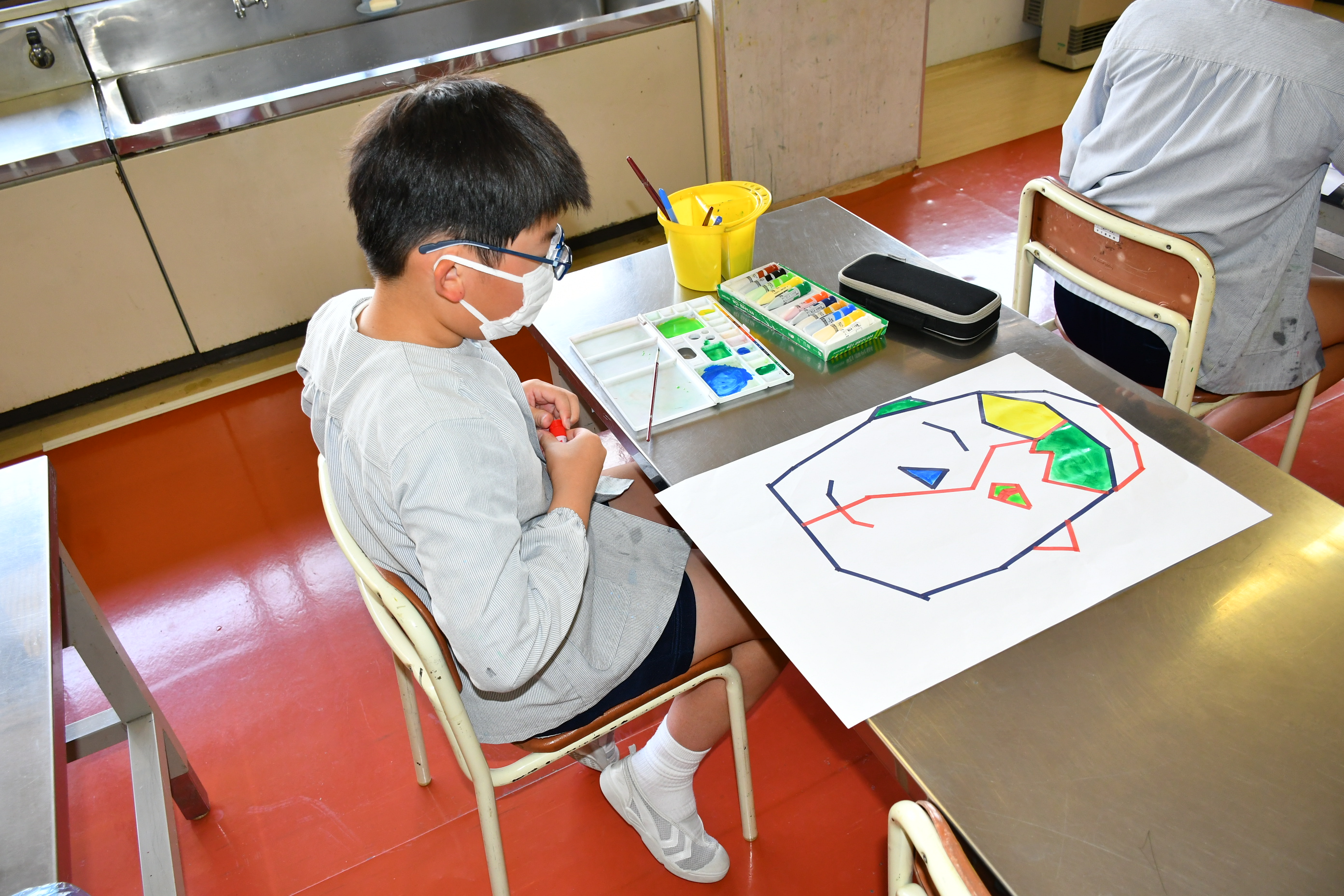 6年 図工「2つの顔をもつ人物」 [投稿日:2022年05月27日] 6年生は図工で「2つの顔をもつ人物」という作品に挑戦しました。白画用紙にマスキングテープで顔を作り、おもいおもいに色をぬって仕上げました。集中力を発揮して個性的な作品を作ることができました。 一覧へ戻る