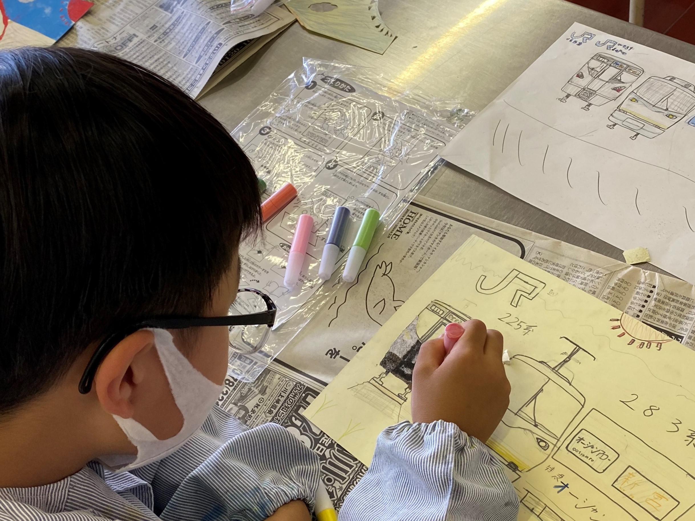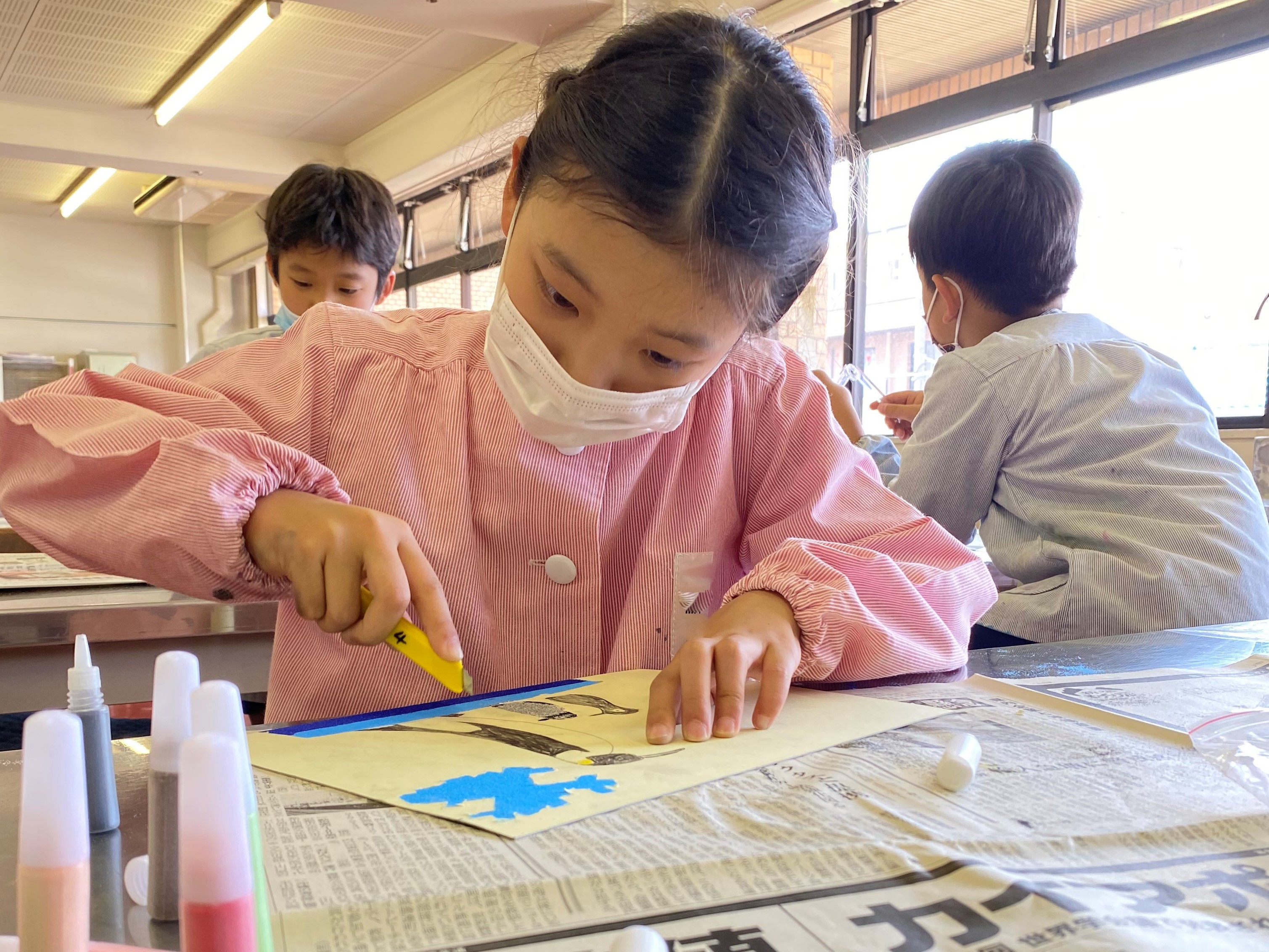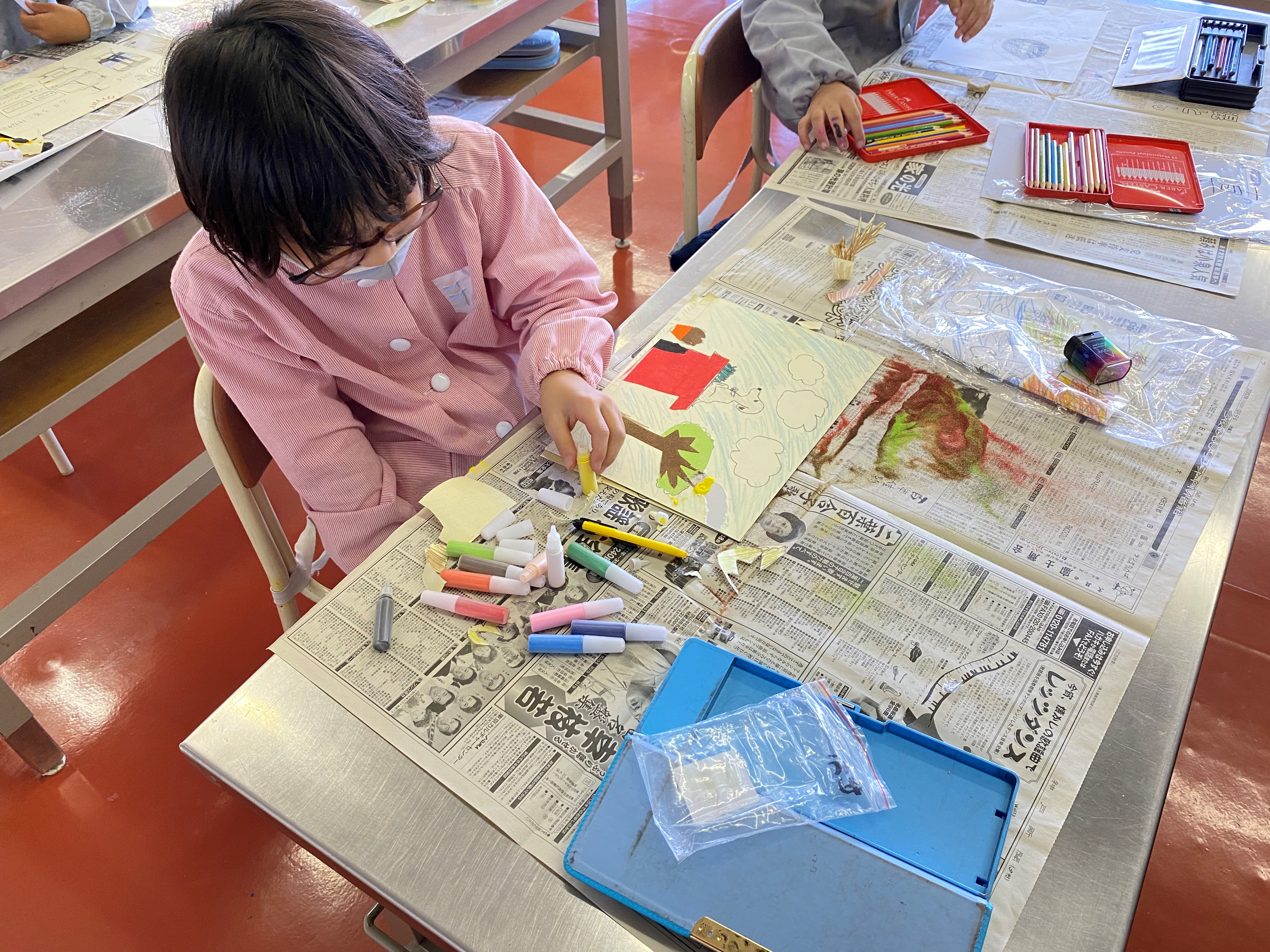 3年生 図工 「砂絵」 [投稿日:2022年06月01日] 図工で「砂絵」に挑戦しました。色のついた砂を使って好きなキャラクターや動物などを描きました。ザラザラな感触に面白さを感じていました。 一覧へ戻る