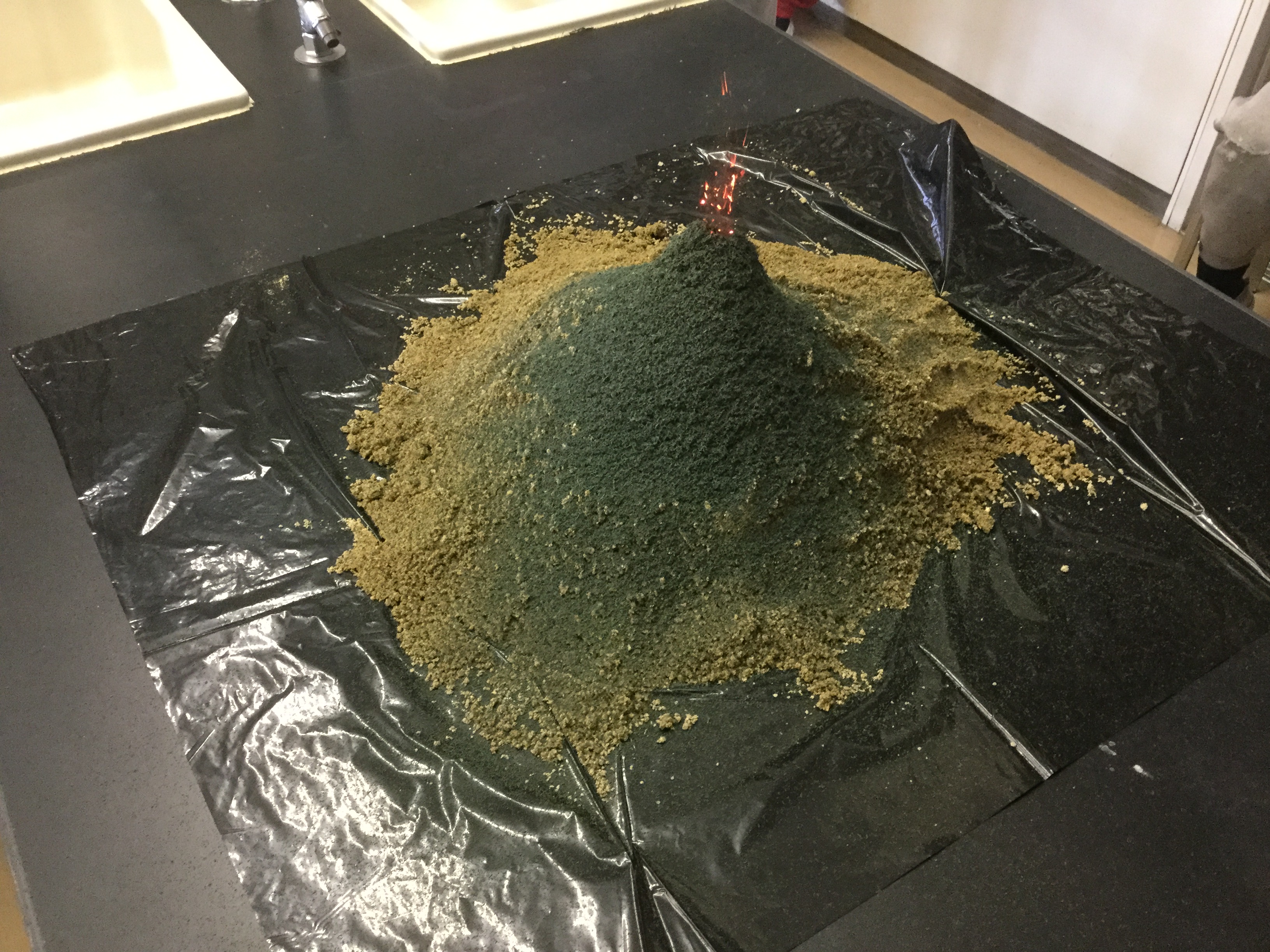 火山の爆発の様子を実験で確かめました。