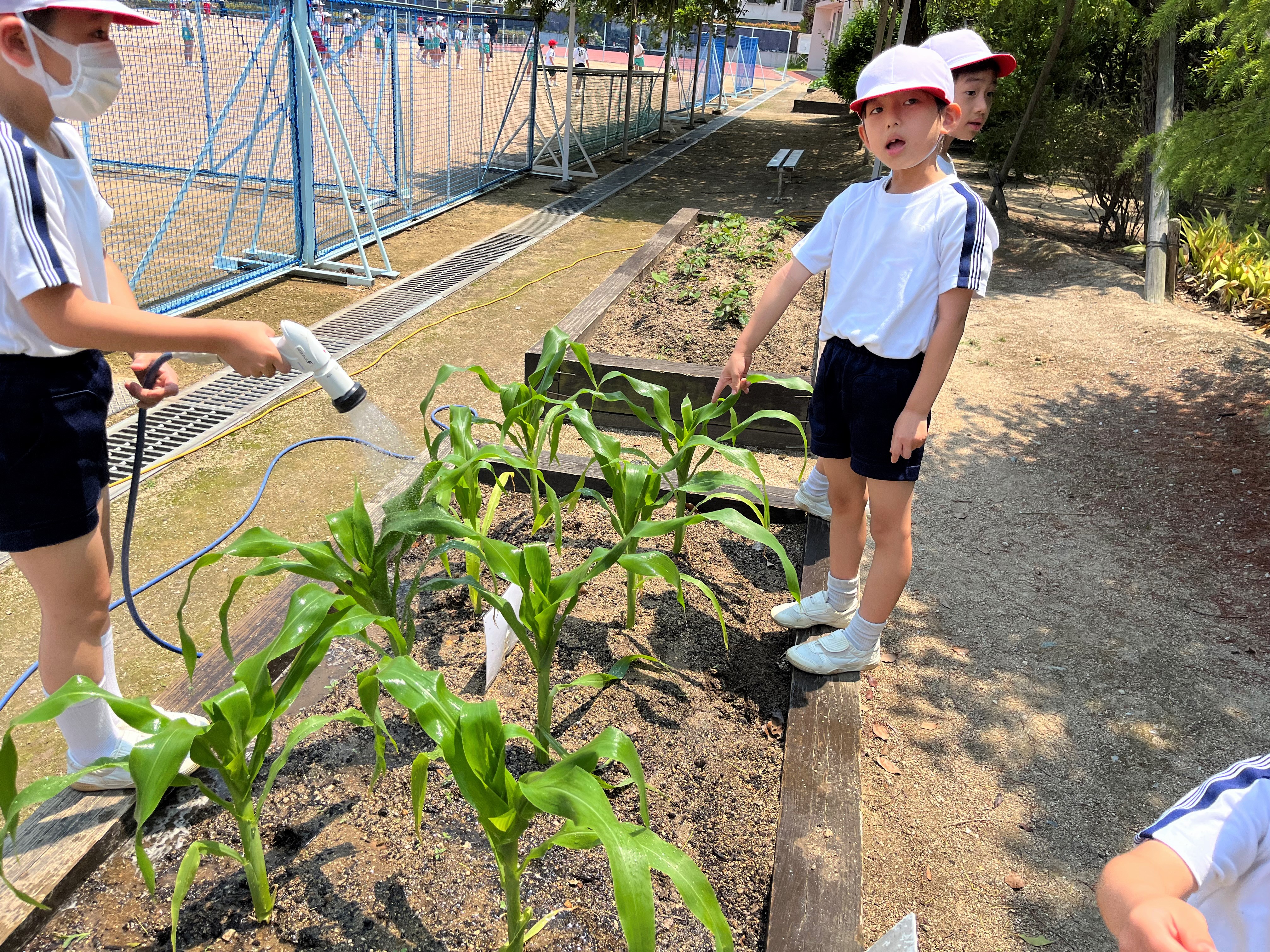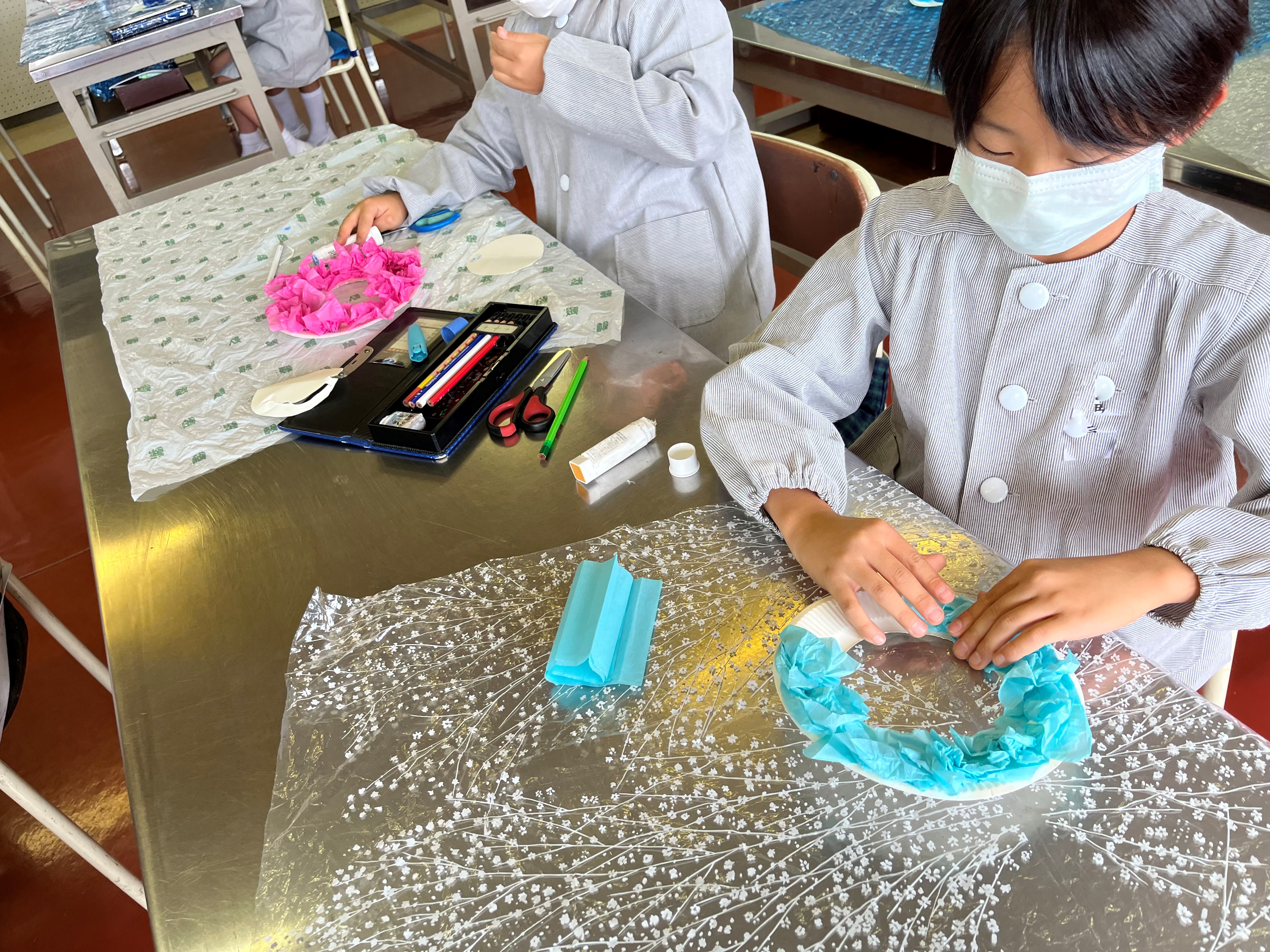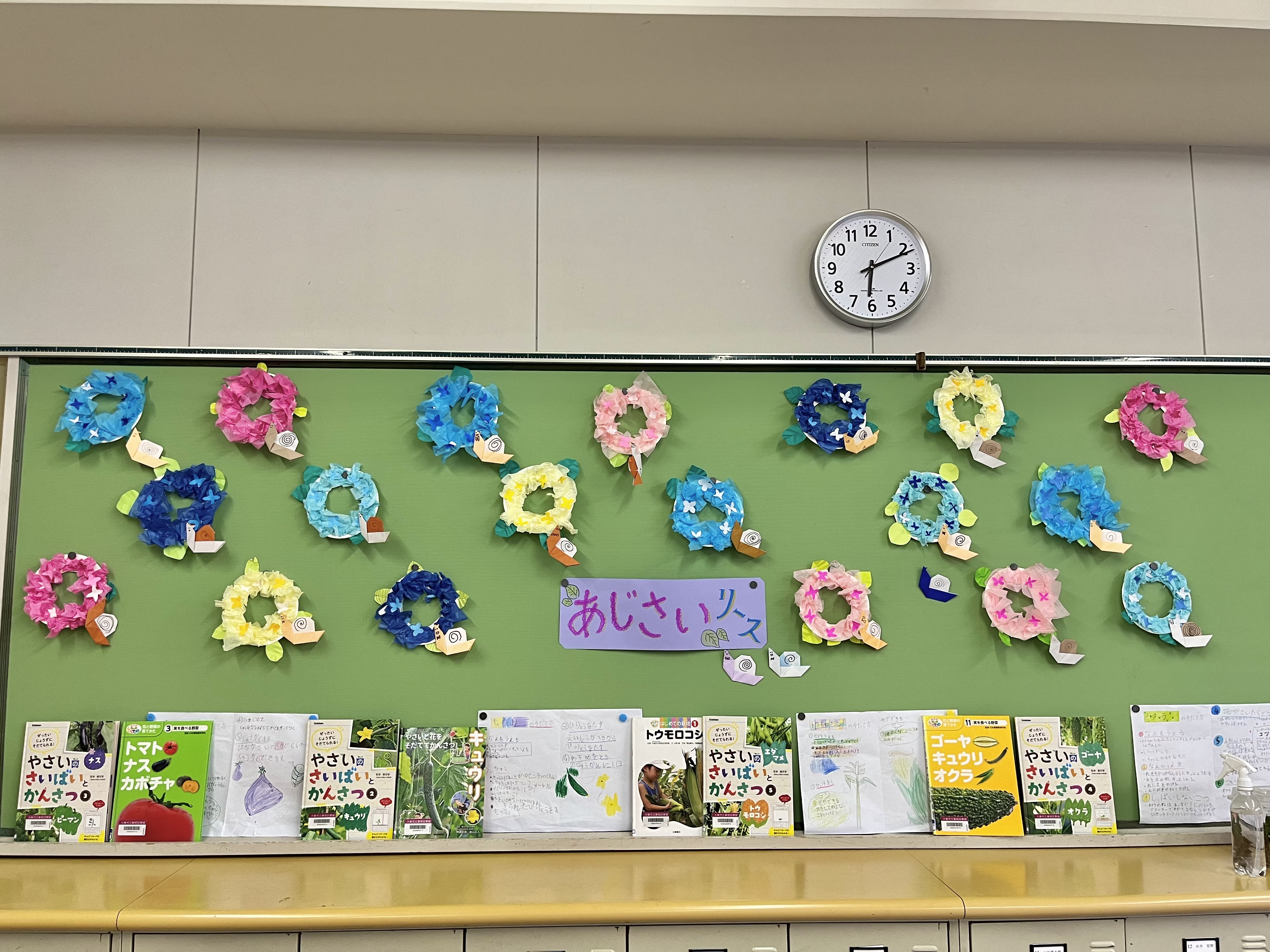 じめじめした暑さにも負けず、6月も元気いっぱい活動しました。図工では、6月の代表アジサイの花を作ったり、折り紙でかたつむりを折りました。また、本物のカタツムリもクラスの一員となりました。野菜に、生き物に、愛情をこめてお世話をするのが得意な2年生です。