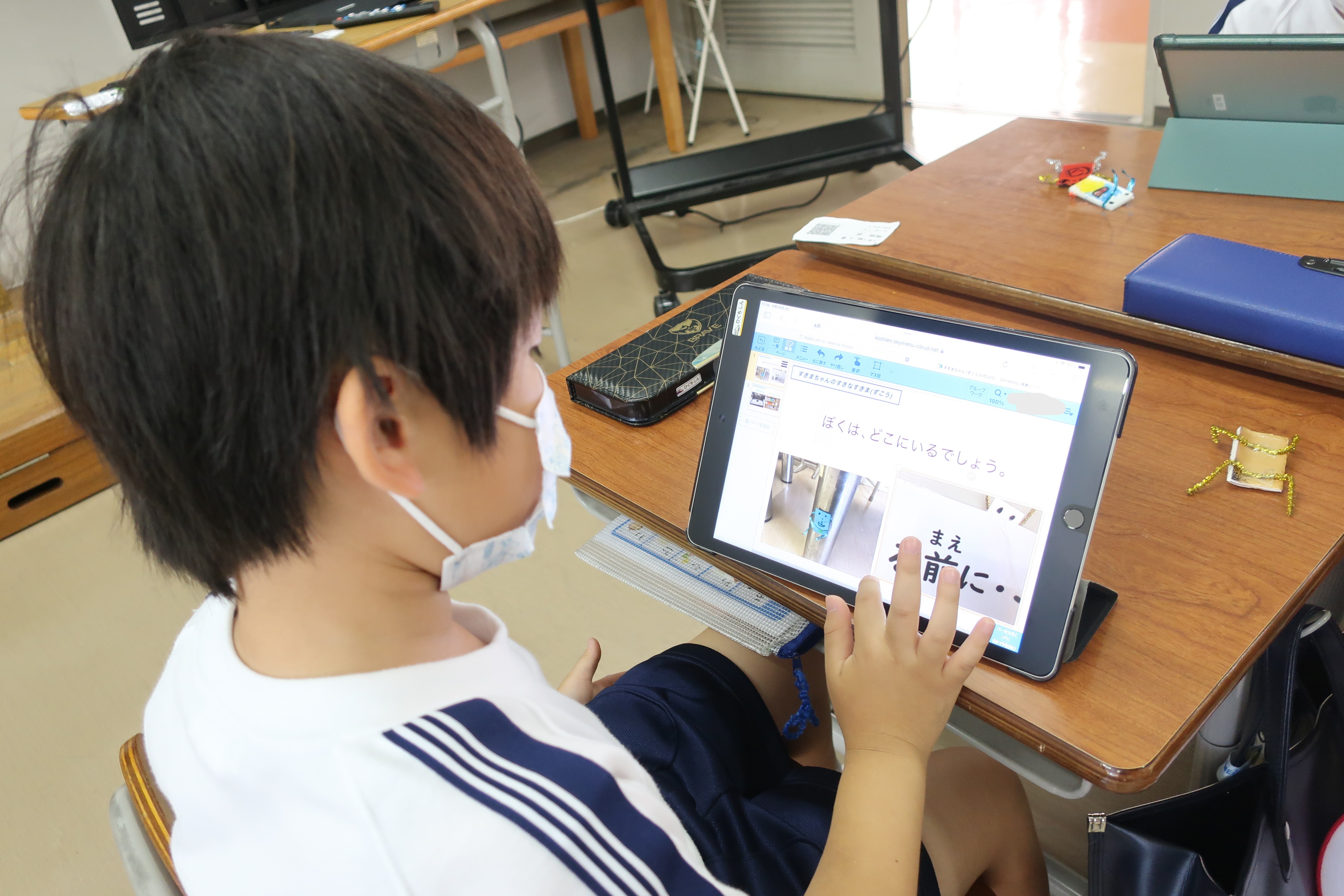 タブレットで撮った写真を、国語の説明文の授業で習った「問い」と「答え」の形式に合わせ発表ノートにまとめました。