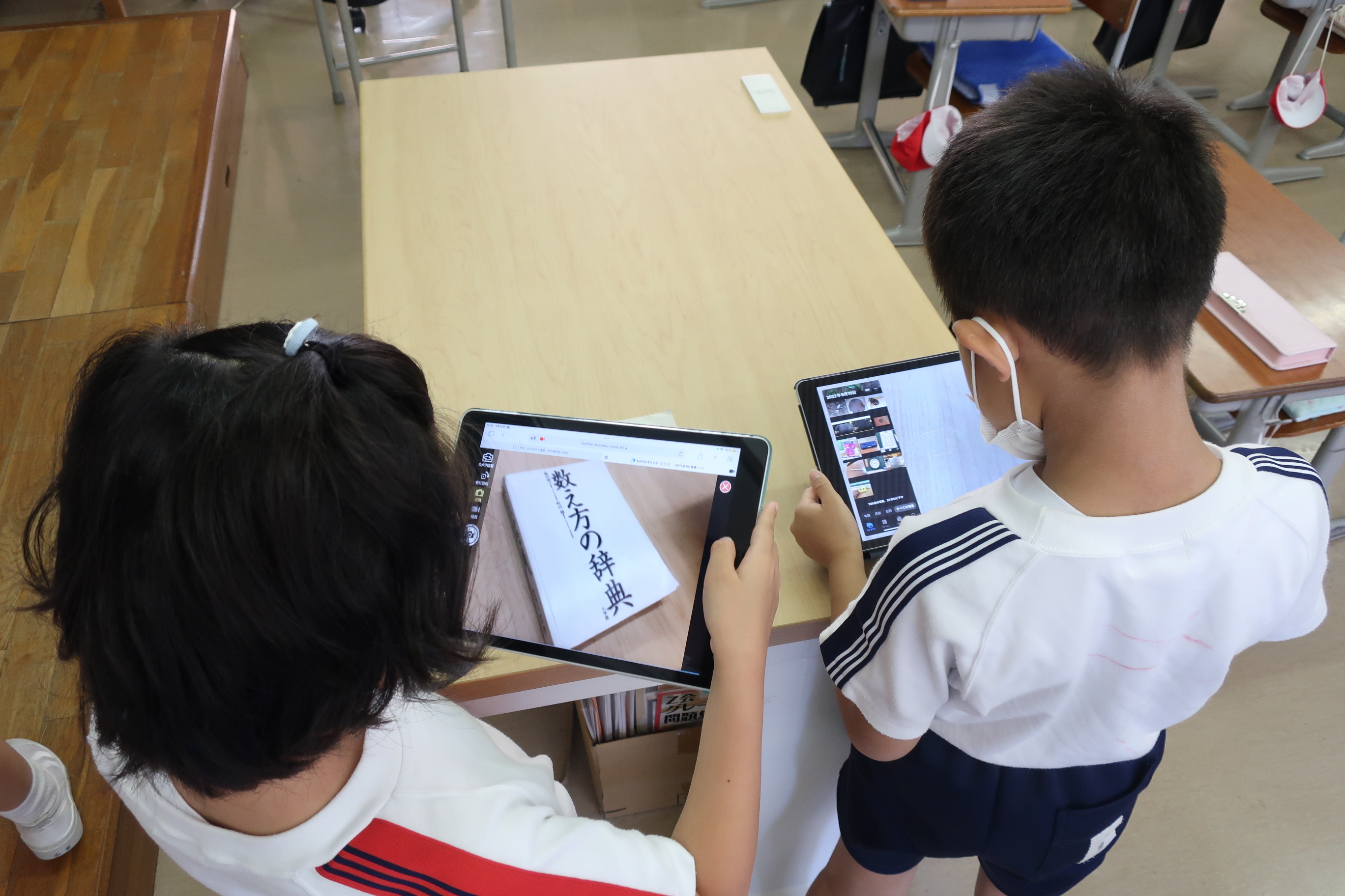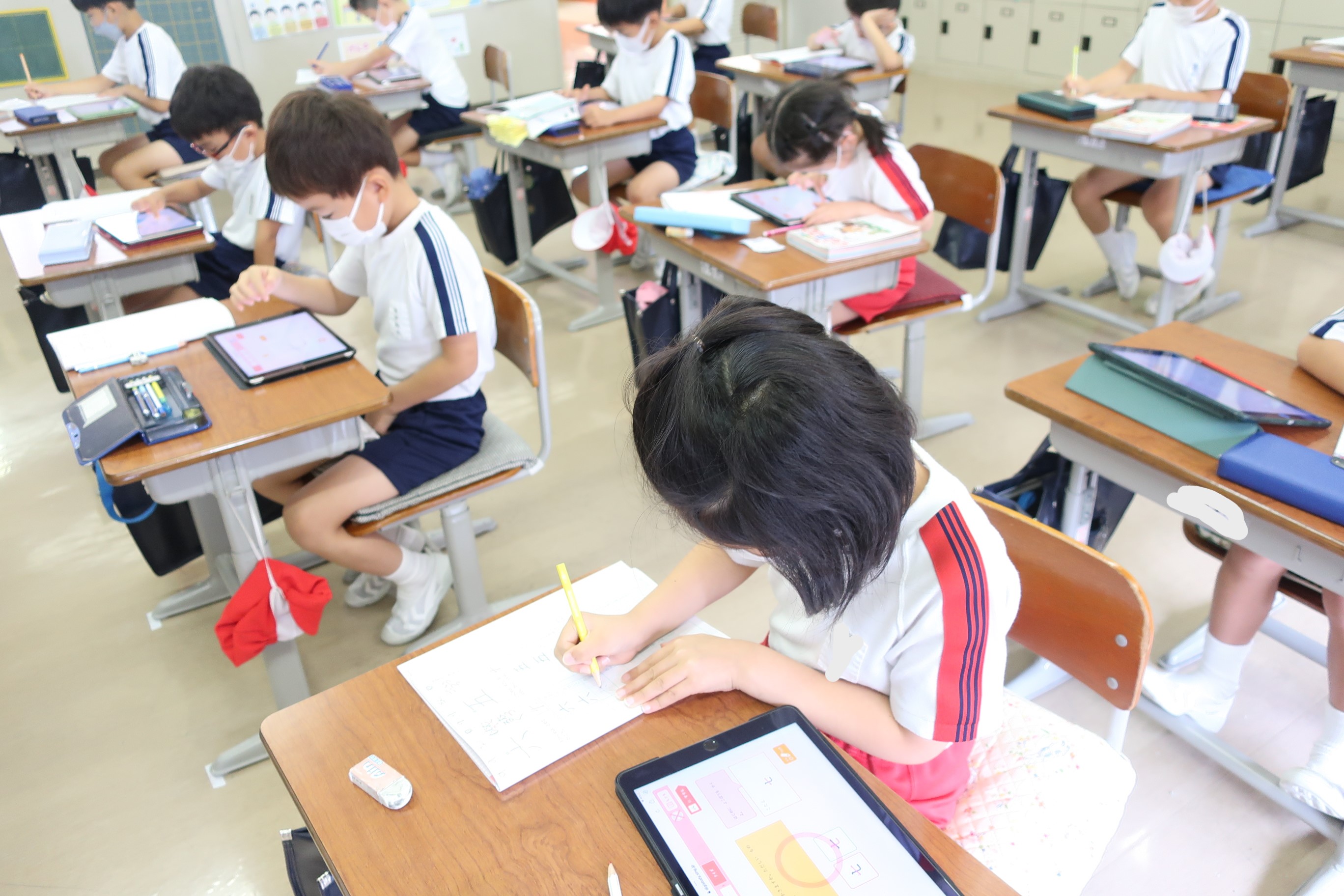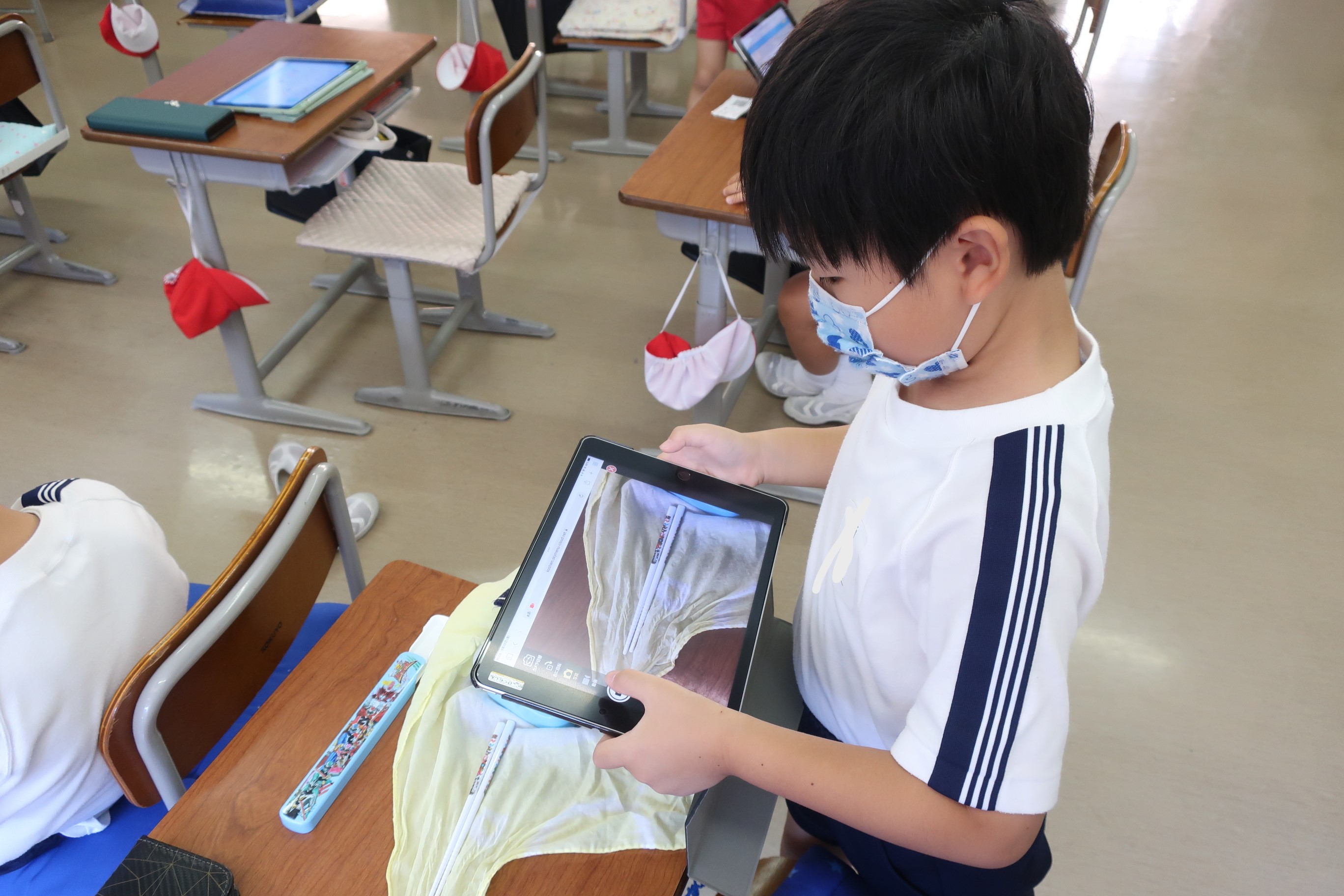 また、物語文や説明文の学習では質問の意図をしっかり読み取れるように教科書やノートだけではなくタブレットも使用して学習を進めています。