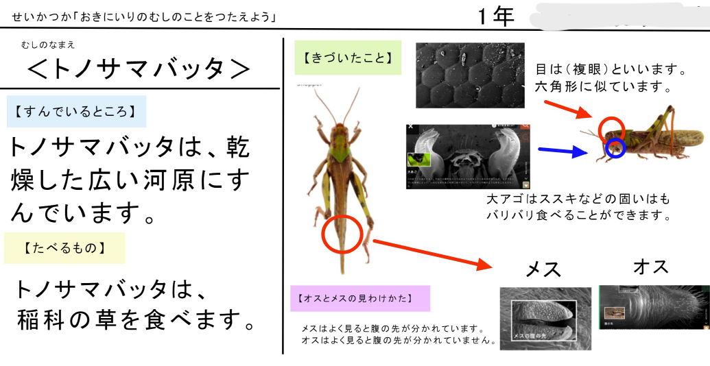 さらに、生活科「虫図鑑作り」のために特定の資料(サイト)から正しく文章を読み取り、まとめる学習もしてきました。