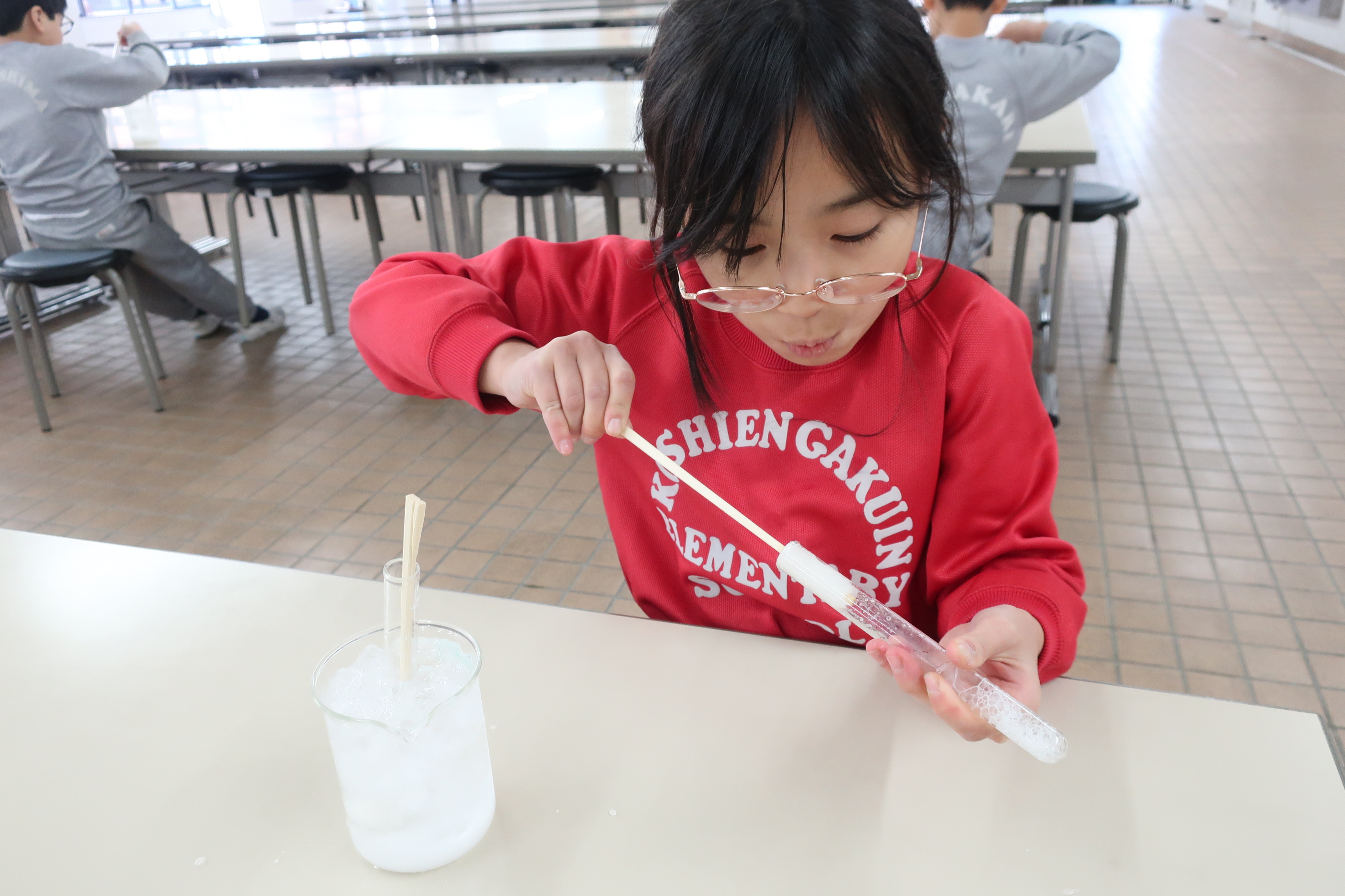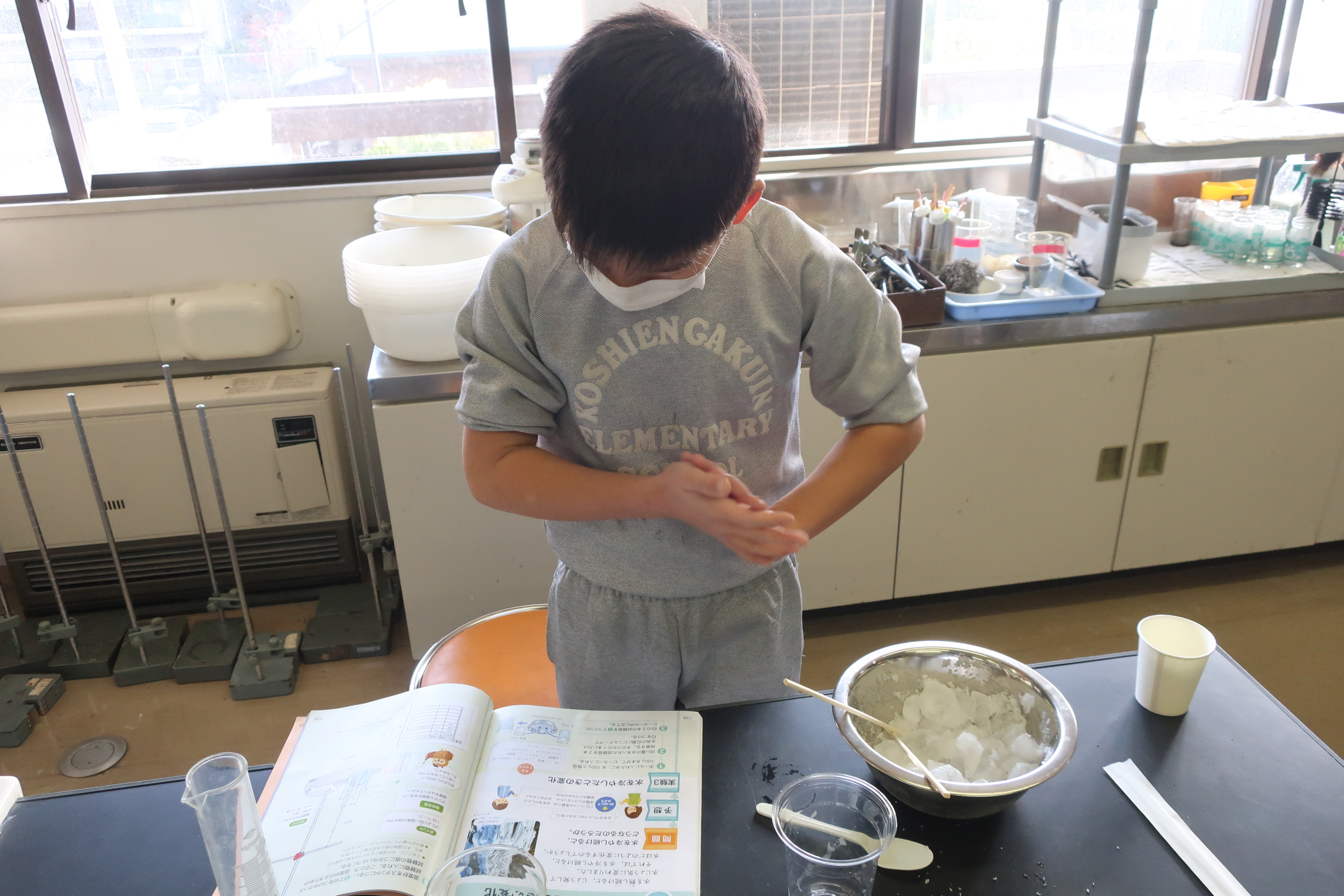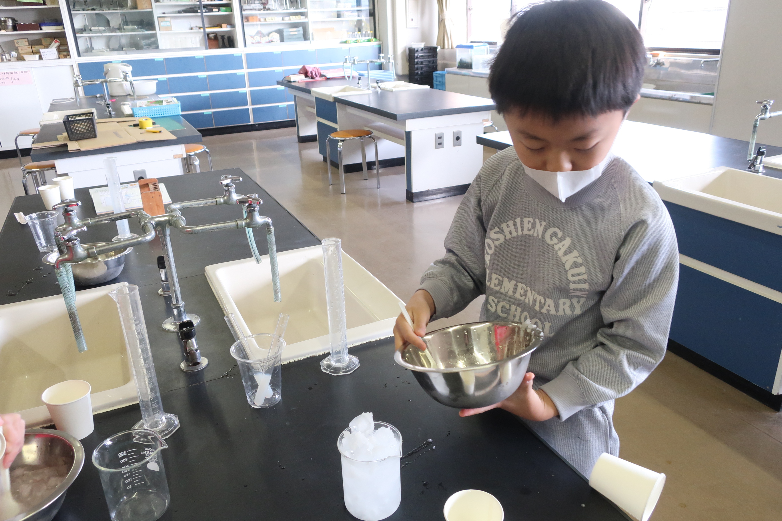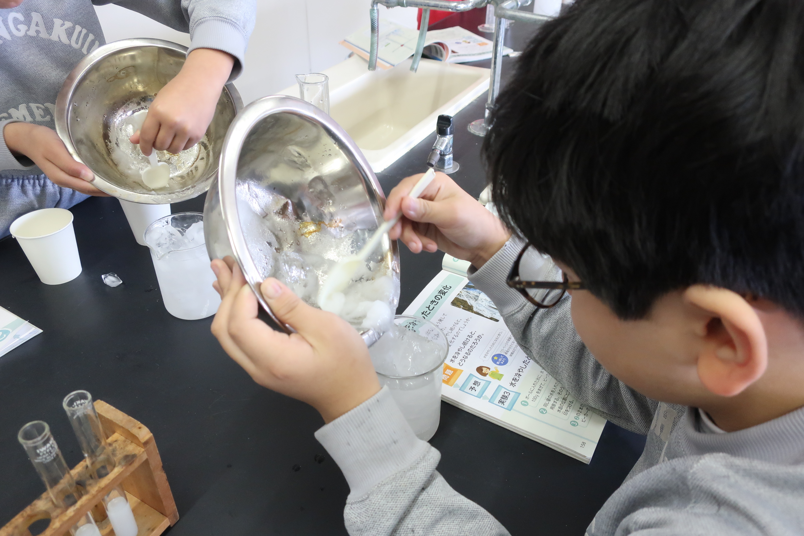4年生では、理科「水を冷やしたときの変化」の学習でアイス作りをしました。