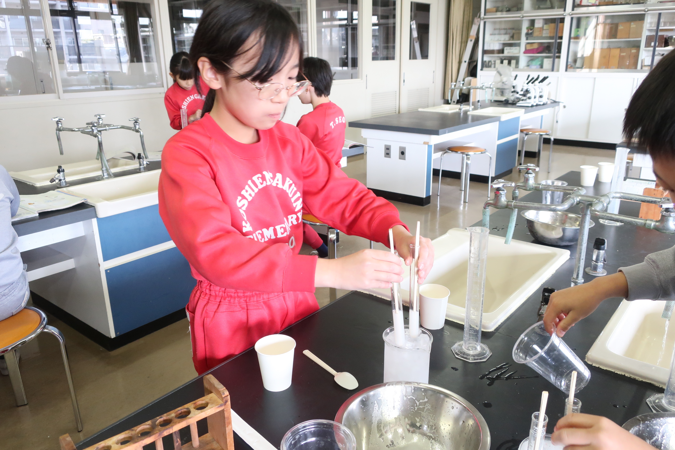 予想をたてた後、実際に実験をしました。