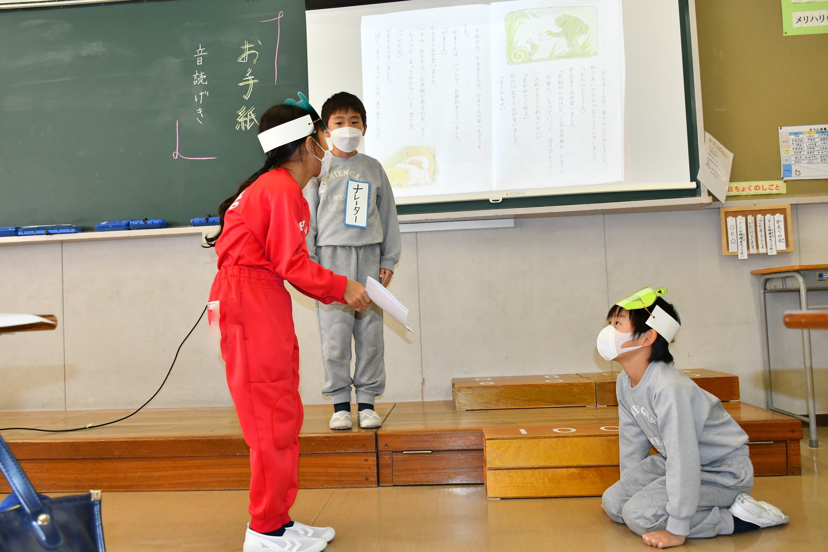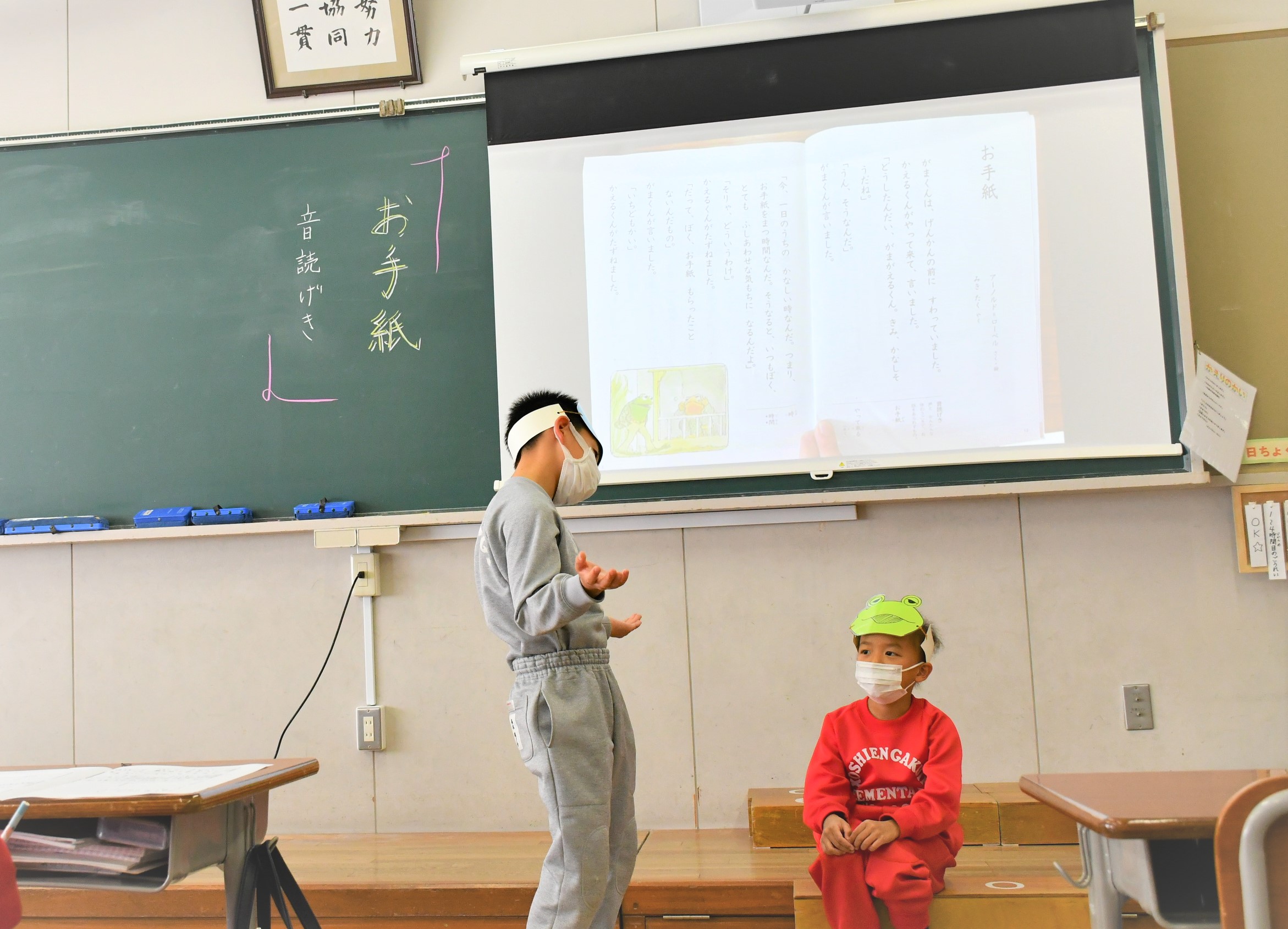 2年生 国語科「お手紙 音読劇」 [投稿日:2022年11月22日] 物語文「お手紙」の音読劇を行いました。身振り手振りや、声の大きさなどに気を付けて、どのグループも素晴らしい発表ができました。 一覧へ戻る