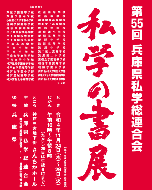 令和4年11月24日(木)~29日(火)まで,三宮のさんちかホールで,私学の書展が開催されています。