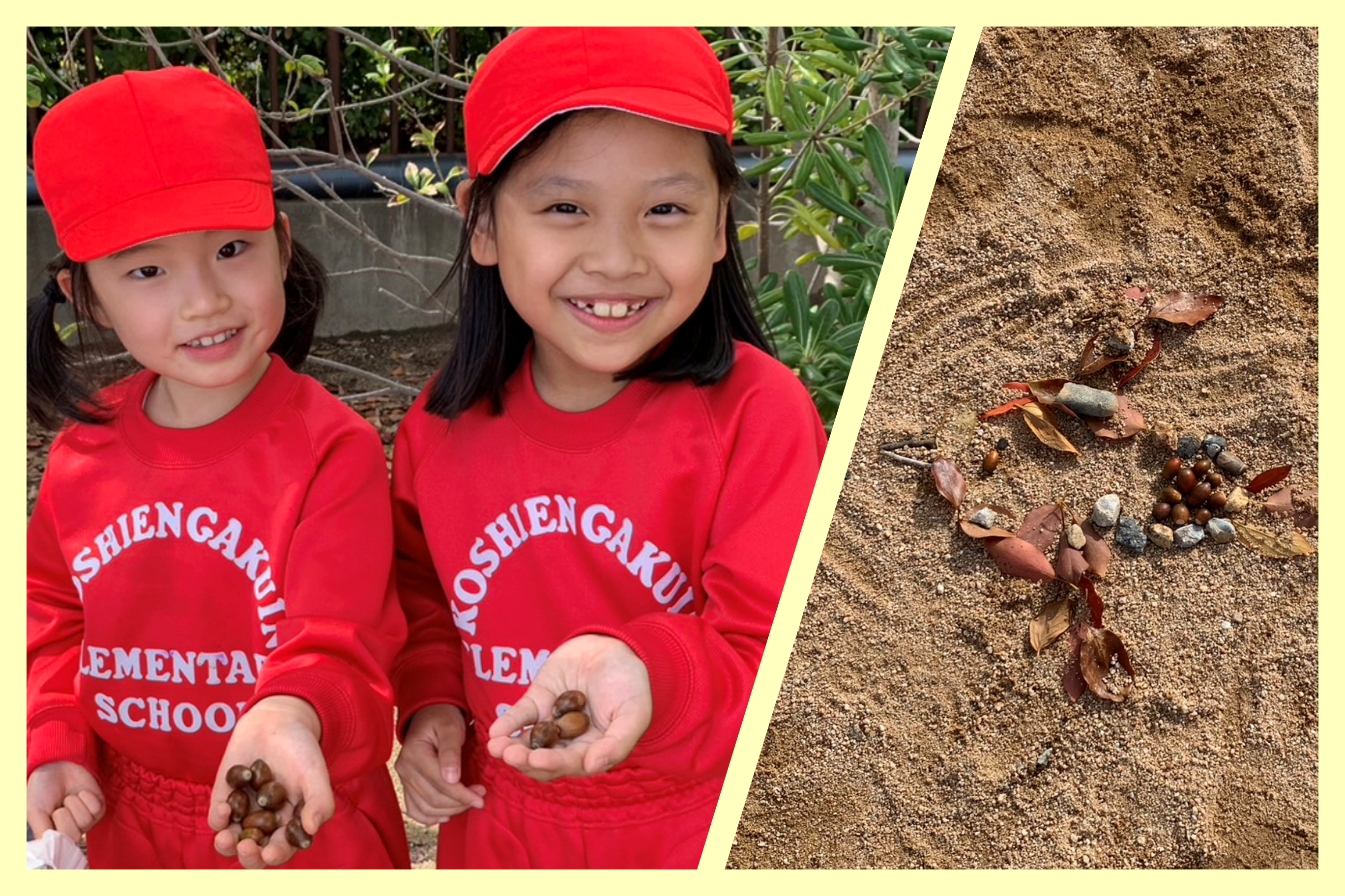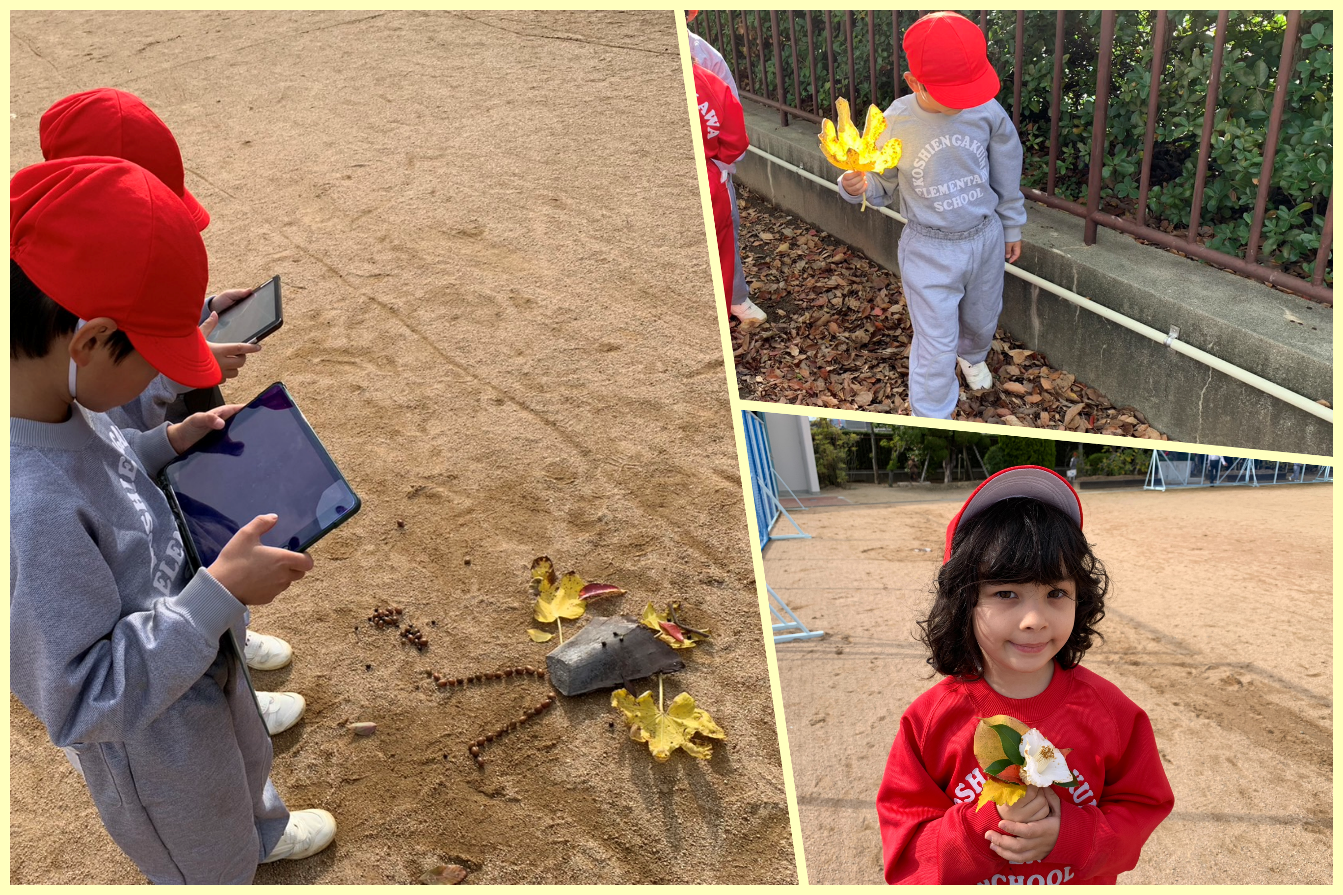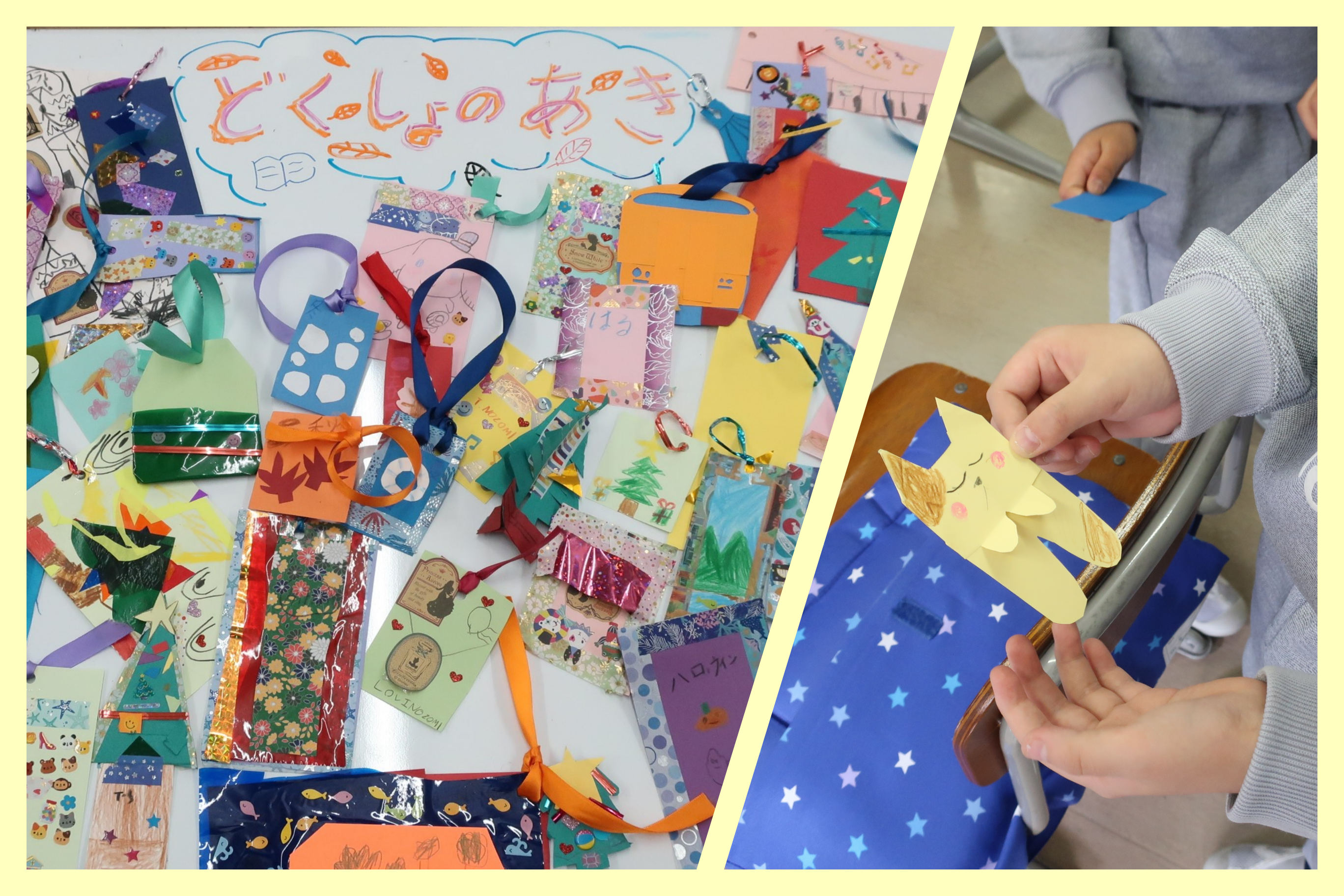 本をたくさん読むためにしおりを作ったり、校庭でどんぐりを拾ったり、黄や赤に色づいた落ち葉を拾ったりして秋を感じました。