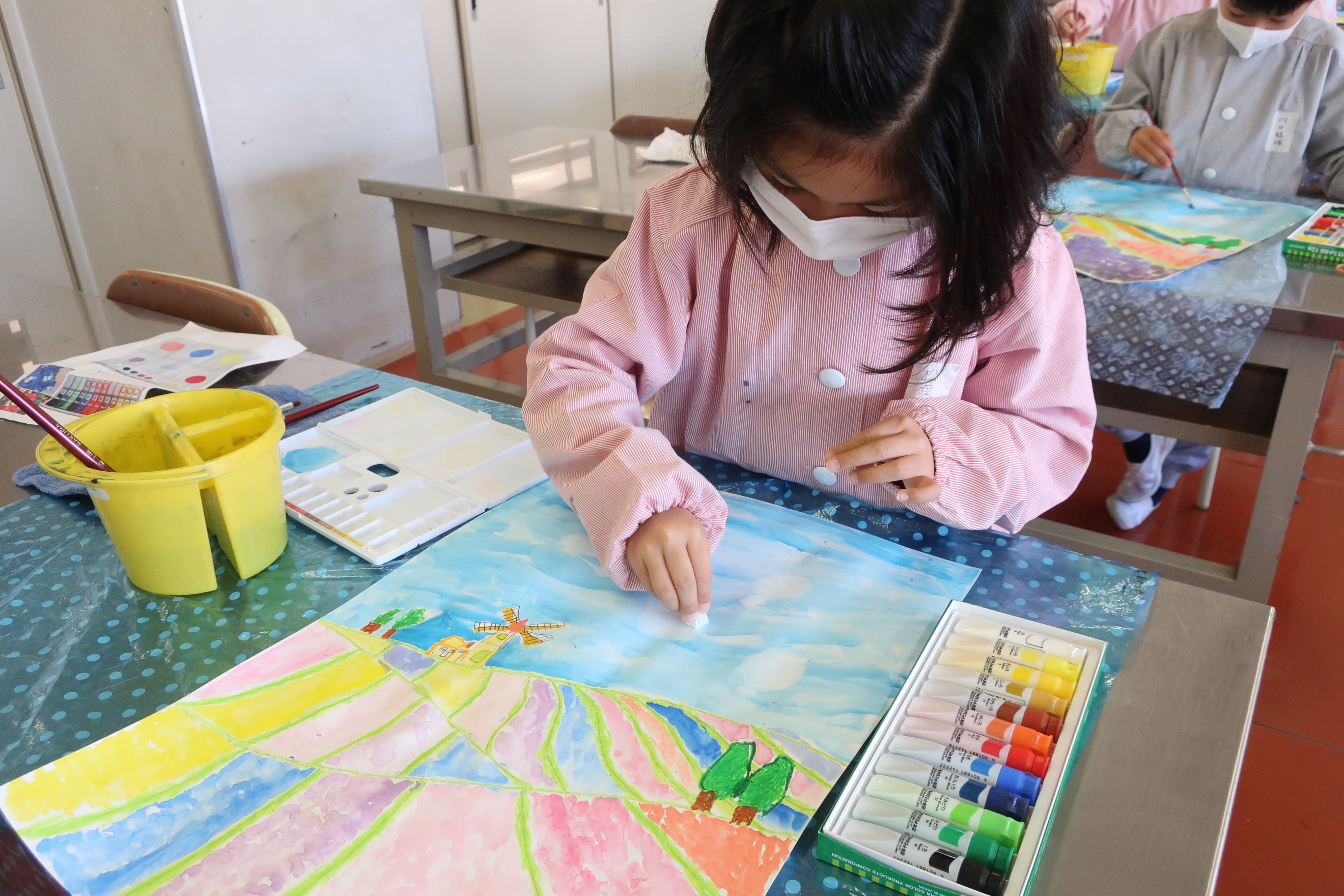 図工「花畑と空」